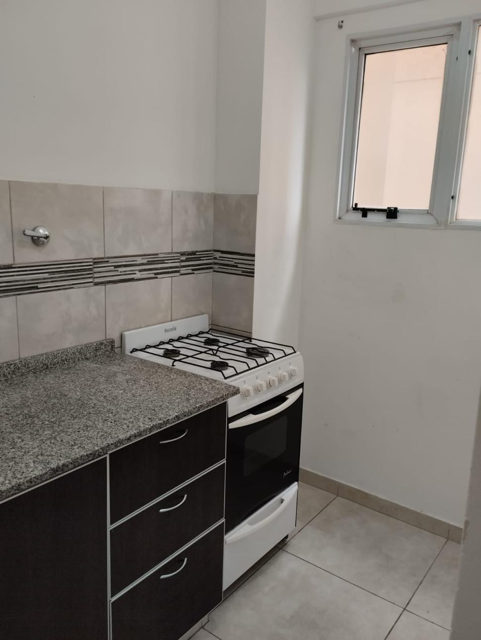 Departamento de 2 ambientes al contrafrente en Caseros, Tres de Febrero. Cuenta con living comedor, balcón con instalación para lavarropas, cocina separada, dormitorio con placard y baño con bañera. Incluye cochera descubierta con portón automatizado, y el servicio de agua está incluido en las expensas. El alquiler incluye luz y gas.