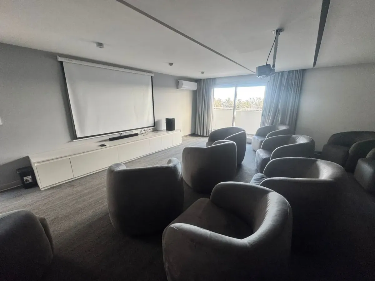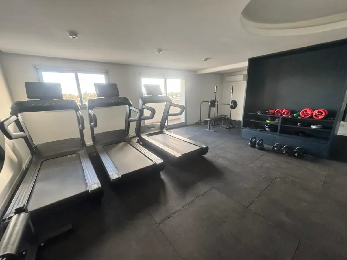 Departamento de 2 ambientes a estrenar en el 2º piso, en Santos Lugares, Tres de Febrero. Living comedor con pisos cerámicos, portero eléctrico y salida a un balcón; cocina integrada con artefacto de cocina, muebles altos y bajos, termotanque y conexión para lavarropas; baño y habitación con placard con interiores. El edificio cuenta con piscina, gimnasio, parrillas, sala de cine y sala de juegos. El alquiler es $600.000 + expensas (actualmente incluye ABL y agua) + ABL + servicios + seguro del