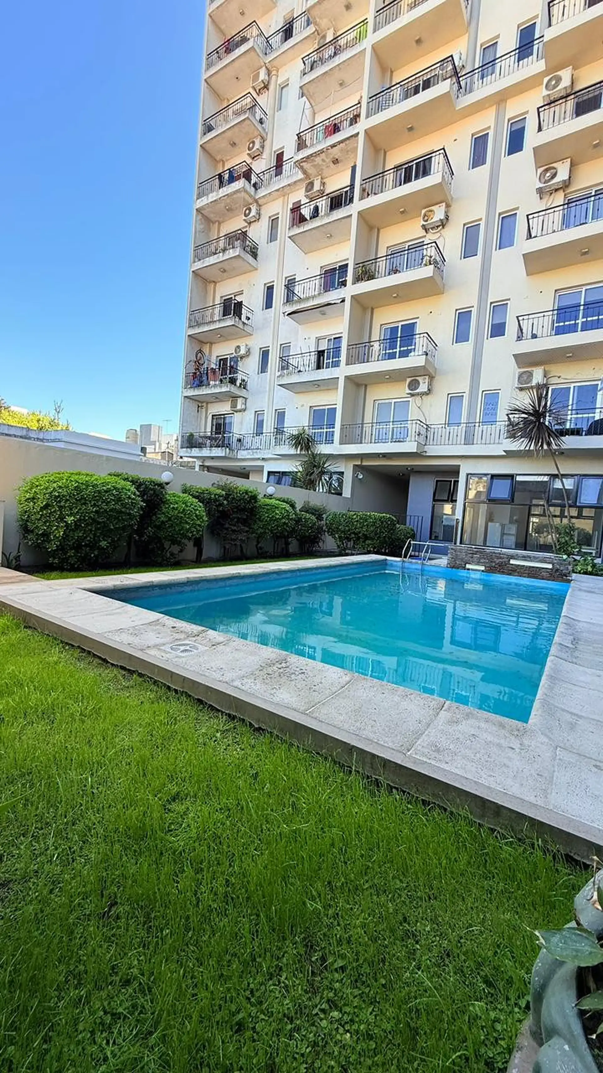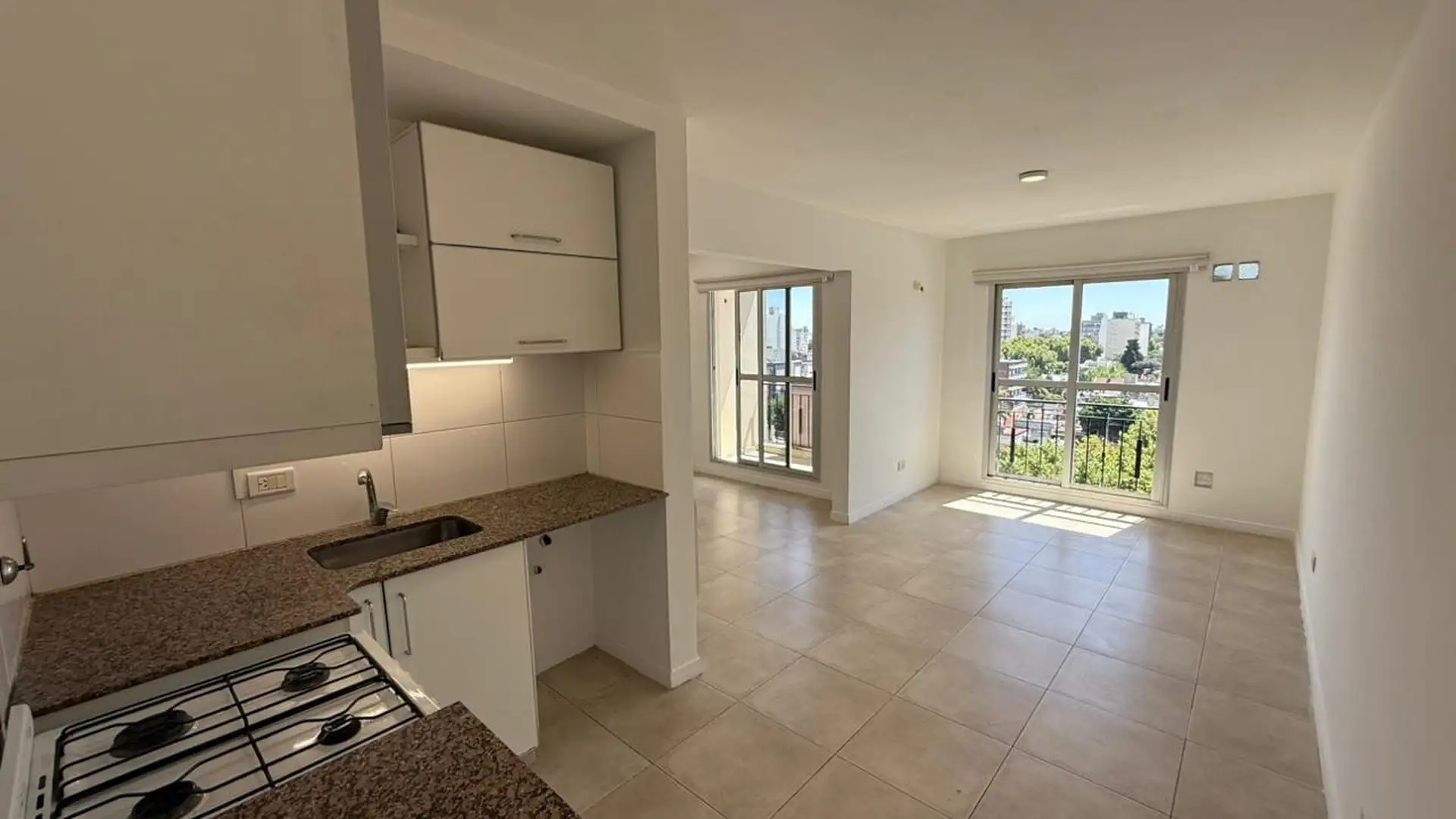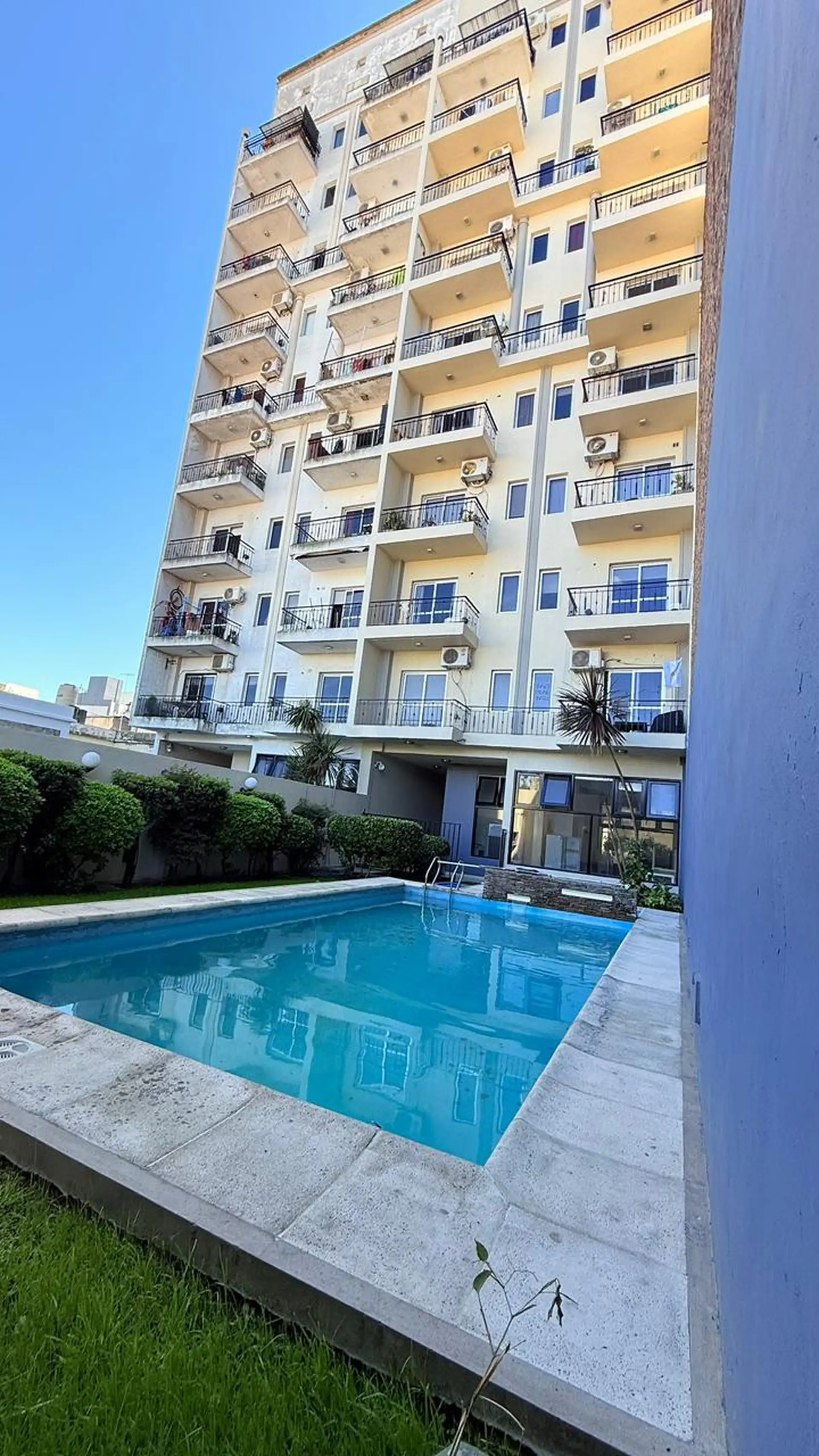 Departamento de 2 ambientes al frente, con balcón corrido. Cuenta con cocina semi separada a gas, baño completo y un dormitorio con placard. Incluye dos estufas de tiro balanceado, conexión para lavarropas y aberturas con cortinas Black Out nuevas. El edificio tiene piscina, SUM, terraza y parrilla; expensas de febrero 2026 de $209.000 e incluyen el servicio de agua. A 5 cuadras de la estación Ferrocarril San Martín. No acepta mascotas.