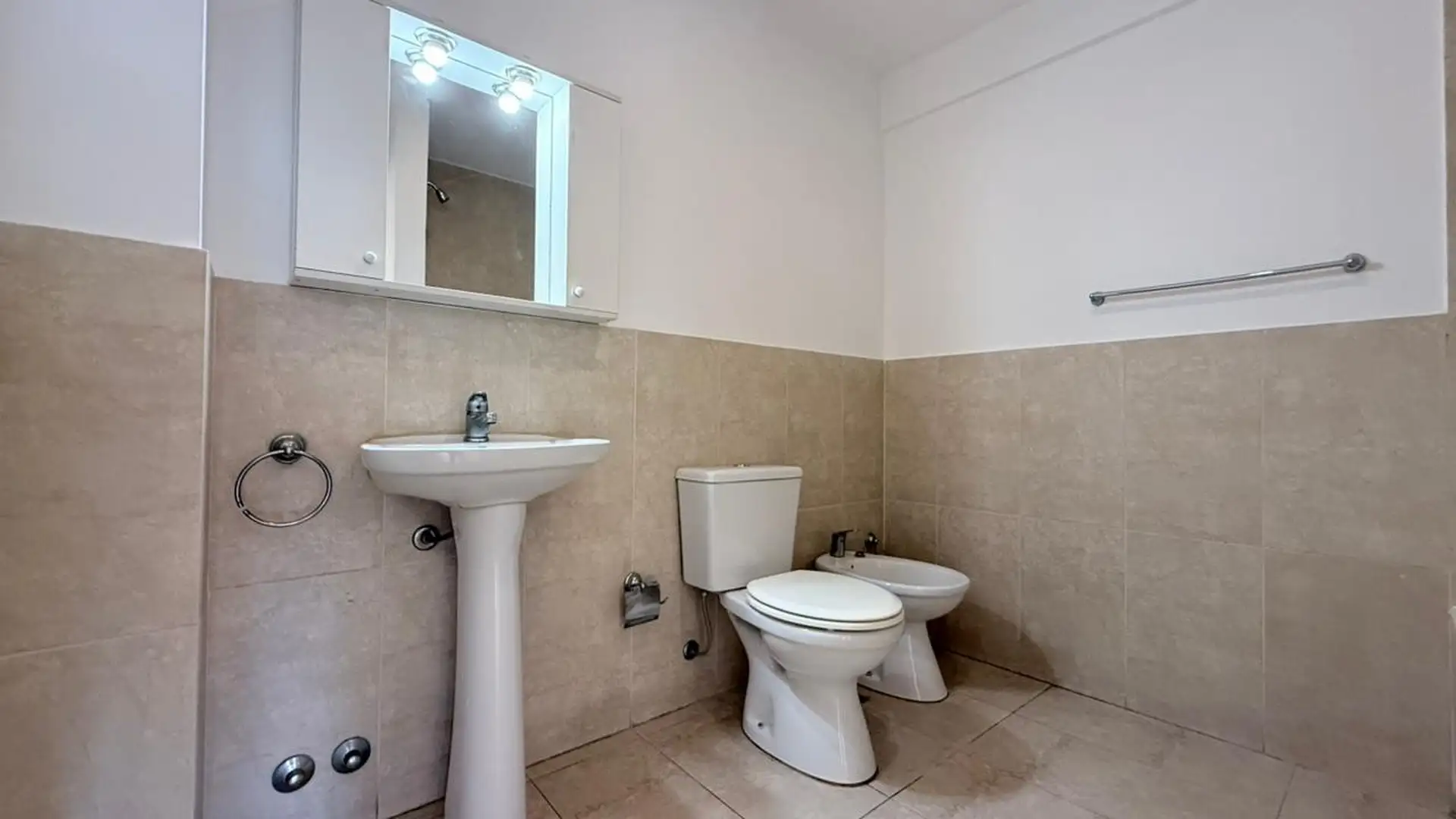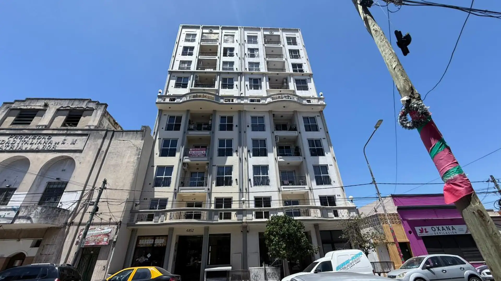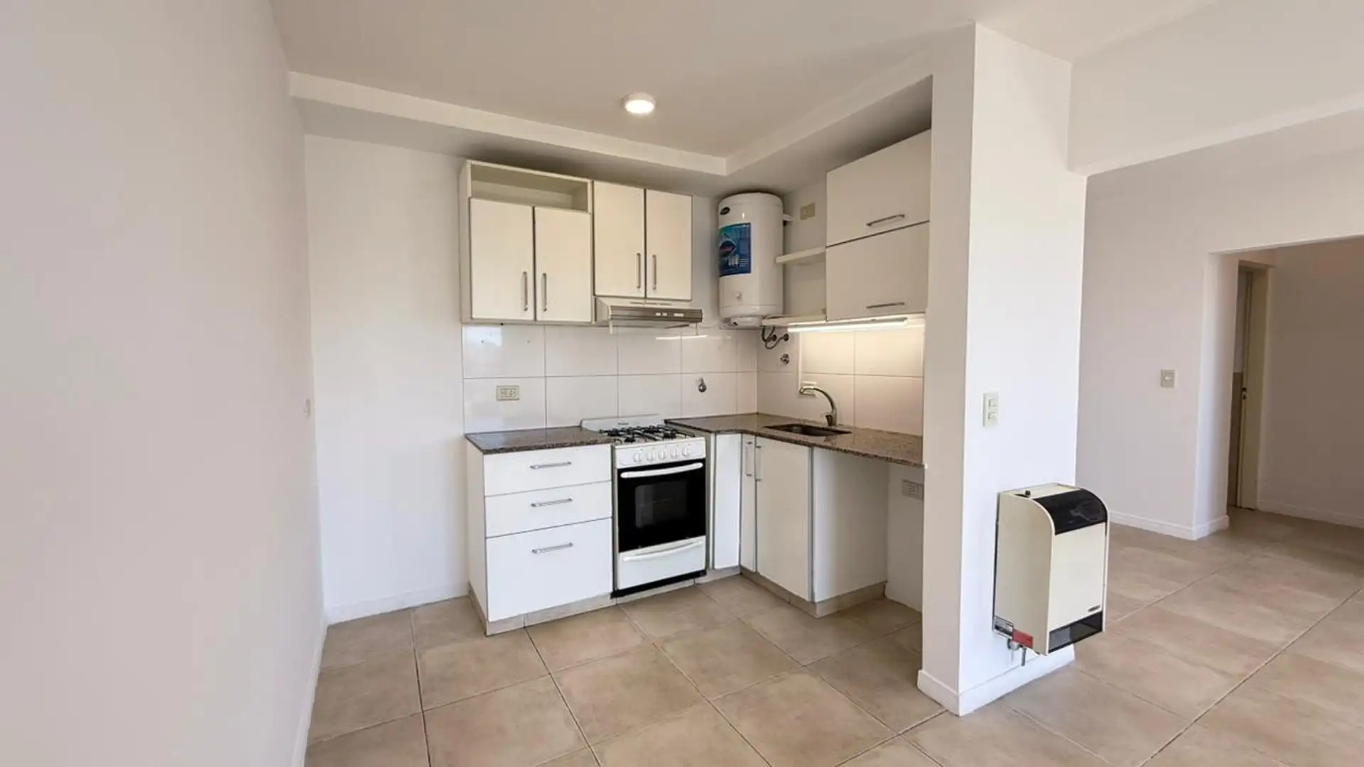 Departamento de 2 ambientes al frente, con balcón corrido. Cuenta con cocina semi separada a gas, baño completo y un dormitorio con placard. Incluye dos estufas de tiro balanceado, conexión para lavarropas y aberturas con cortinas Black Out nuevas. El edificio tiene piscina, SUM, terraza y parrilla; expensas de febrero 2026 de $209.000 e incluyen el servicio de agua. A 5 cuadras de la estación Ferrocarril San Martín. No acepta mascotas.