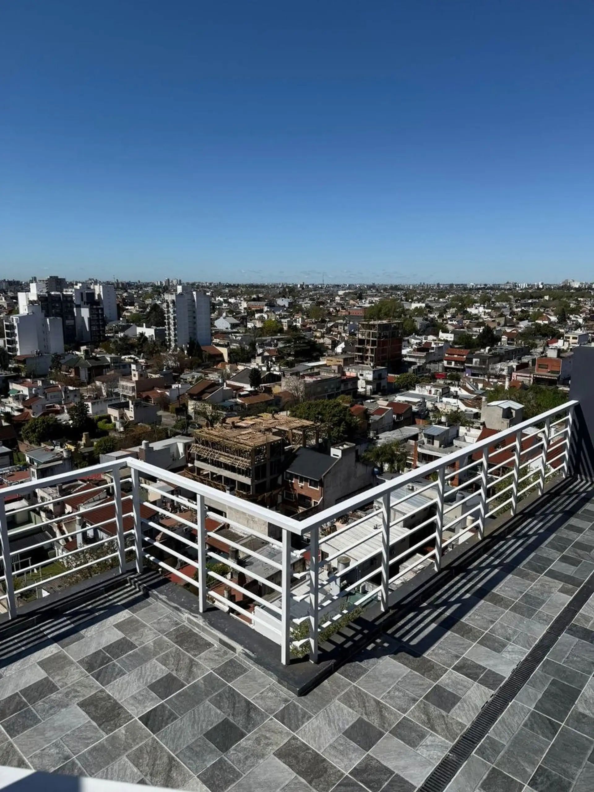 Departamento monoambiente de alquiler en Caseros, Partido de Tres de Febrero, ubicado en el piso 10 con vista al frente. Cocina integrada, baño completo y balcón. El edificio cuenta con SUM, terraza y pileta. Requiere mes de adelanto, mes de depósito y seguro de caución; no se aceptan mascotas.