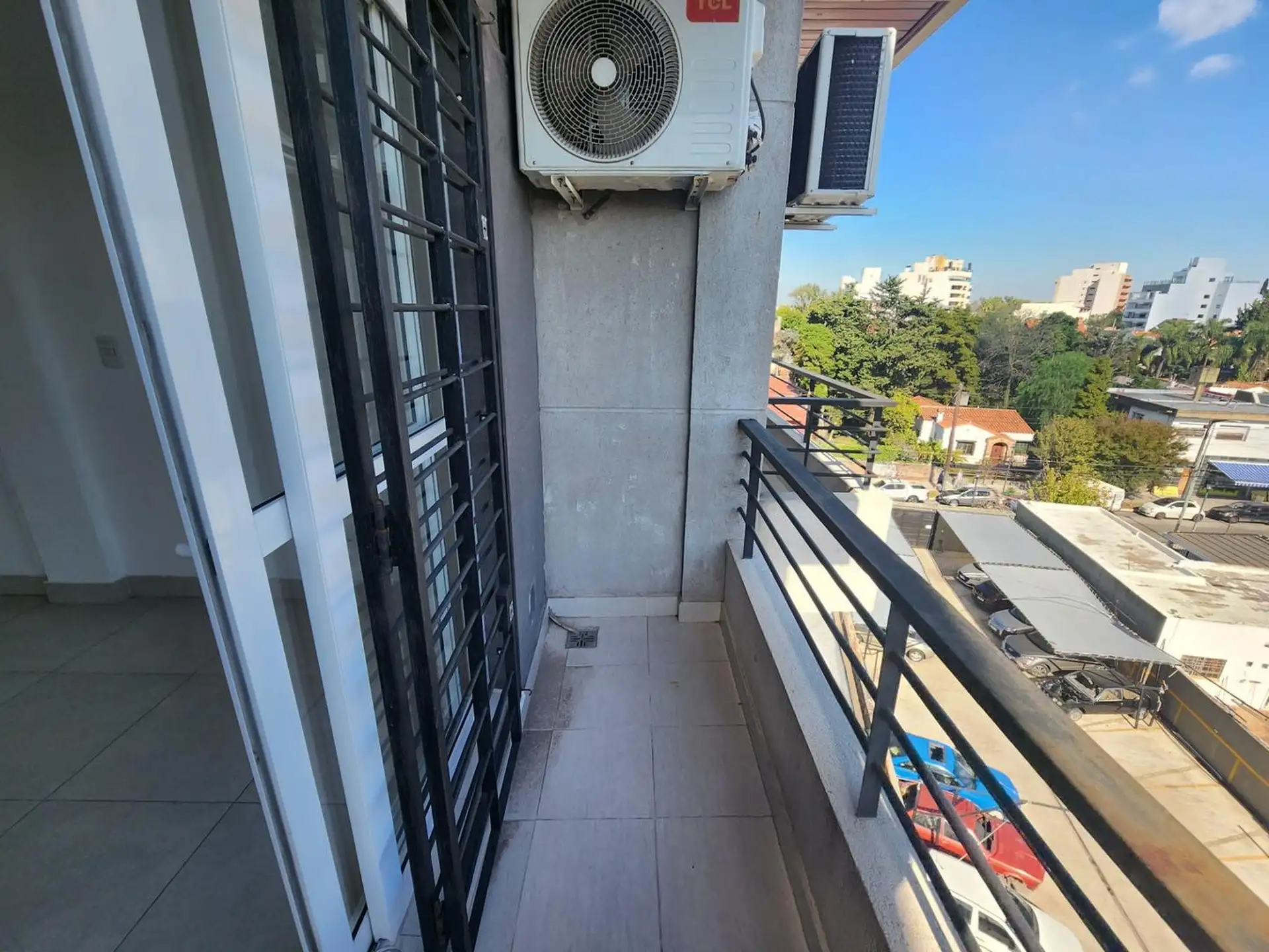 Monoambiente de 5° piso al contrafrente en el edificio Martina II, con frente a la calle Arturo Illia 1057 entre Santos Vega y Martín Fierro. Cuenta con aire acondicionado frío-calor, balcón, cocina separada con pasa platos desayunador, termotanque eléctrico, mueble bajo mesada y alacena, y artefacto de cocina; baño con vanitory, grifería completa y bañera. Incluye rejas en todas las ventanas y puerta pentágono. Contrato por 24 meses con ajuste cuatrimestral por índice ICL; alquiler inicial $550