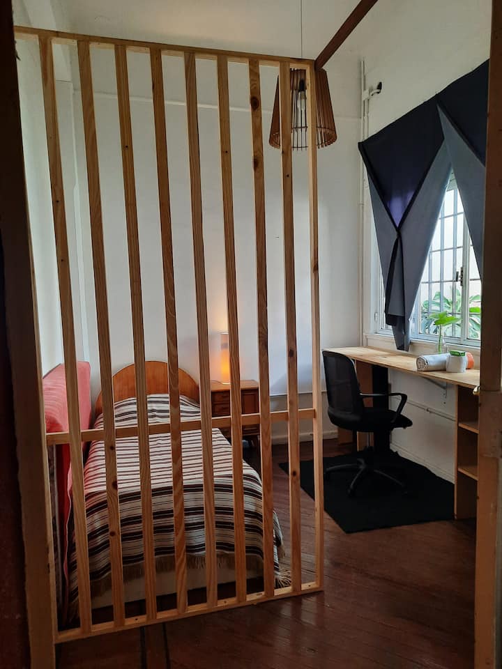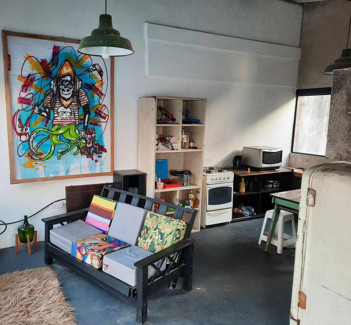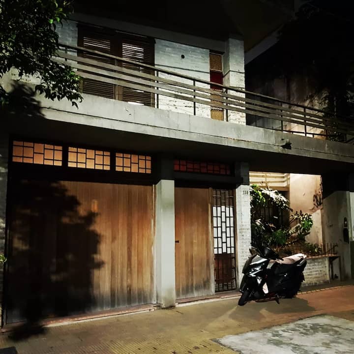 Habitación privada con baño compartido con una unidad de 2 dormitorios, con acceso desde la calle. Cuenta con un área de servicio con acceso a la terraza, con cocina-comedor y espacio de trabajo, además de lavarropas. Acceso a un espacio tipo Zen forest con cargo adicional. A 150 metros de la estación Ciudadela del tren.