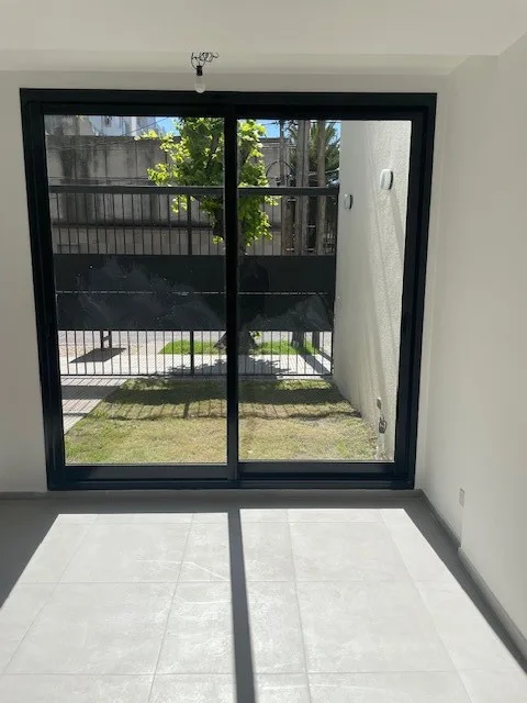 Departamento monoambiente en planta baja, con patio al frente. Cocina semi integrada con barra desayunadora, con muebles bajo mesada y alacena; incluye calefón y artefacto de cocina eléctrico. Baño completo con bañera y espacio para lavarropa. La azotea cuenta con SUM con baño, cocina, parrilla y terraza al frente, y solarium al contrafrente.