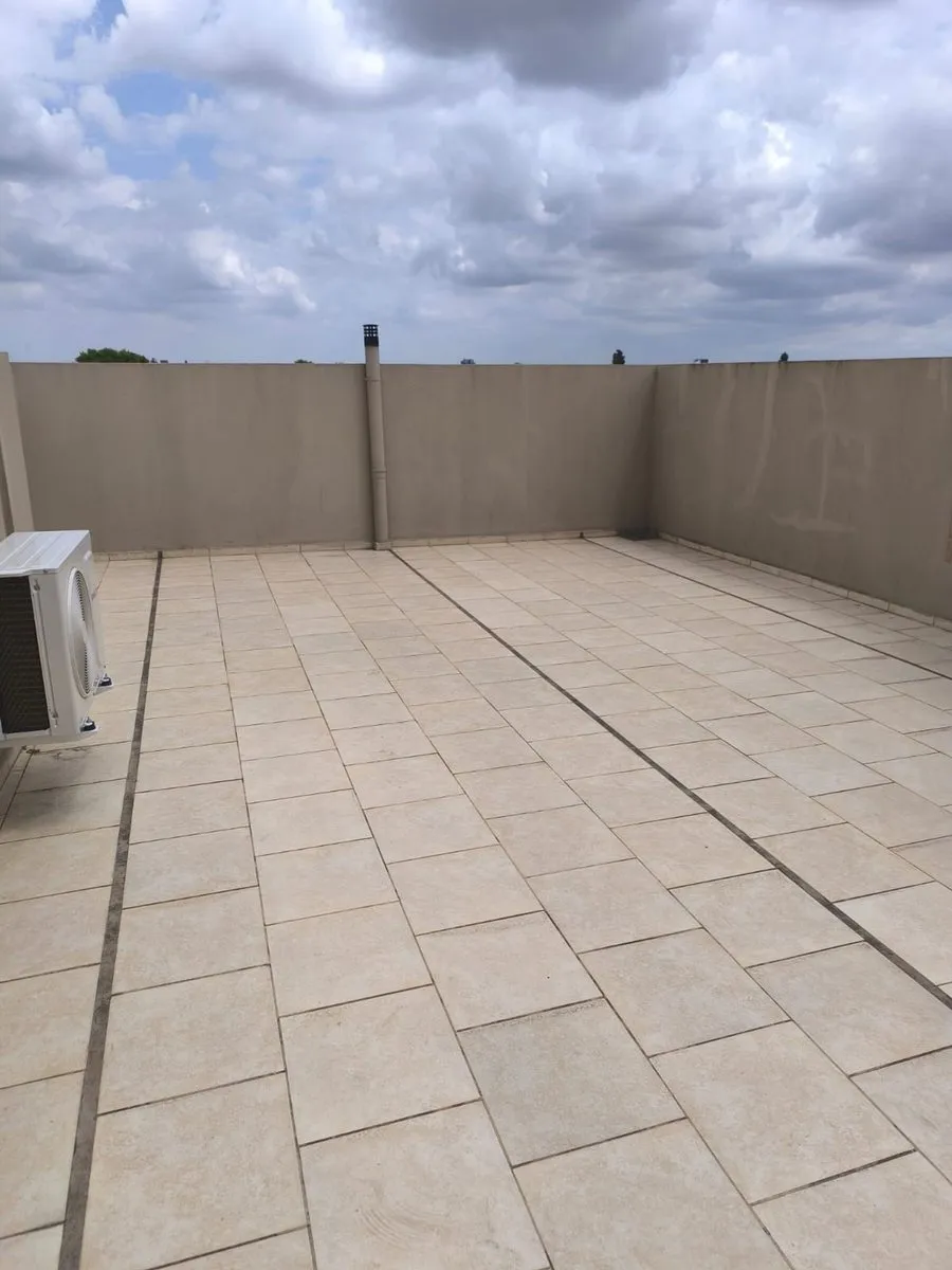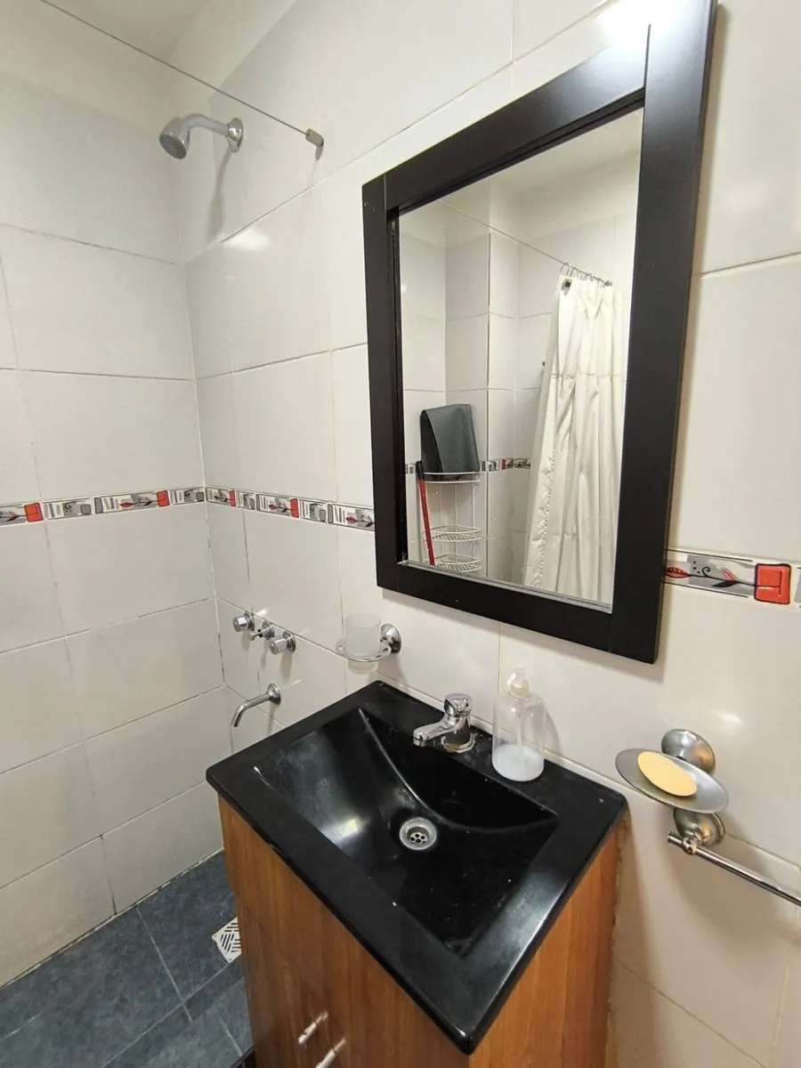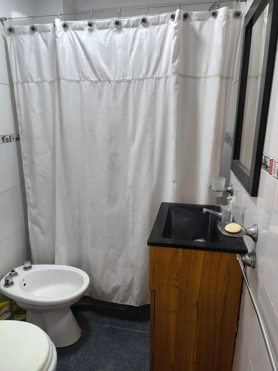 Departamento de 2 ambientes en Santos Lugares, partido de 3 de Febrero, Provincia de Buenos Aires. Edificio de 8 años de antigüedad, en planta baja, al frente. Cocina a gas y termotanque eléctrico, baño completo con ducha, pisos de cerámica e instalación eléctrica. Cuenta con 2 aires acondicionados frío-calor y espacio de guardado en living-comedor y dormitorio. Incluye patio propio en el pulmón del edificio. En cuarto piso hay 2 lava secarropas y una terraza de uso común. Expensas: $48.000. Pró