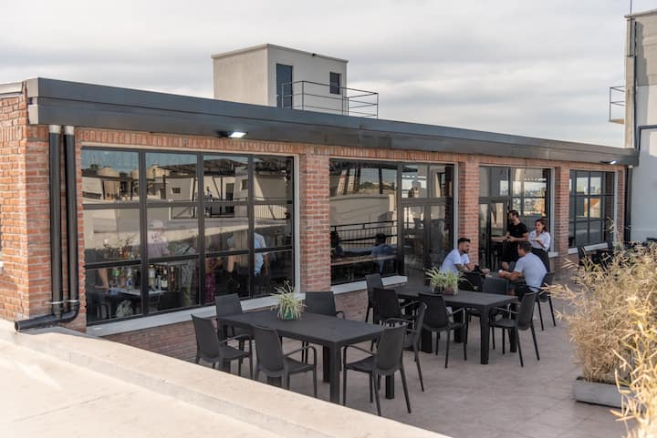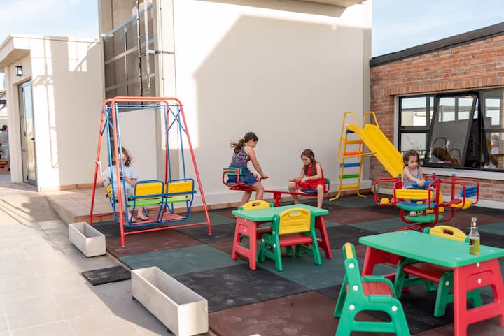 Departamento amoblado de 1 dormitorio, ubicado en Tres de Febrero. Se informa que el edificio cuenta con cochera privada, seguridad 24 horas, jardín, gimnasio, cowork, terraza con 12 parrillas, área de juegos y solárium. El departamento se publica como equipado.