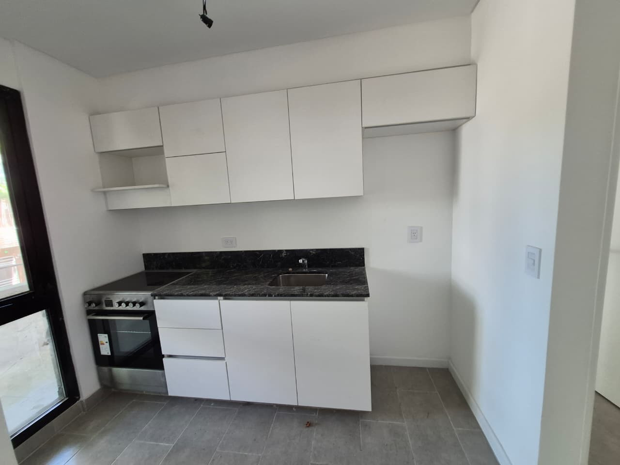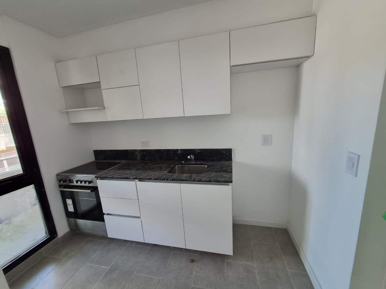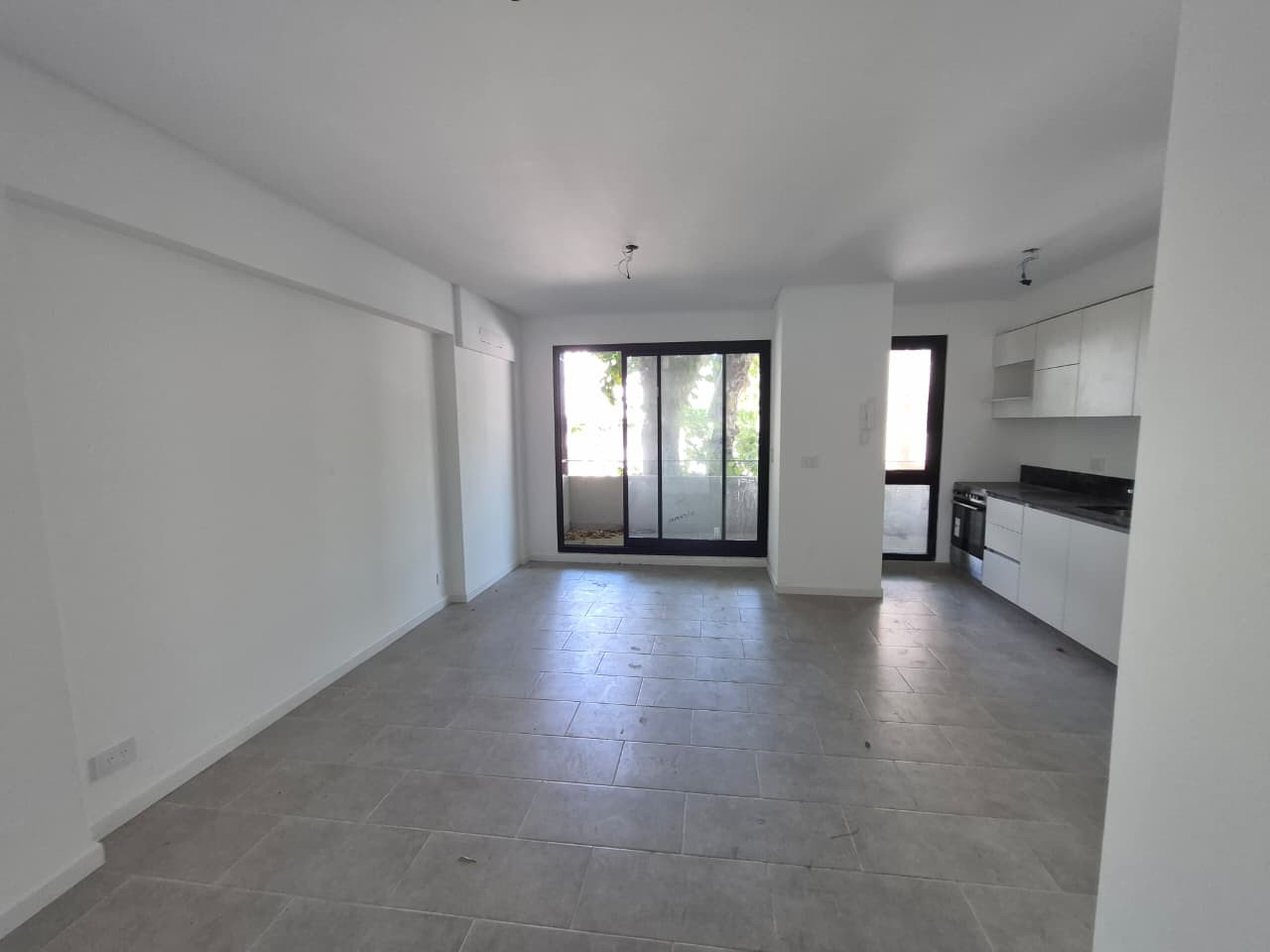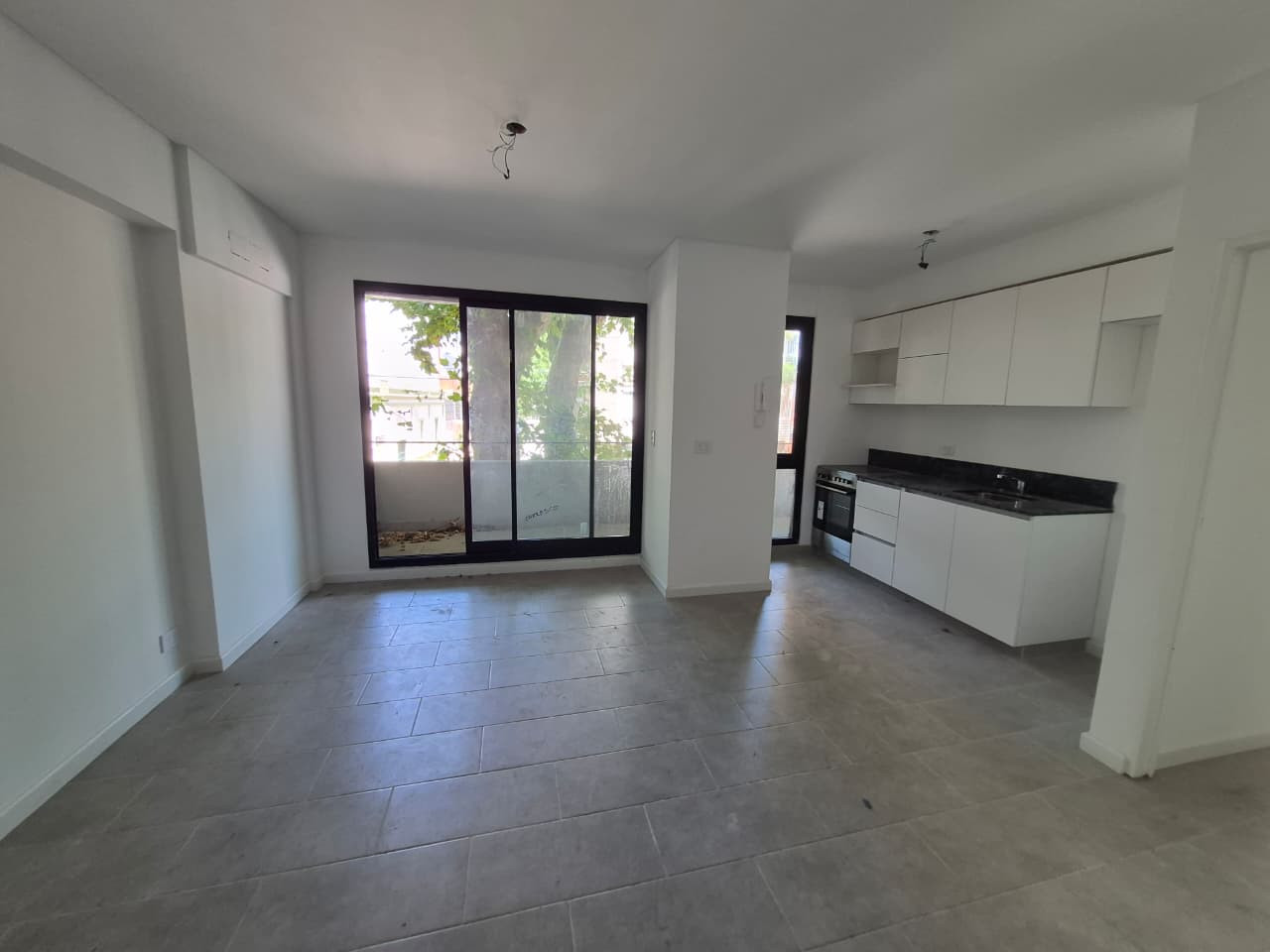 Departamento de 2 ambientes a estrenar, al frente, con balcón, con 1 dormitorio. Tiene hall de entrada con comunicación al toilette (2 x 1) y living comedor (5,5 x 3,2) con cocina integrada (2,8 x 1,5). El dormitorio (3,7 x 3) incluye placard, hall de entrada y baño en suite (2,03 x 1,5); balcón corrido al frente (8,2 x 1,2). Edificio con amenities: parrilla, jardín parquizado y piscina. Es todo eléctrico, con cocina ATMA y termotanque. Ajuste cada 4 meses por IPC; alquiler con 1 mes de adelanto