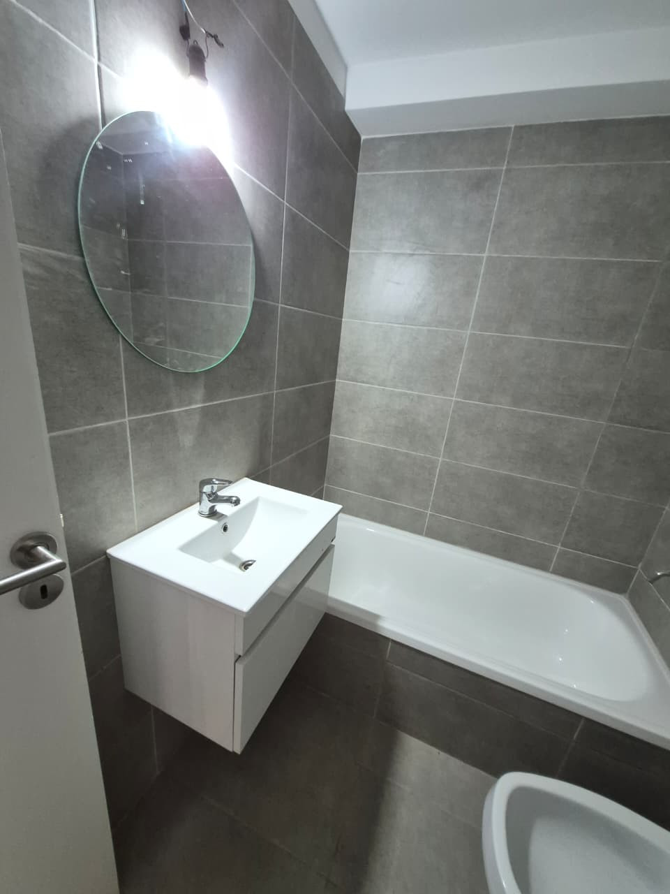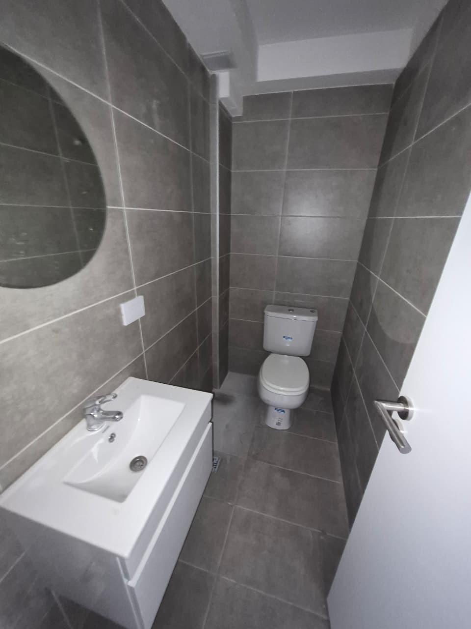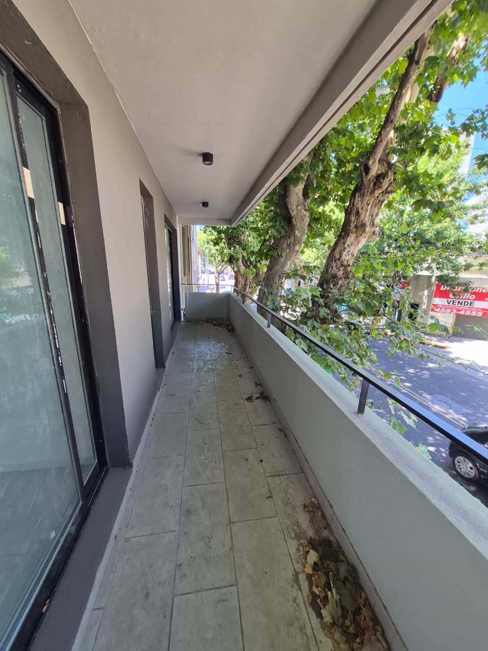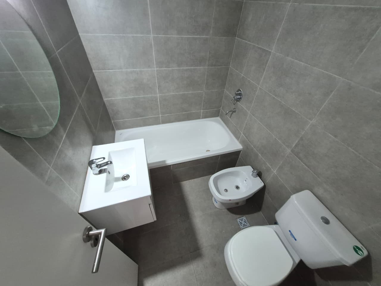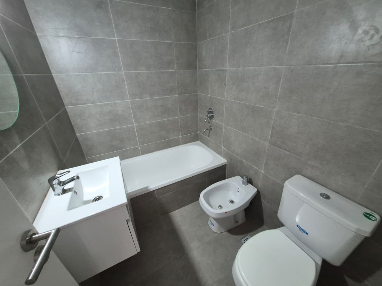 Departamento de 2 ambientes a estrenar, al frente, con balcón, con 1 dormitorio. Tiene hall de entrada con comunicación al toilette (2 x 1) y living comedor (5,5 x 3,2) con cocina integrada (2,8 x 1,5). El dormitorio (3,7 x 3) incluye placard, hall de entrada y baño en suite (2,03 x 1,5); balcón corrido al frente (8,2 x 1,2). Edificio con amenities: parrilla, jardín parquizado y piscina. Es todo eléctrico, con cocina ATMA y termotanque. Ajuste cada 4 meses por IPC; alquiler con 1 mes de adelanto