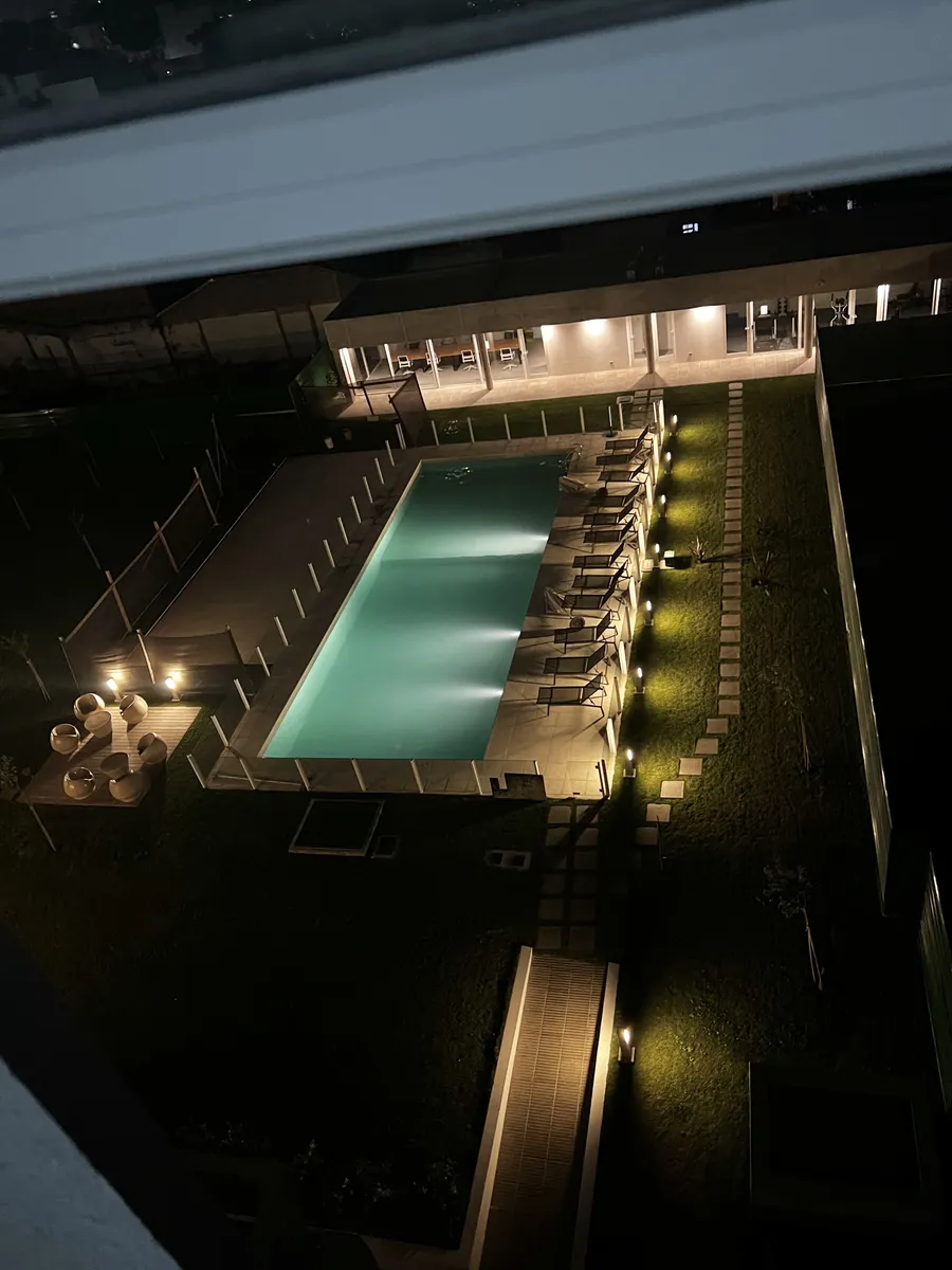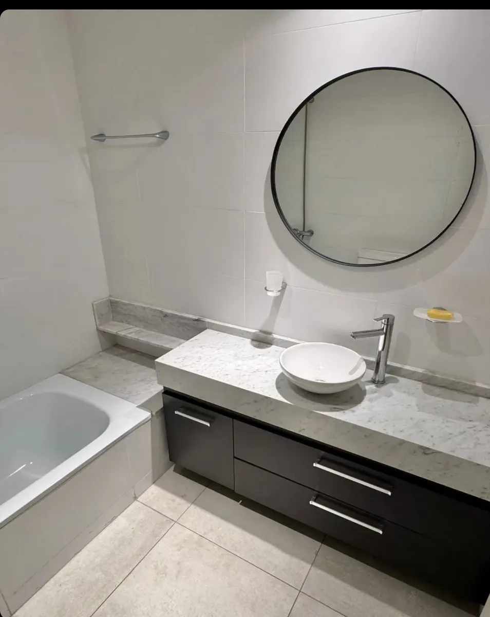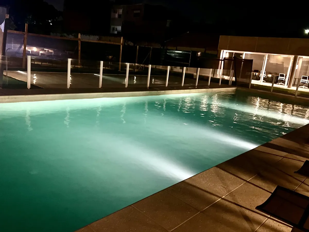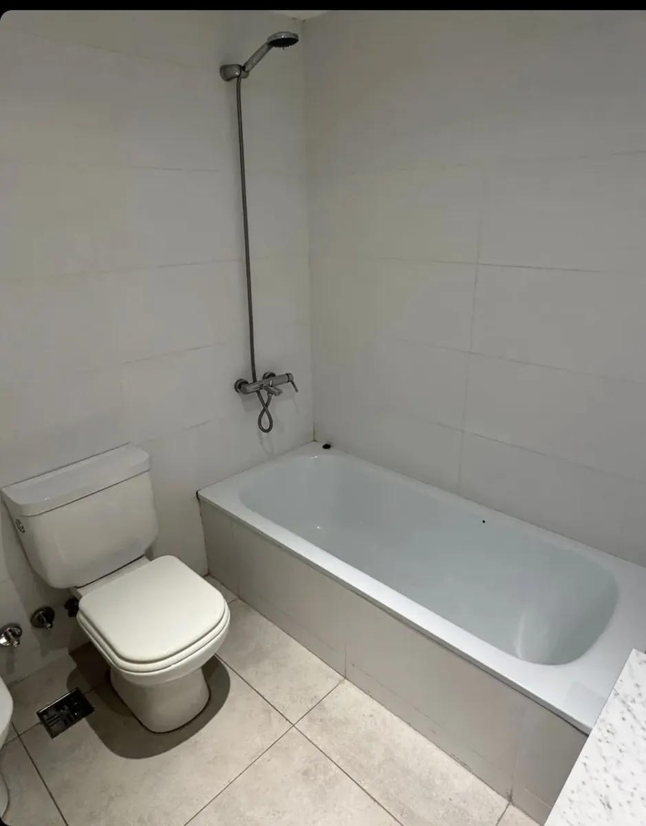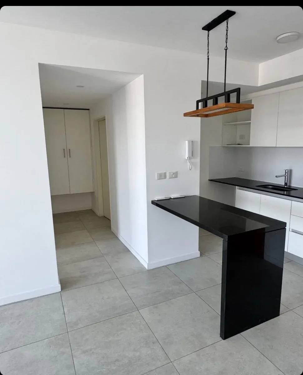 Departamento de 2 ambientes con 1 dormitorio, al frente, con pileta. Dispone de 2 aires acondicionados, cortinas, placares completos y baño completo. La unidad tiene isla de mármol. Según el aviso, todos los servicios están incluidos con el pago de expensas, y por contrato el precio es fijo por 1 año; el único costo adicional indicado es la luz consumida por el departamento.