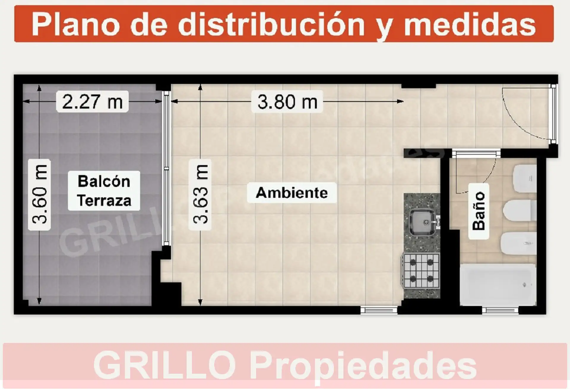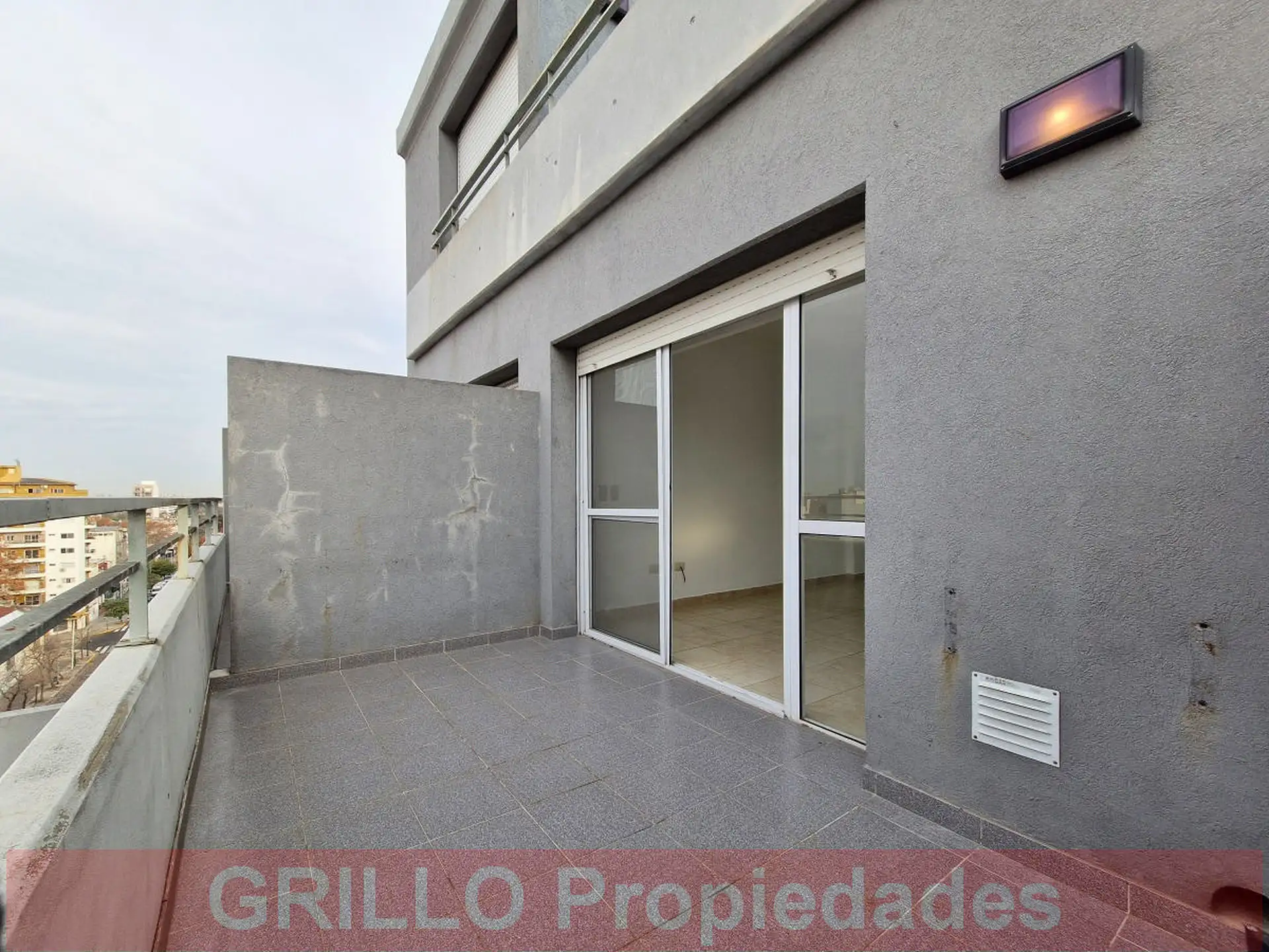 Departamento monoambiente de 31 m² totales, con 24 m² cubiertos y 7 m² de balcón/terraza, al frente. Piso 9 en un edificio de 10 pisos, con dos unidades por piso. Living-comedor con cocina integrada, baño completo con bañera, cocina a gas Volcán, grifería FV y sanitarios Ferrum, cerramiento de balcón en aluminio con persiana y toma y descarga de agua para aire acondicionado. Agua caliente por termotanque central. Antigüedad: 10 años. Expensas incluyen AySA (agua) y MetroGAS (gas) para el agua ca