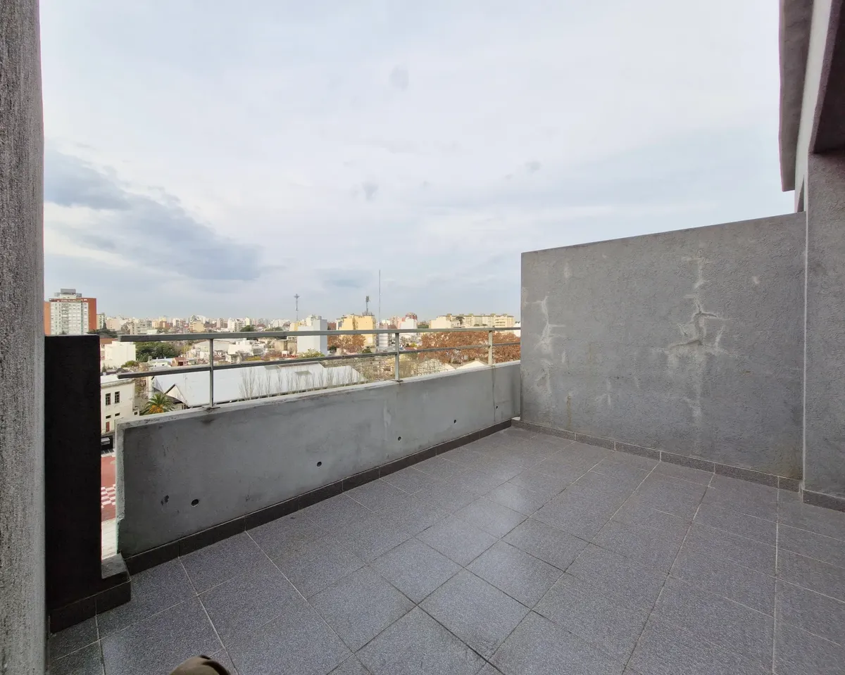 Departamento monoambiente de 31 m² (24 m² cubiertos y 7 m² de balcón/terraza) en el 9° piso, al frente. Cuenta con balcón aterrazado, living-comedor con cocina integrada y baño completo con bañera. Incluye artefacto de cocina a gas Volcán, grifería FV y sanitarios Ferrum; cerramiento de balcón en aluminio con persiana y toma de agua y descarga para aire acondicionado. El agua caliente funciona con termotanque central. Antigüedad: 10 años. Las expensas incluyen AySA (agua) y MetroGas para el agua