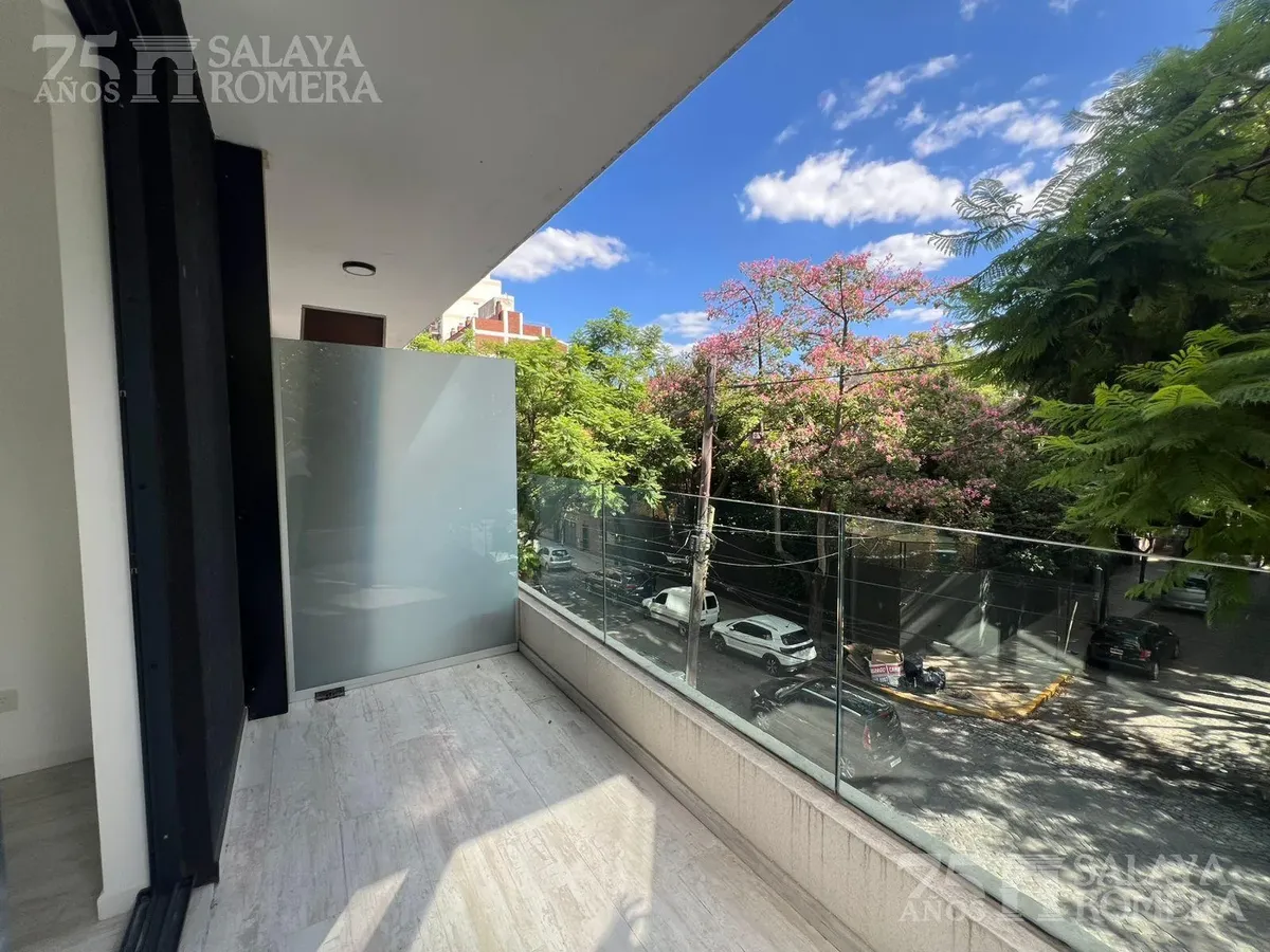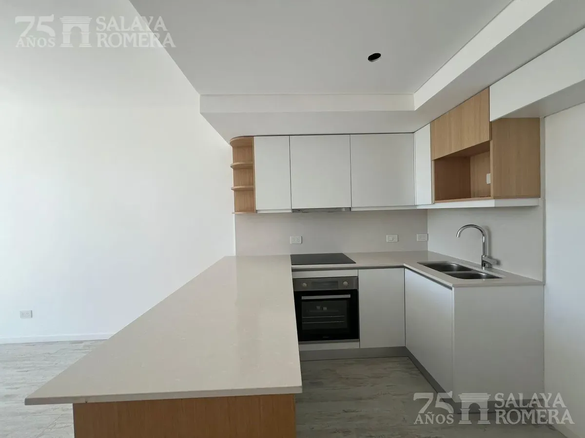 Departamento semipiso de 2 ambientes en Olivos, a estrenar, con cochera. Cuenta con dormitorio de 3,60 x 3,20, living comedor de 6,50 x 3,20 y cocina americana. Tiene baño completo y balcón al frente.