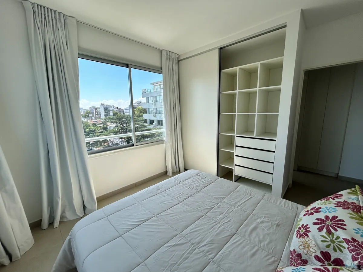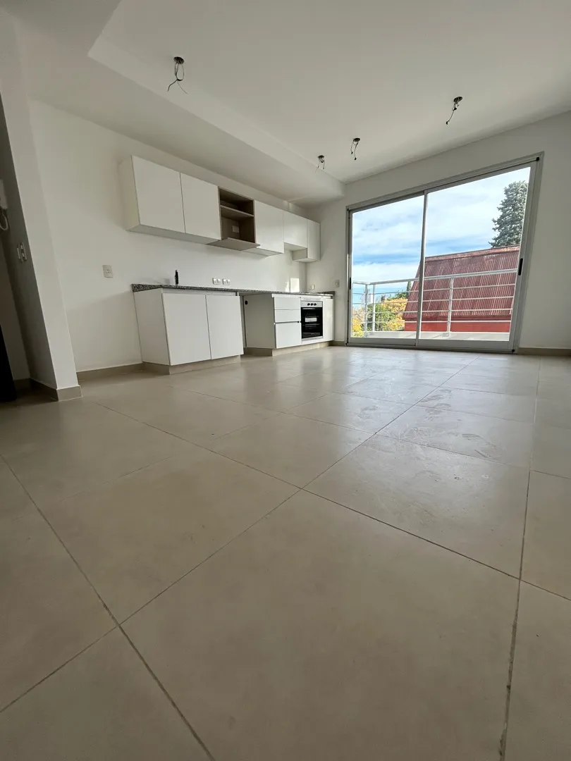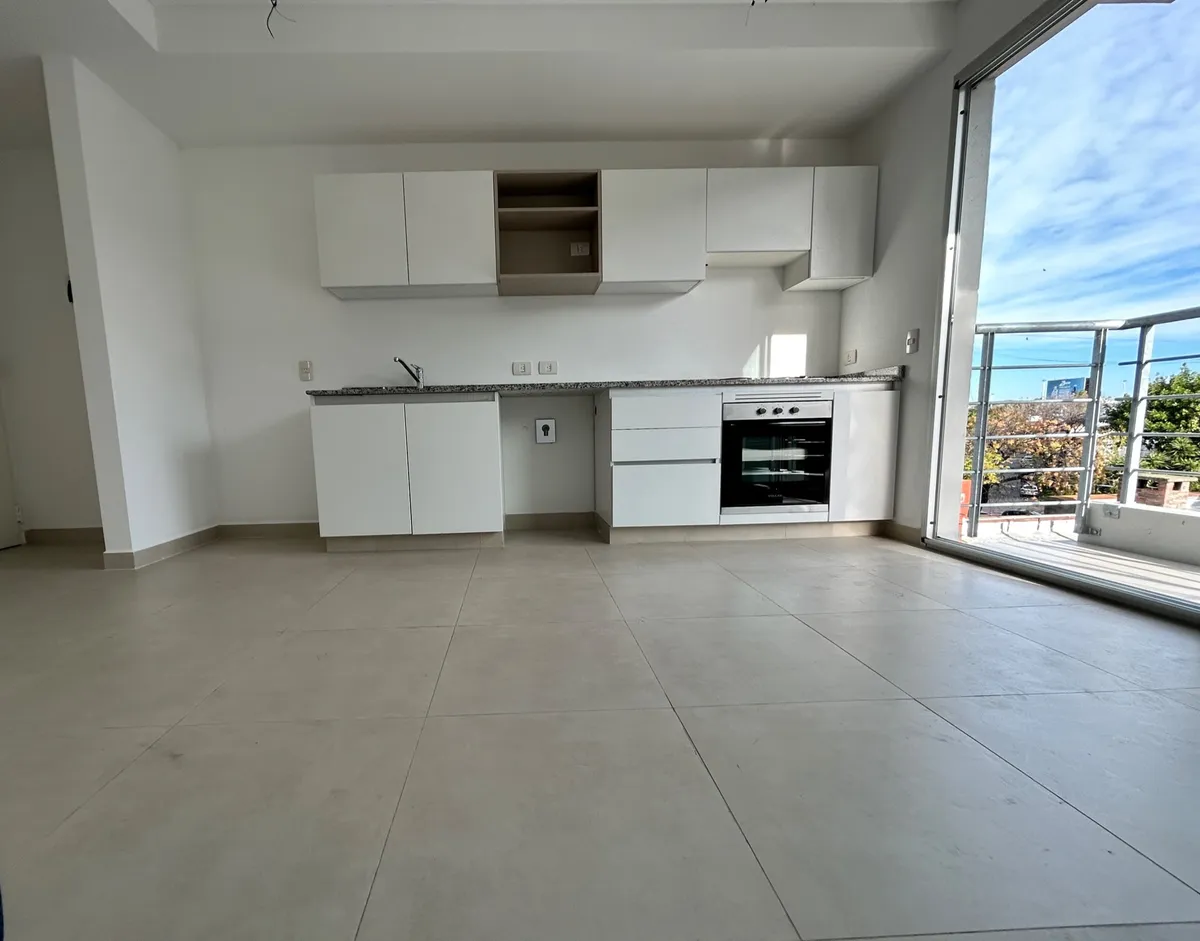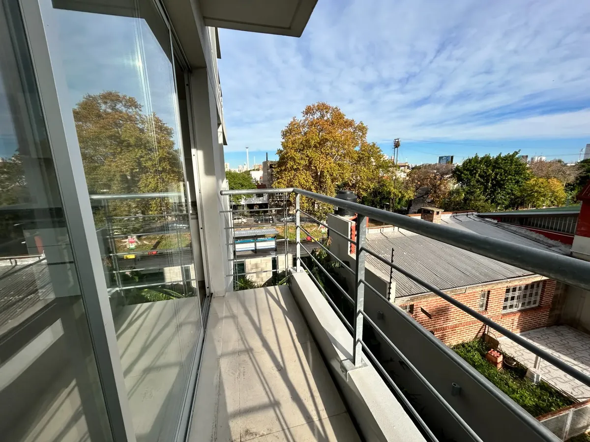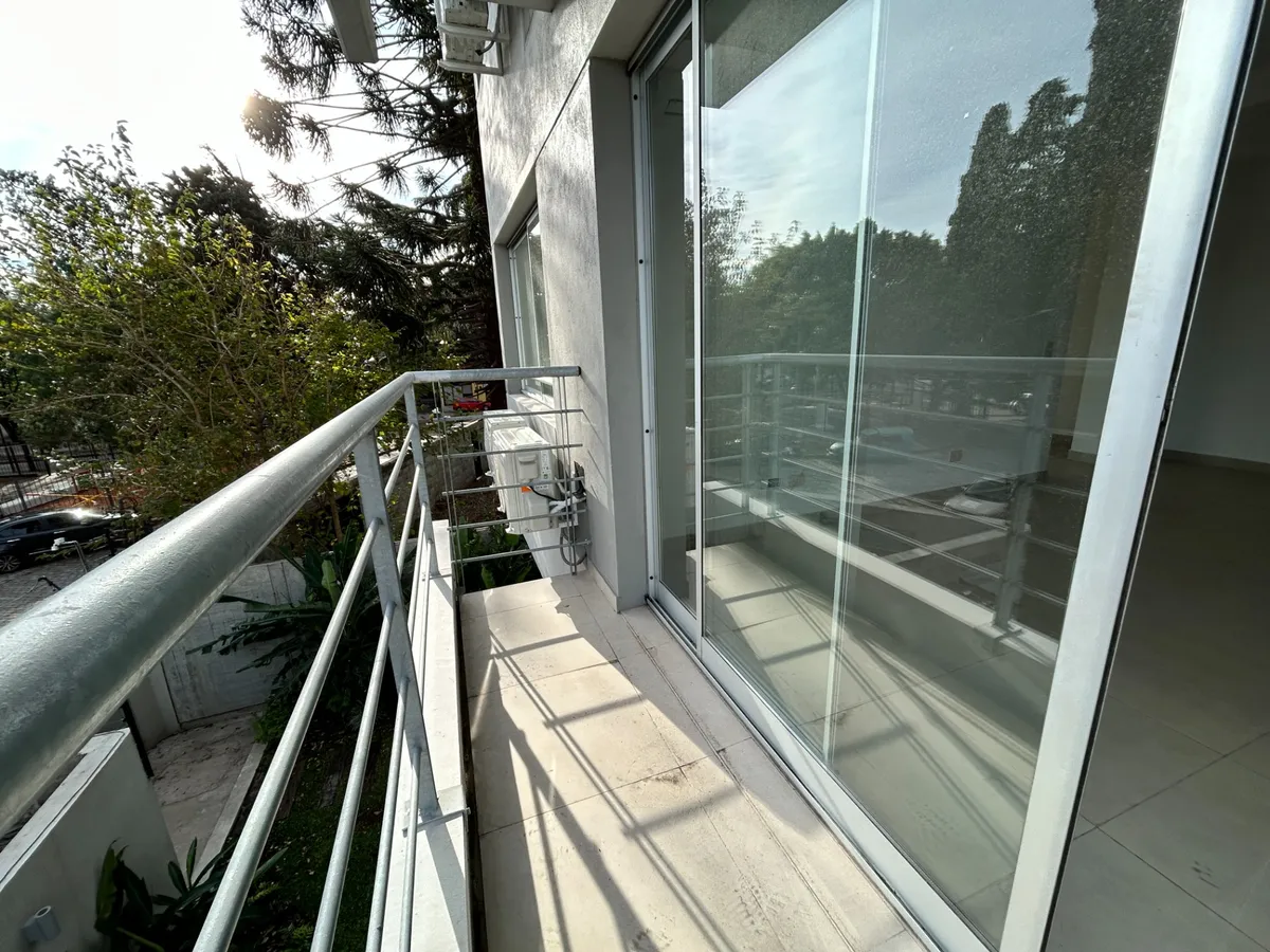 Departamento de 2 ambientes de 37,3 m² con balcón de 2,7 m², total 40 m², en Vicente López. Living comedor con doble vidriado y salida a balcón con vista abierta; dormitorio con 2 ventanales y placares. Baño completo y cocina con espacio de guardado, horno 5 programas y anafe de 4 hornallas eléctricos Longvie. Aire acondicionado frío/calor y agua caliente por caldera central. Incluye cochera y se ubica a 2 cuadras de la estación de tren Aristóbulo del Valle.