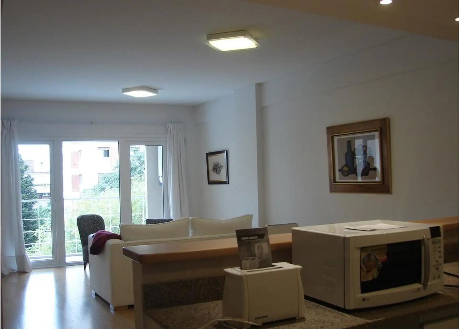 Departamento de 2 ambientes con cochera en Vicente López. Está íntegramente equipado y cuenta con balcón con vista a jardines, cocina integrada con heladera, tostadora, pava eléctrica y vajilla para 4 personas. La habitación es en suite con cama QUEEN y blanquería completa; el living tiene sillón en L y mesa de apoyo. Tiene aire acondicionado frío-calor y el edificio ofrece gym, SUM, parrilla con vista panorámica al río, piscina y seguridad 24 hs. Expensas y servicios van por separado. Ingreso c