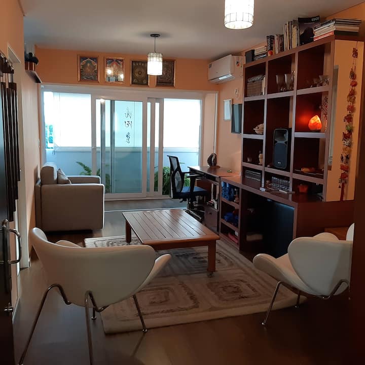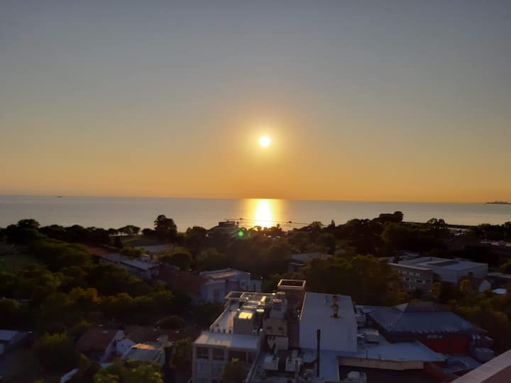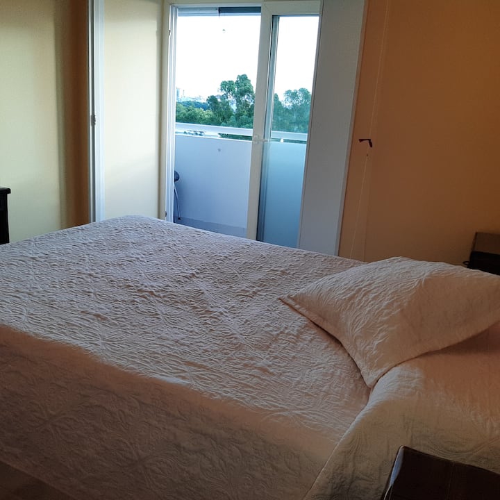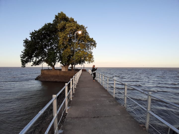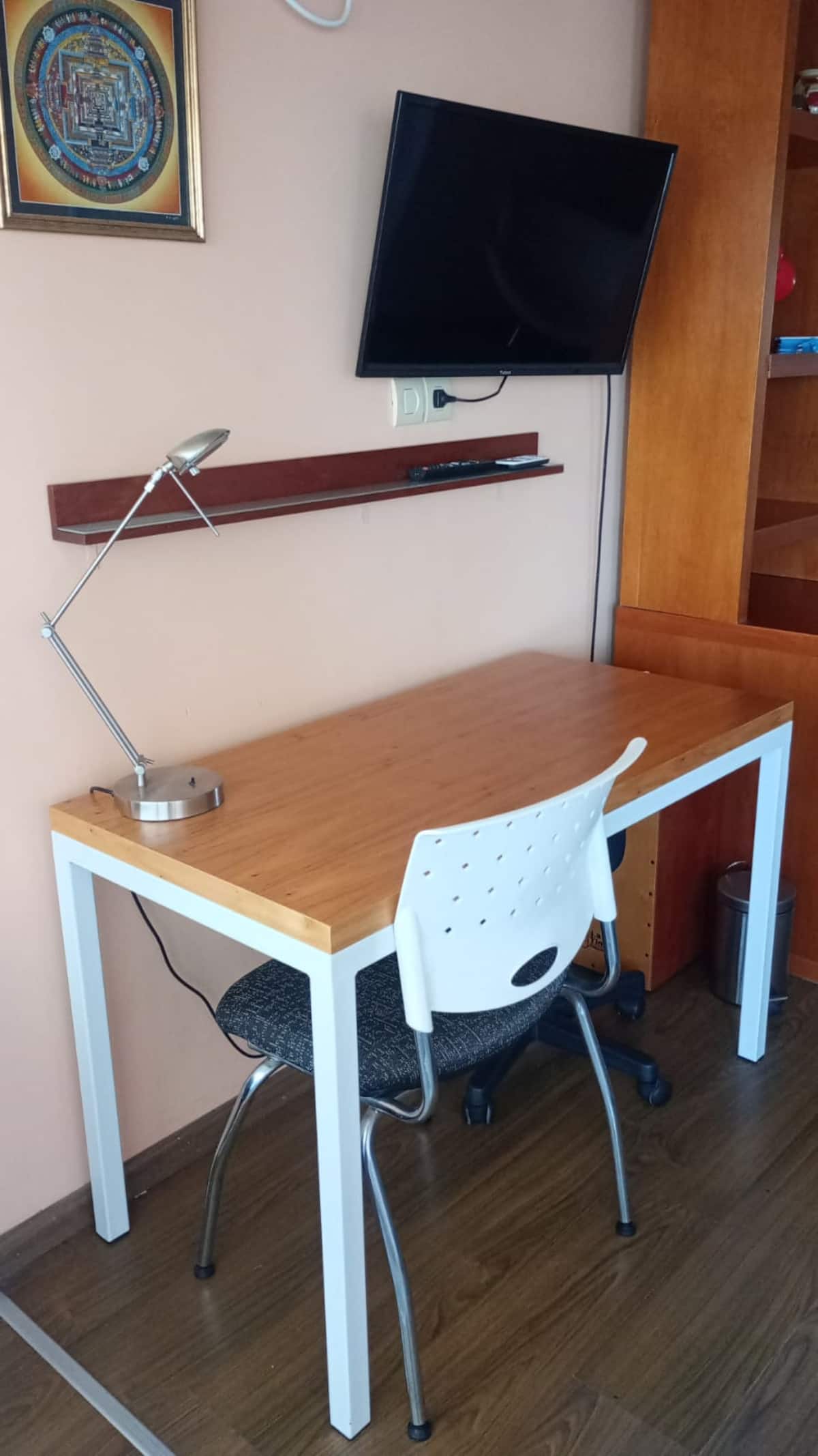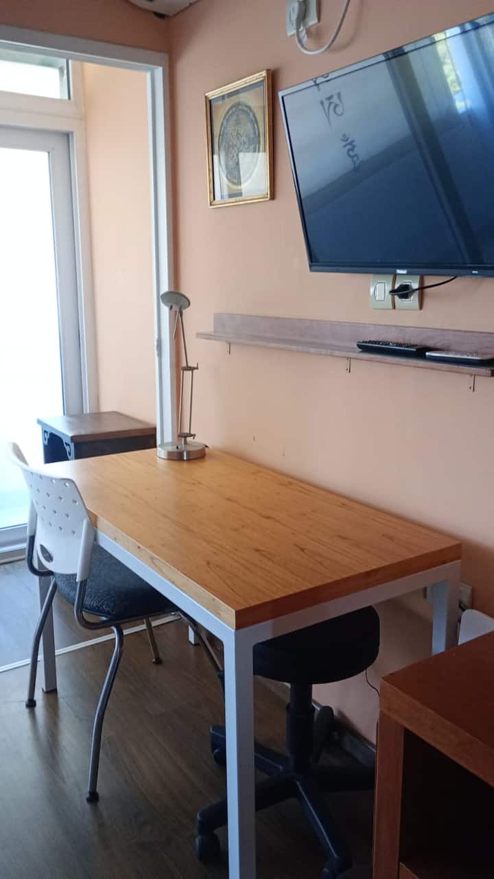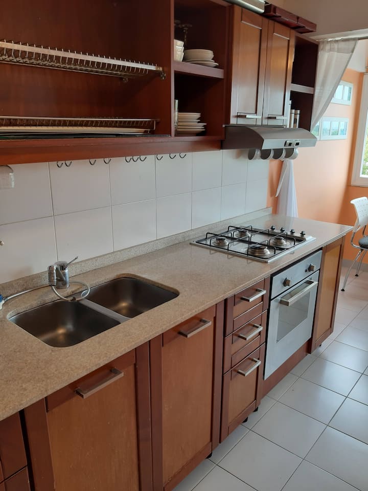 Departamento de 1 dormitorio de 2 ambientes en Vicente López, en un edificio de 12 años, en el 8° piso y al contrafrente, con vista abierta al arboleda de Olivos. Living con TV y escritorio, ventanas con doble vidriado, y aire acondicionado en el dormitorio con cortinas black-out. Cuenta con balcón y acceso a terraza compartida con pileta y deck, además de Wi-Fi (router inalámbrico). Se informan 4 departamentos por piso y 2 ascensores, con seguridad privada 24 horas. Se menciona aparcamiento pag