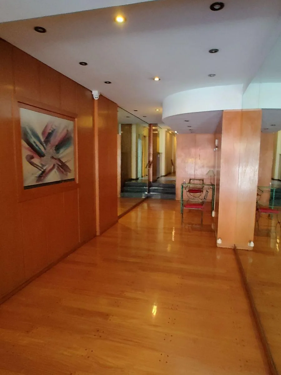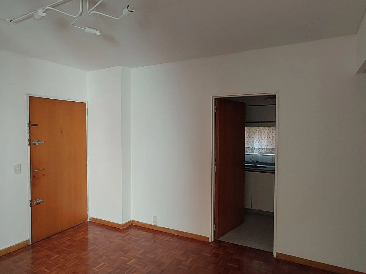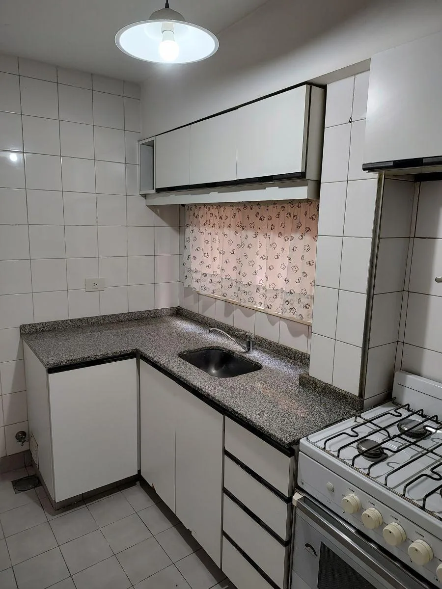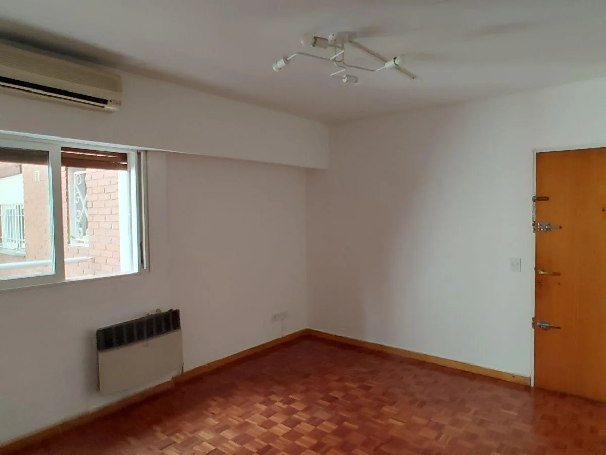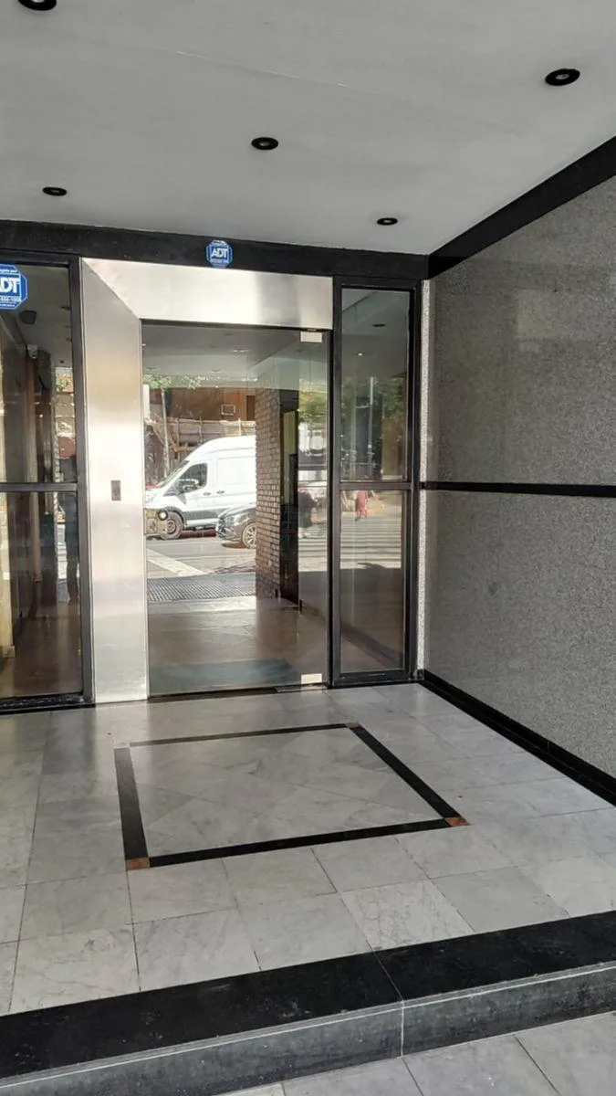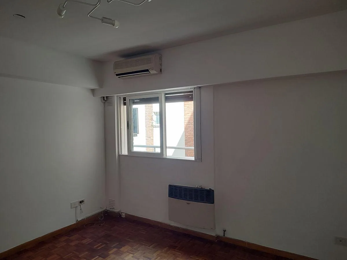 Departamento de 2 ambientes de 9º piso, recientemente pintado. Living de 3,75 x 3,75 con split solo frío y estufa, cocina de 3,00 x 2,10 con espacio para lavarropas y heladera, dormitorio de 3,00 x 3,00 con placard. Balcón de 4,80 x 0,90 y baño completo de 2,40 x 1,95. El edificio cuenta con dos ascensores.