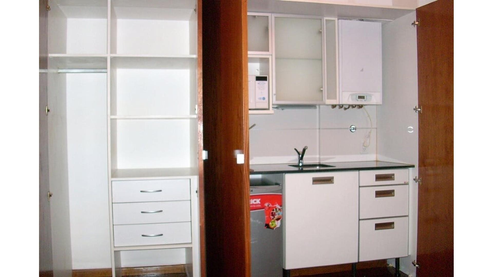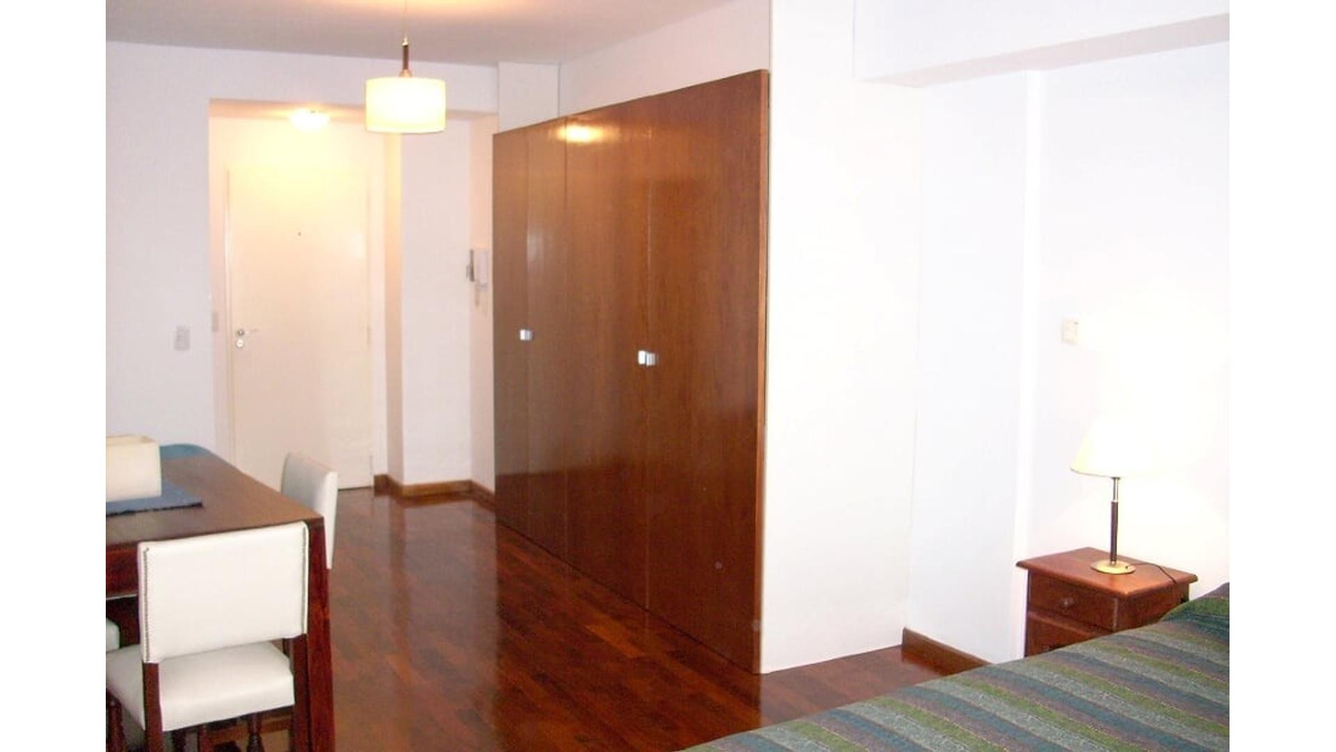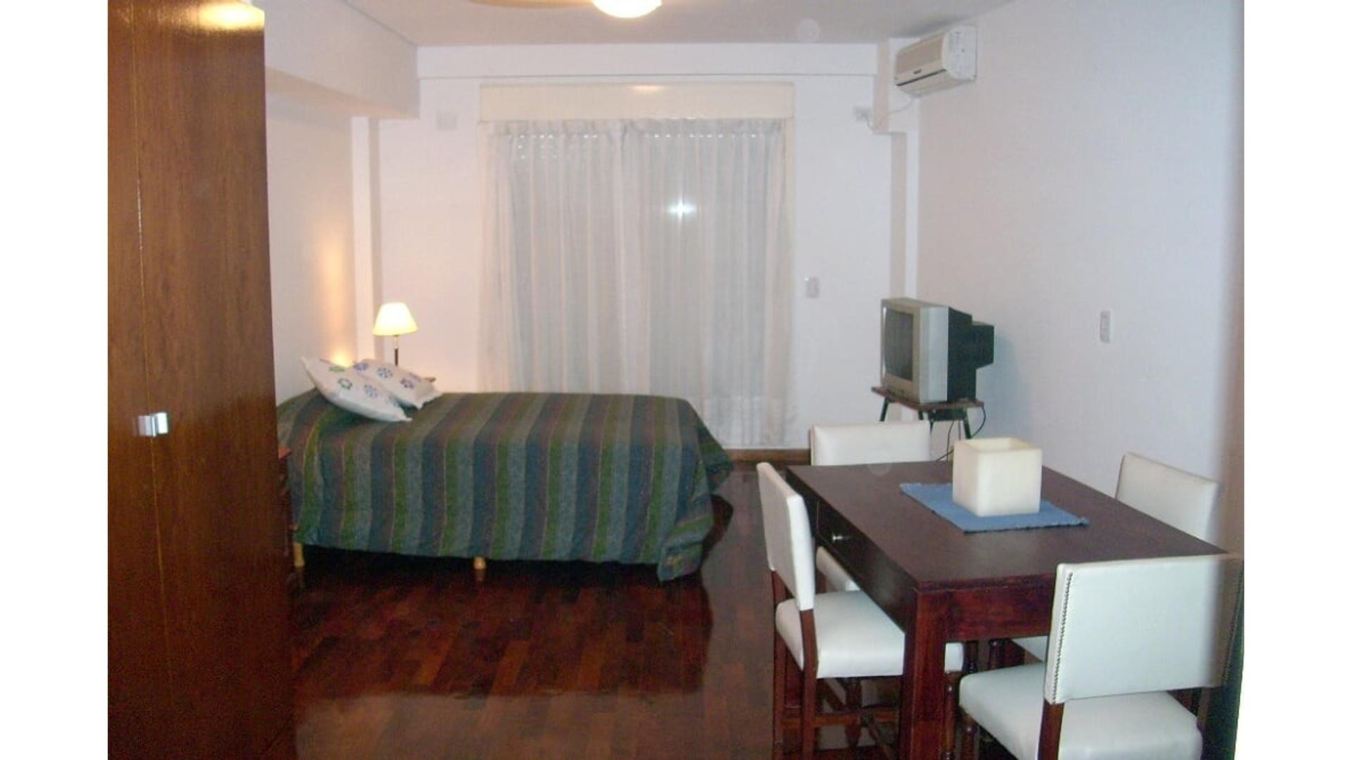 Departamento monoambiente en Núñez, para alquiler temporario. Capacidad 2/3 personas. Con balcón y zona dormitorio con sommier de 2 plazas y cama individual. Incluye aire acondicionado split y calefacción por caldera individual. Cocina tipo kitchenette con microondas, tostadora, vajilla completa y cafetera. Comedor amoblado con mesa y 4 sillas, TV de 21” y baño completo. El alquiler incluye internet WiFi, TV por cable, expensas, agua e impuesto inmobiliario, y electricidad con tope. El edificio
