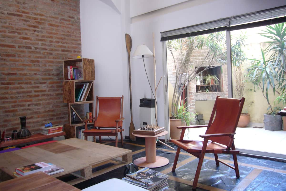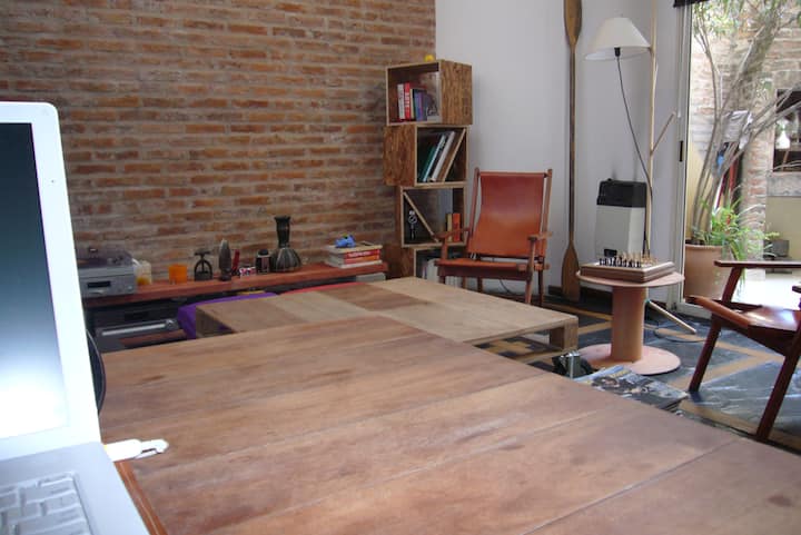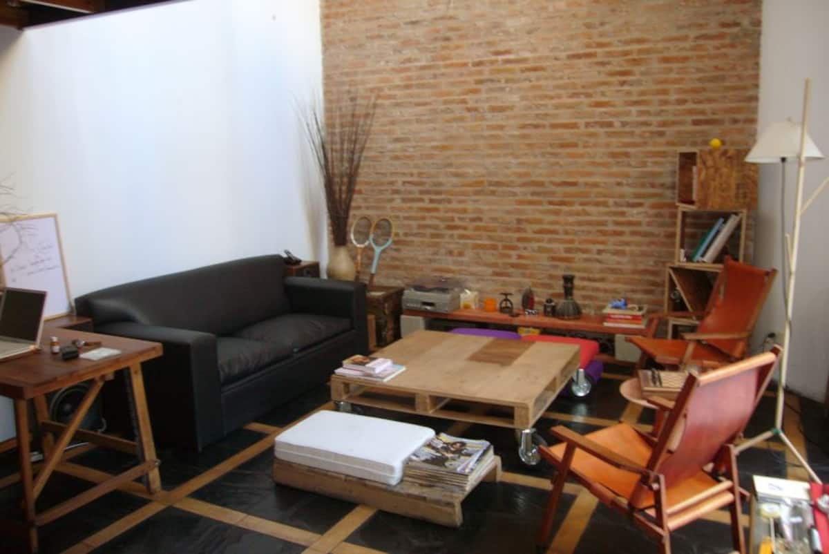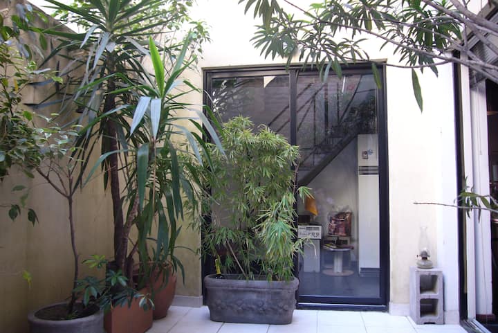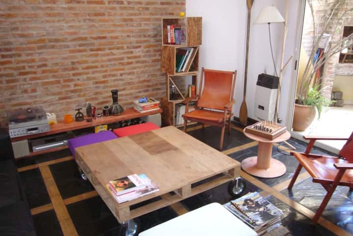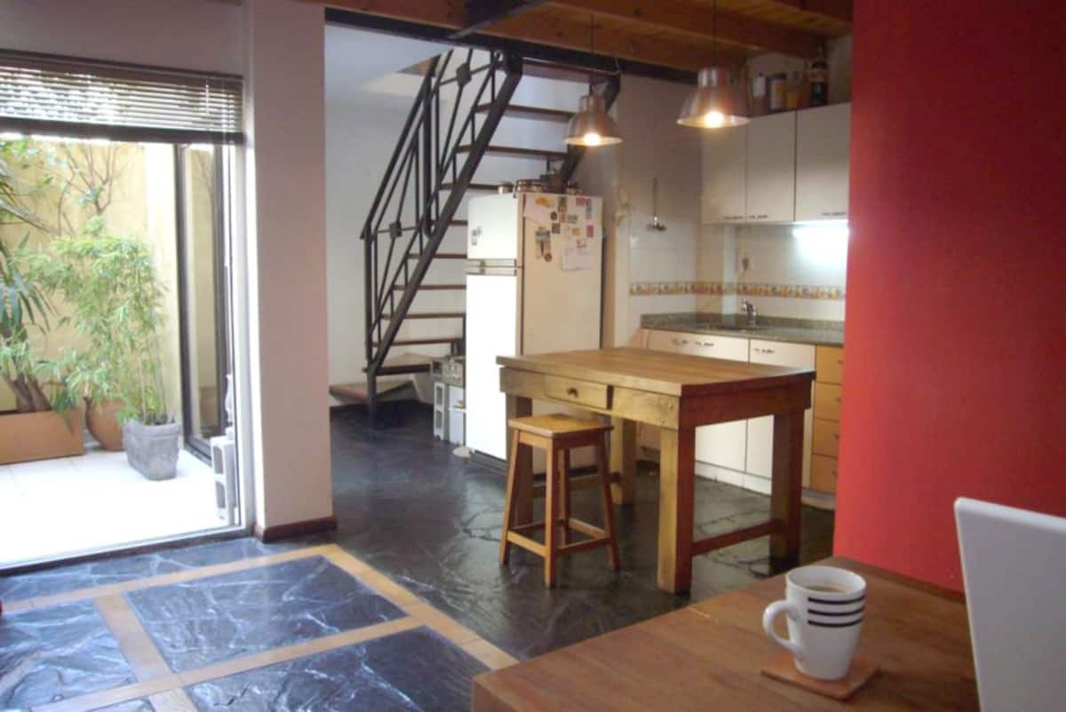 Loft tipo estudio de 1 dormitorio en Palermo Soho, con cocina y 2 baños: uno en planta alta y otro en planta baja. El dormitorio está en la parte superior. Cuenta con patio con parrilla y un espacio de trabajo. Está a media cuadra de Av. Córdoba y de las calles de Niceto Vega, con estaciones de colectivos. A 5 cuadras hay estación de subte de la Línea B.