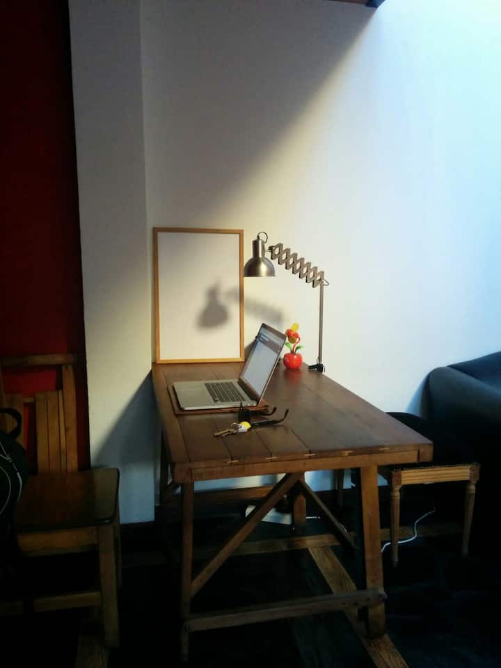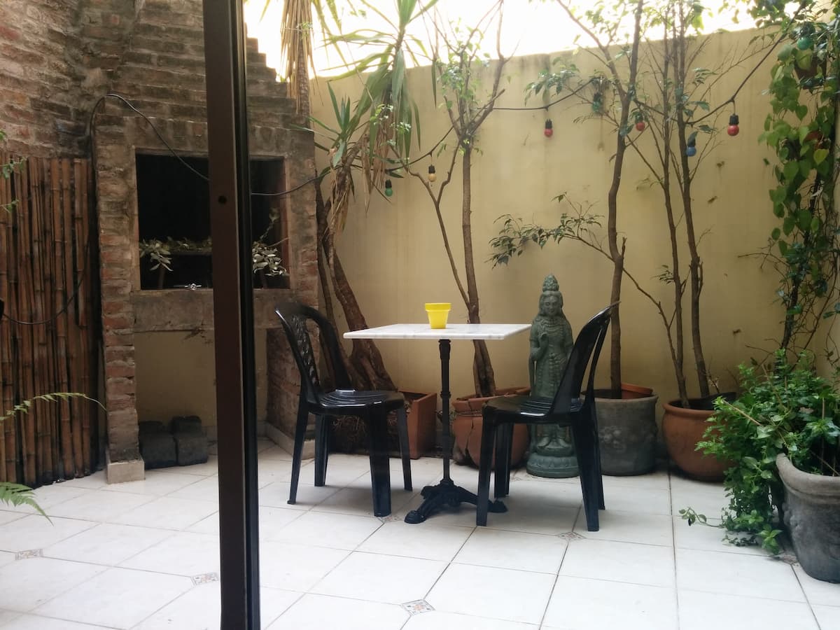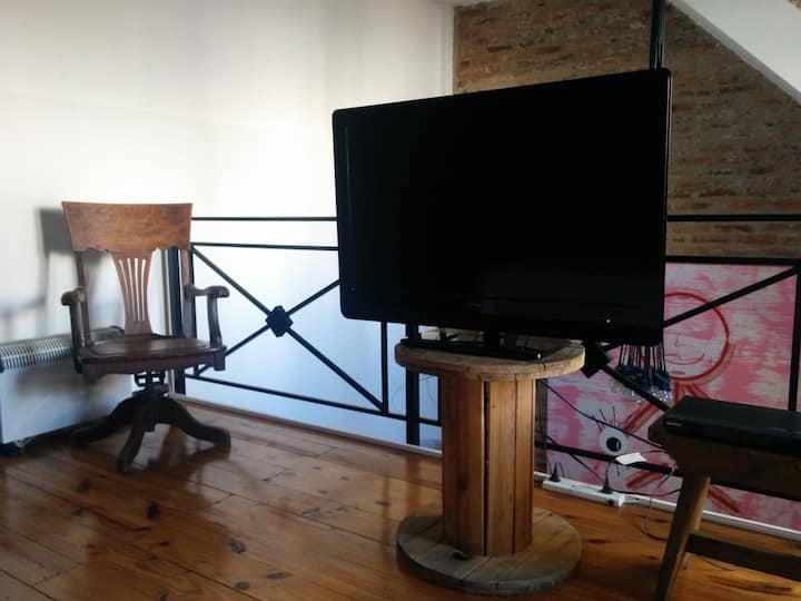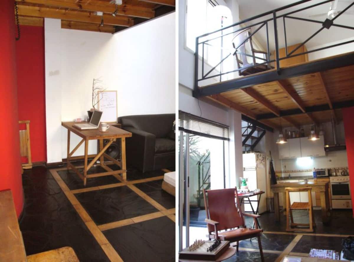 Loft tipo estudio de 1 dormitorio en Palermo Soho, con cocina y 2 baños: uno en planta alta y otro en planta baja. El dormitorio está en la parte superior. Cuenta con patio con parrilla y un espacio de trabajo. Está a media cuadra de Av. Córdoba y de las calles de Niceto Vega, con estaciones de colectivos. A 5 cuadras hay estación de subte de la Línea B.