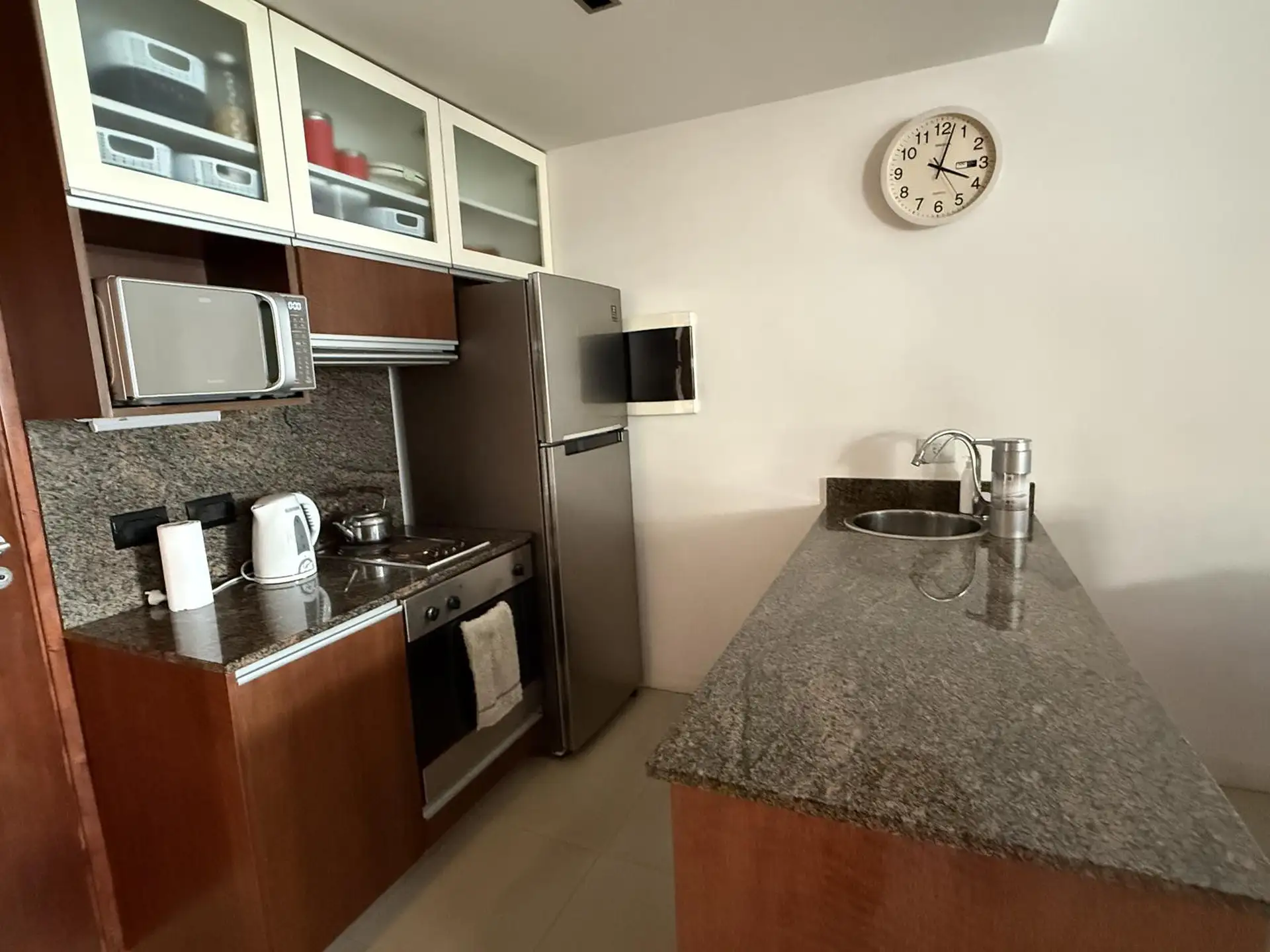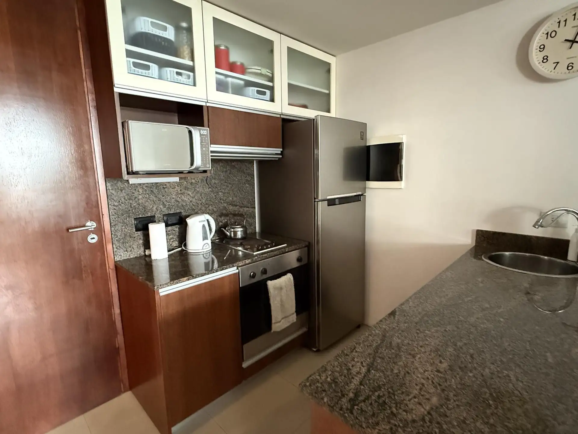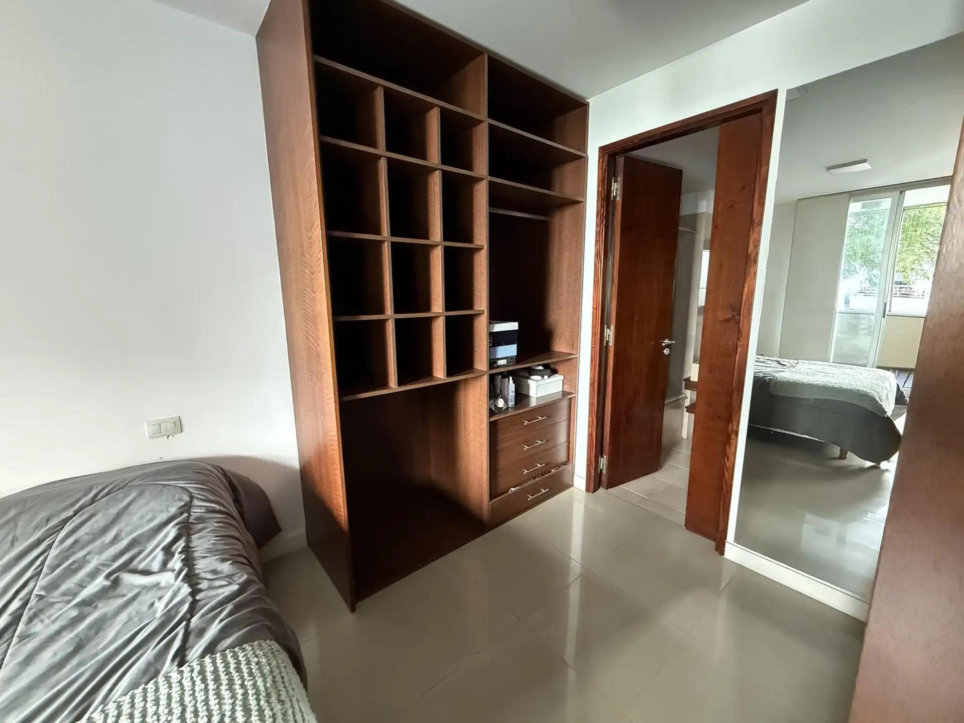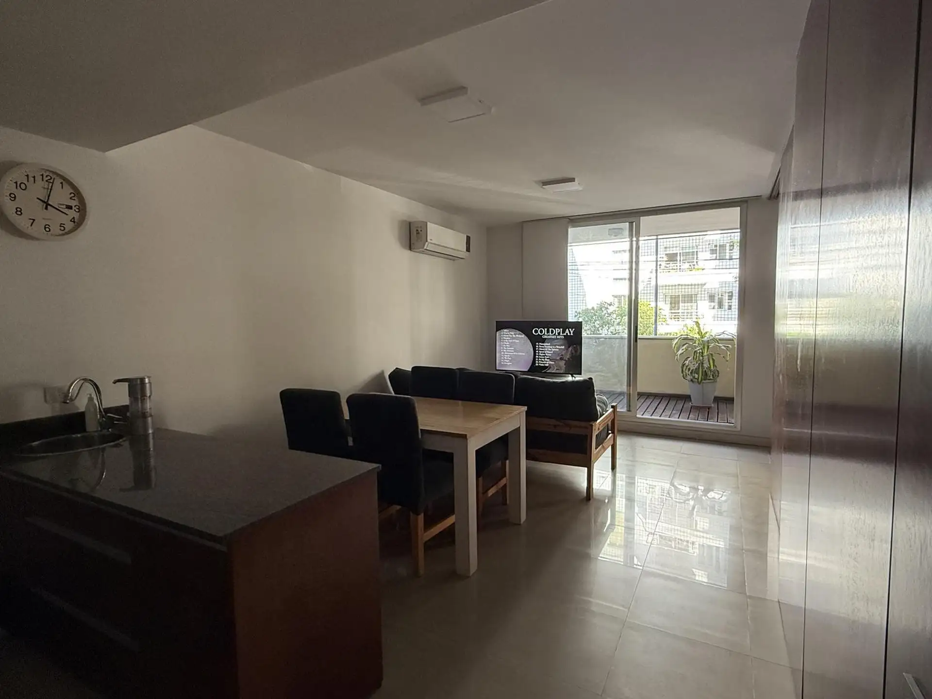 Departamento en Villa Crespo, Thames al 500. Se ubica al frente, en el primer piso, con balcón al frente totalmente enrejado y deck. Dispone de 1 dormitorio con vestidor, baño en suite completo y toilette, living comedor con ventanales de piso a techo y cocina con barra, anafe y horno eléctricos. Cuenta con aire acondicionado, pisos de porcelanato en todo el departamento y puerta principal en madera lustrada.