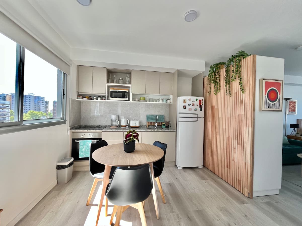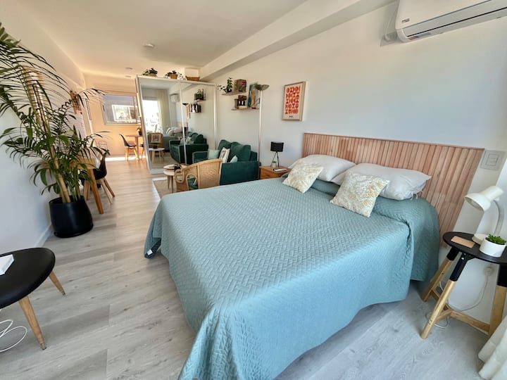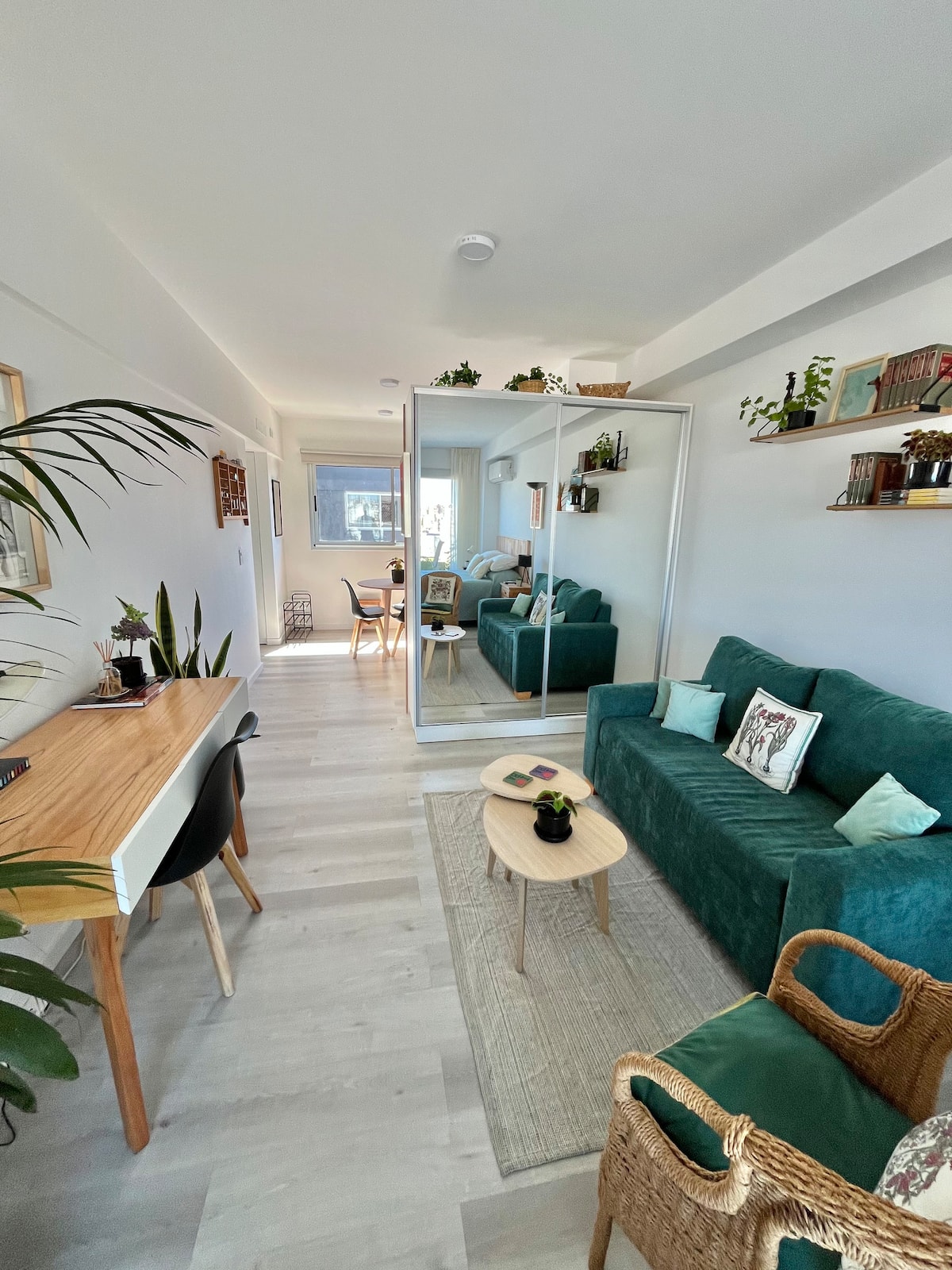 Departamento en Villa Crespo, con acceso por transporte público y Subte B en la estación Malabia. Dispone de mobiliario y equipamiento. El edificio cuenta con seguridad 24 horas y ofrece laundry, pileta, parrillas, gimnasio y un SUM de uso múltiple.