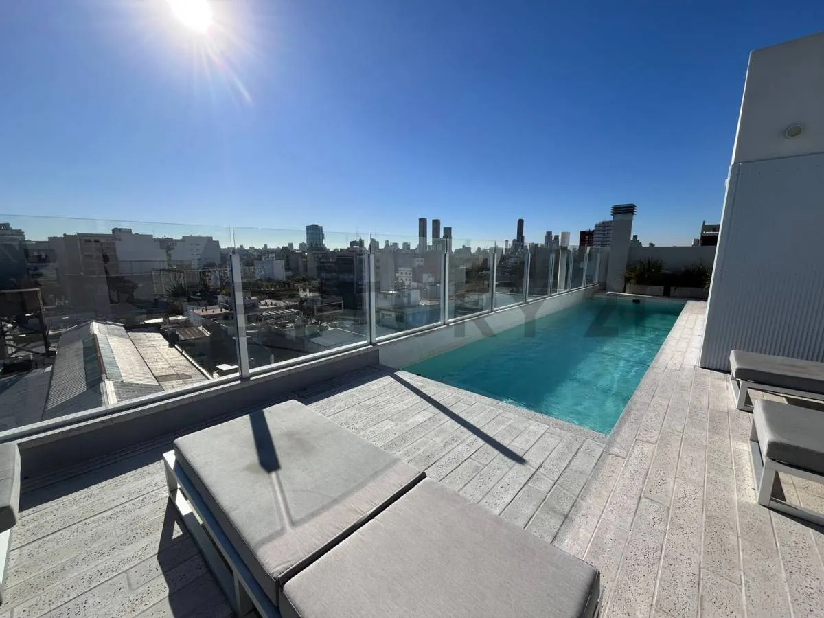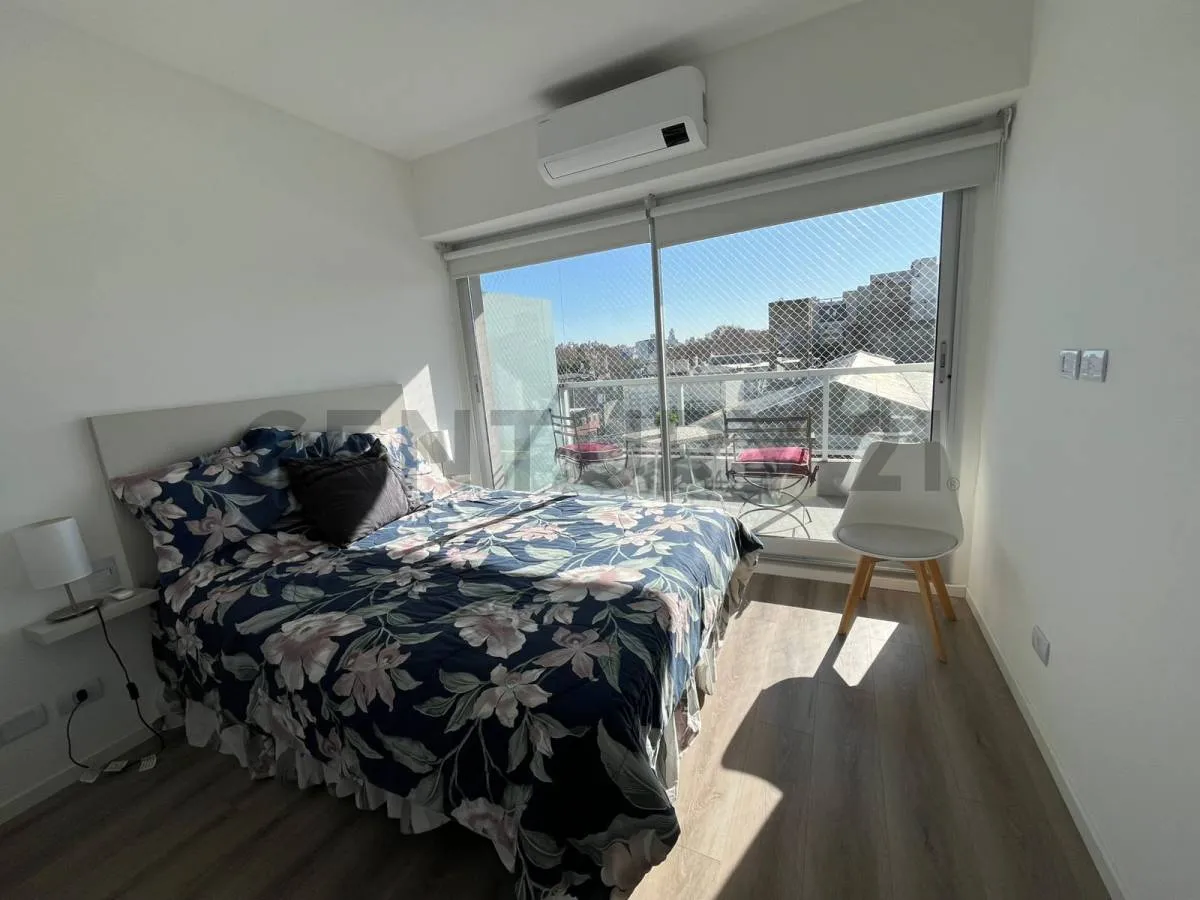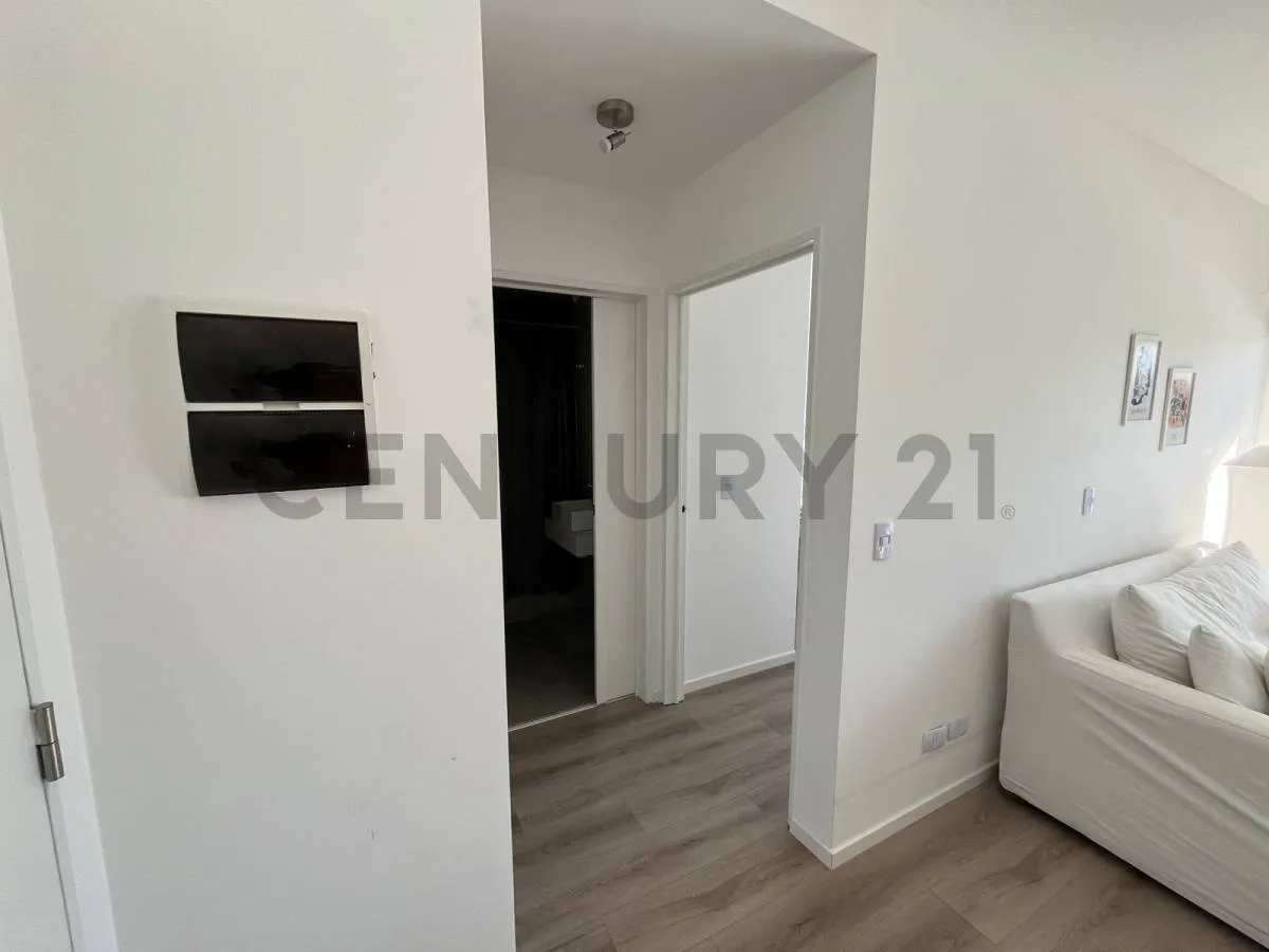 Departamento de 2 ambientes amoblado de 1 dormitorio en un 5° piso al contrafrente. Incluye living con cocina integrada, baño completo, balcón, aire acondicionado en todos los ambientes y conexión para lavarropas. Cuenta con cerradura electrónica. El edificio dispone de seguridad 24 hs, SUM, gimnasio, área de parrillas, piscina con solarium y lavadero, además de cocheras en 4 subsuelos con posibilidad de alquilar. Alquiler disponible a partir de mayo; USD 800 por mes, expensas $408.000 e impuest