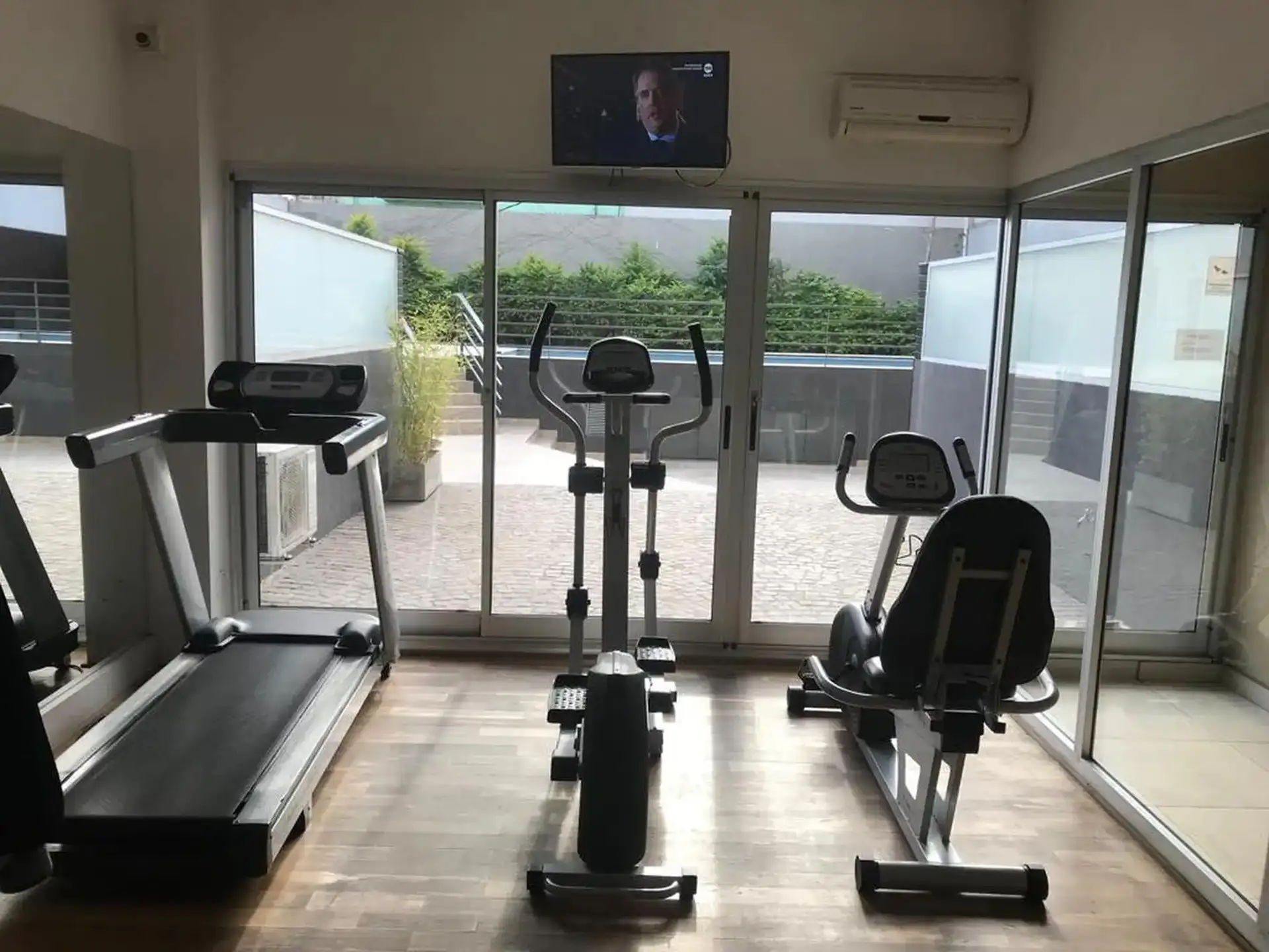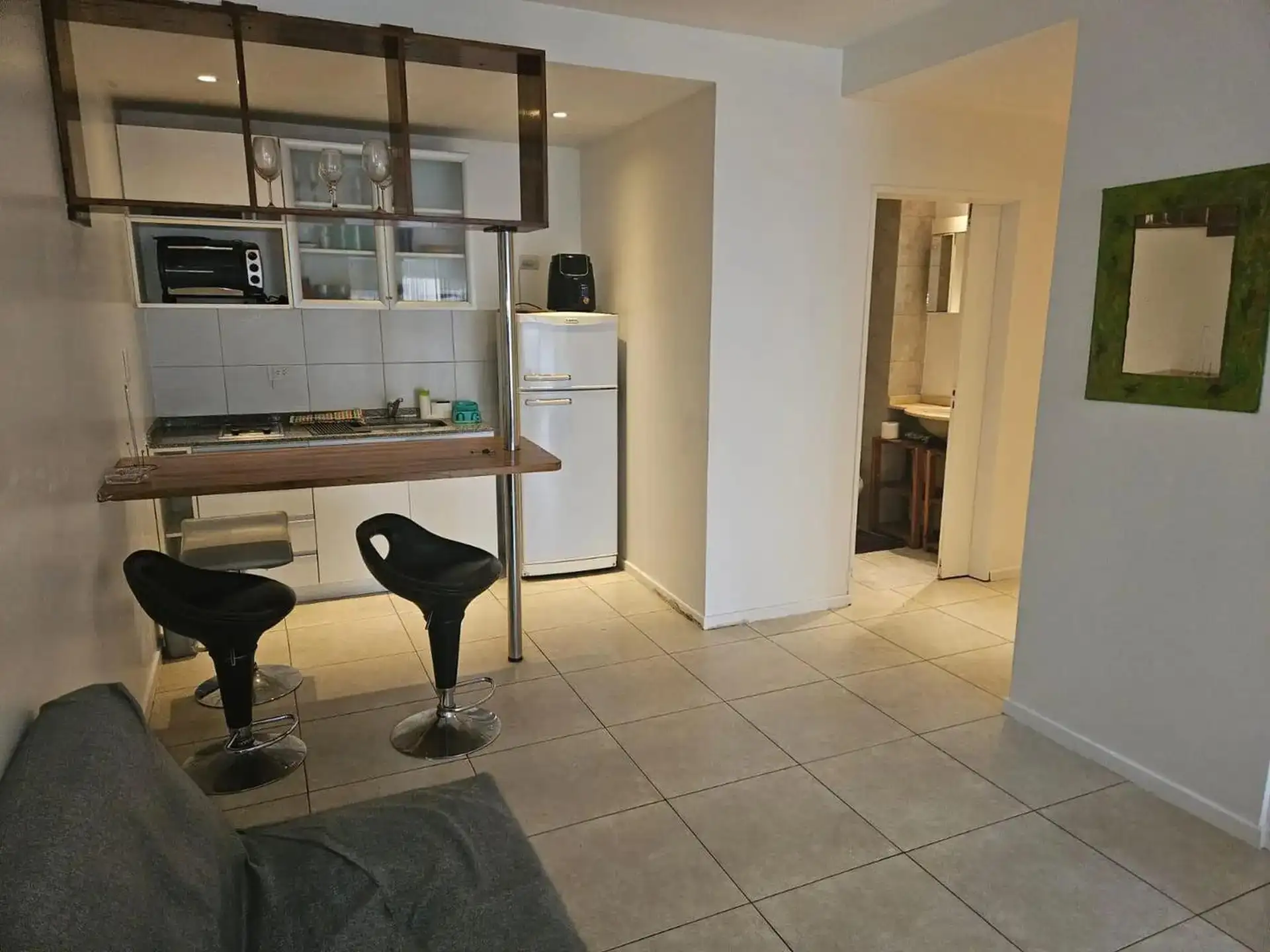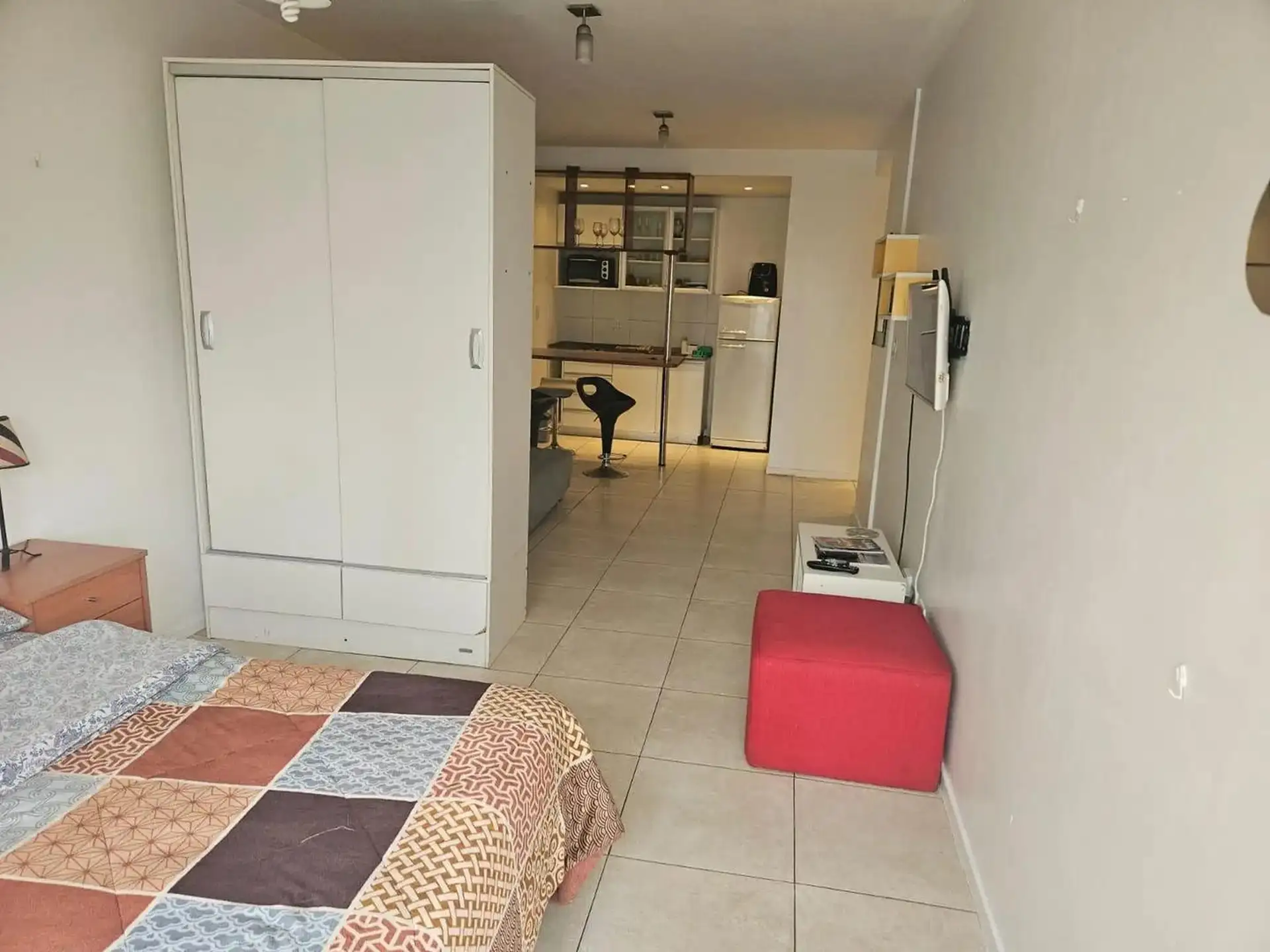 Departamento al contrafrente tipo estudio, amoblado y equipado, con living comedor y balcón con vista a la piscina. Incluye cama doble, placares, cocina integrada con heladera con freezer, baño completo con bañera, aire acondicionado y calefacción, además de WiFi y TV. El edificio cuenta con quincho con parrillas, jardín, laundry, gimnasio, solarium y seguridad, con piscina principal y piscina para niños. El alquiler es paquete todo incluido con WiFi y cable; pueden aplicarse topes al consumo de