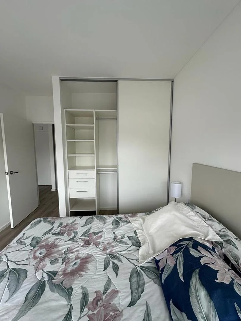 Departamento de 2 ambientes a estrenar de 39 m² cubiertos, 48 m² totales, en un 5° piso al contrafrente, con balcón de 9 m². Cuenta con living-comedor con salida al balcón y cocina integrada; tiene 1 dormitorio, baño completo y 2 aires acondicionados frío/calor. El edificio dispone de piscina, SUM, gimnasio, parrilla y seguridad.