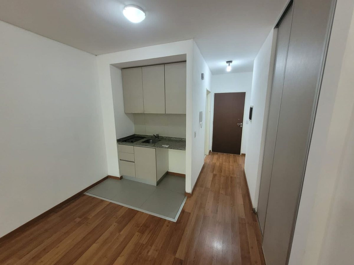Departamento monoambiente en una torre. Cuenta con ambiente con cocina integrada, baño completo con bañera y balcón al frente. Tiene aire acondicionado y se ofrece en alquiler tradicional. El edificio dispone de seguridad 24 hs, SUM en planta baja, dos parrillas, sala de juegos en entrepiso, gimnasio en planta baja, piscina, sala de video juegos, pool, ping pong y microcine, laundry, cocheras de cortesía y 3 ascensores. Disponible a partir de mayo.