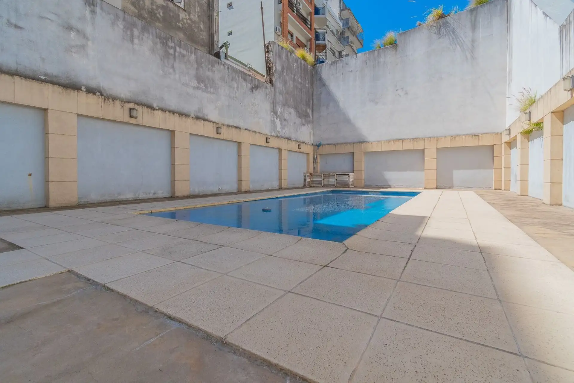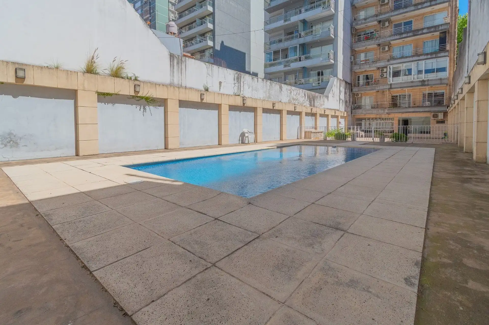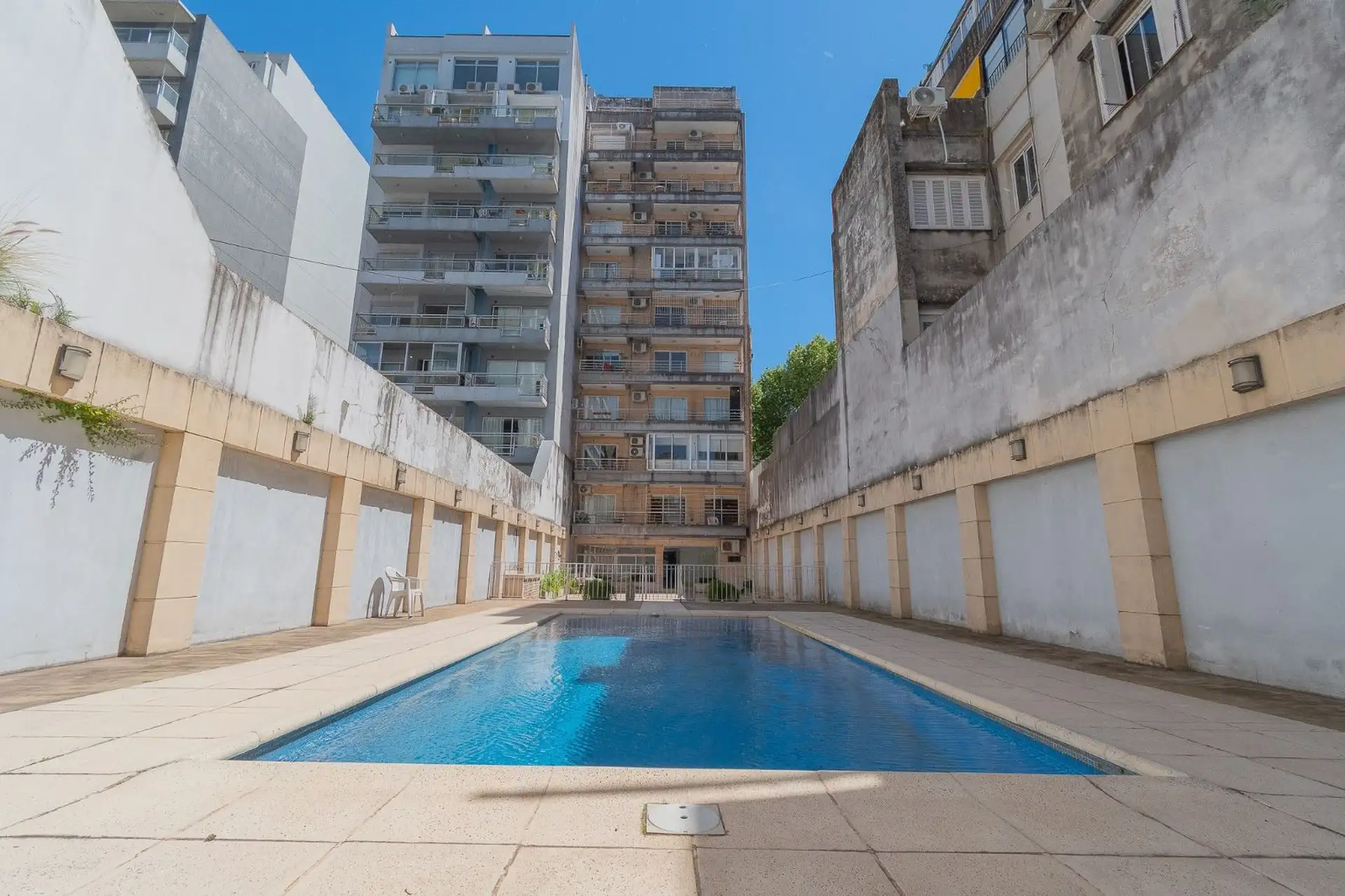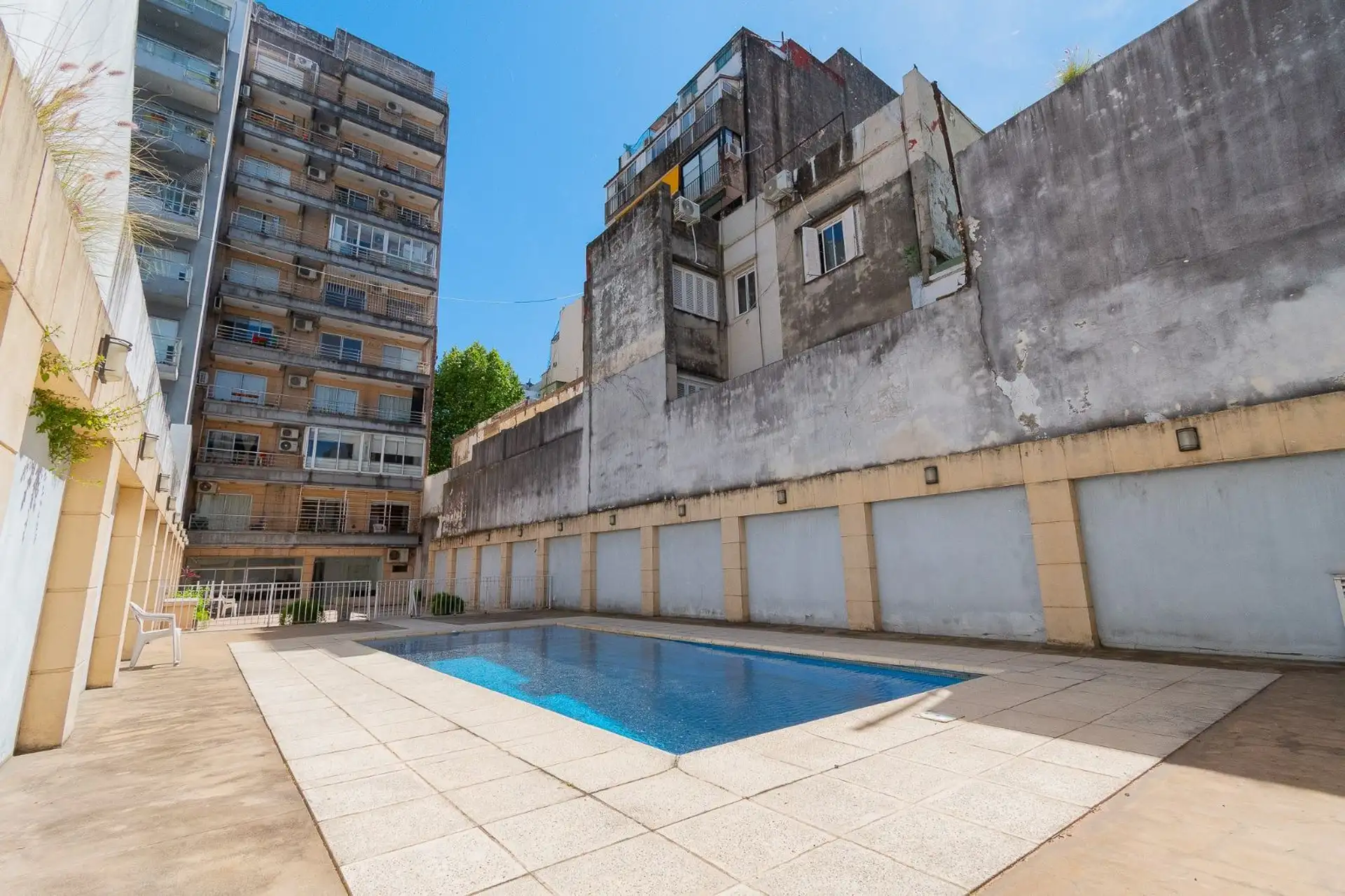 Departamento de 2 ambientes para alquiler temporario en Villa Crespo. Cuenta con 1 dormitorio, cama matrimonial, cocina equipada con tostadora, microondas, pava eléctrica, heladera y utensilios varios, y baño completo con bañera y bidet. Incluye desayunador con banquetas, internet y aire acondicionado. El edificio dispone de piscina y SUM. El valor mensual es de $560, más servicios y expensas.
