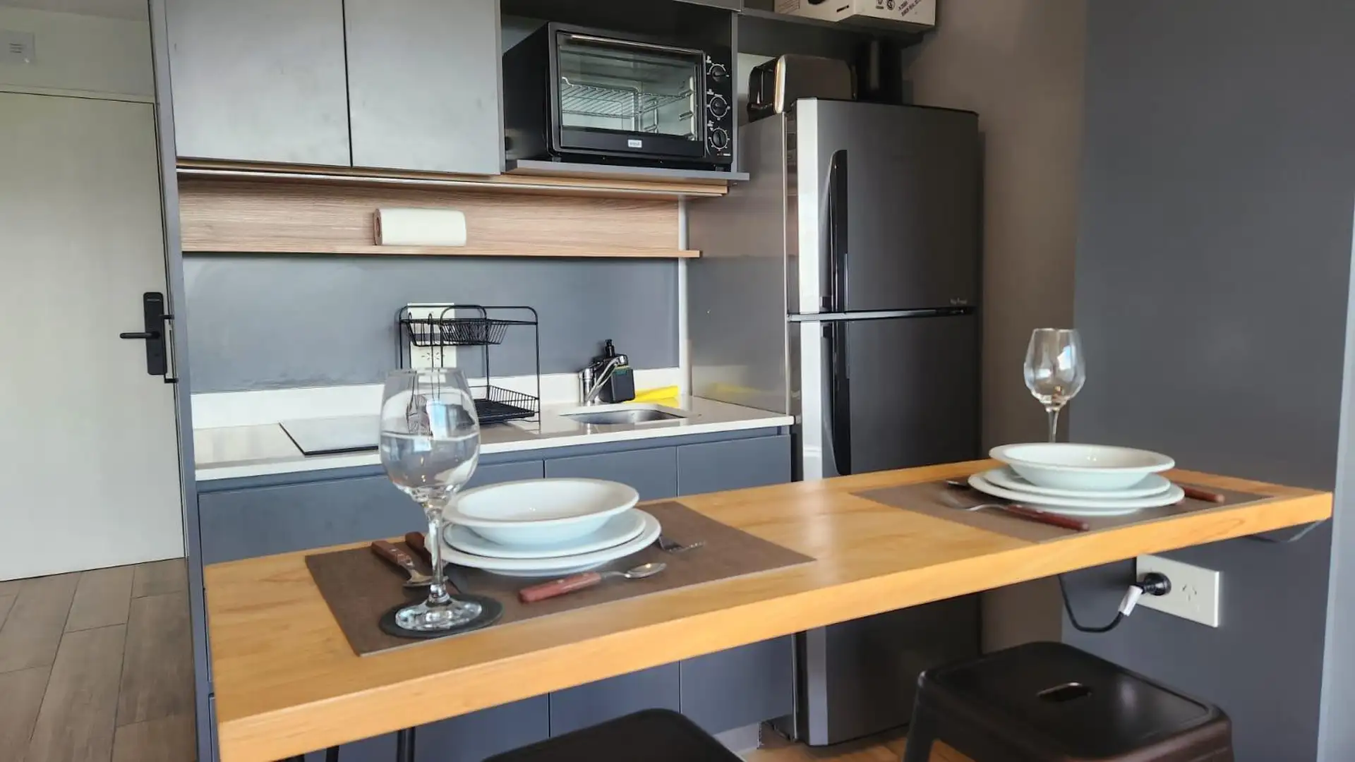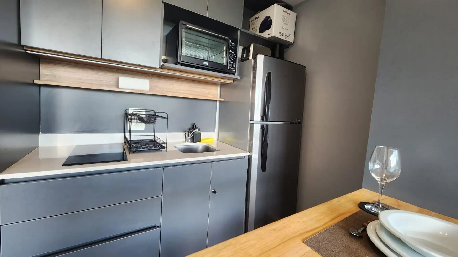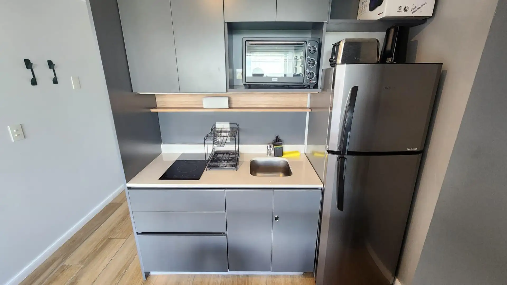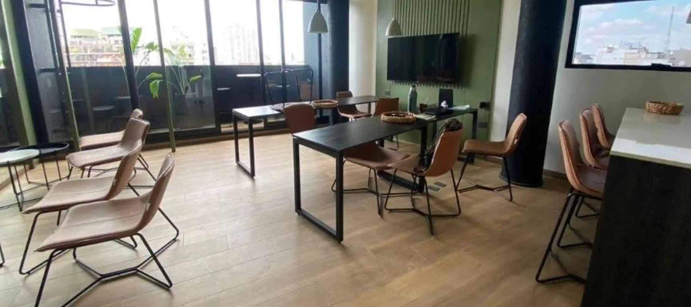 Departamento monoambiente de 24 m² totales, 23 m² cubiertos y 3 m² semi-cubiertos, con balcón corrido y vista abierta al parque. Cocina integrada con mesada de cuarzo, anafe eléctrico, horno eléctrico y heladera; baño completo con mampara de vidrio templado y ducha con nicho. Cuenta con aire acondicionado y piso símil madera; el edificio dispone de laundry, piscina con solárium en terraza, spa con sauna seco, sauna húmedo y jacuzzi, sala de masajes, sector de coworking y gimnasio equipado.