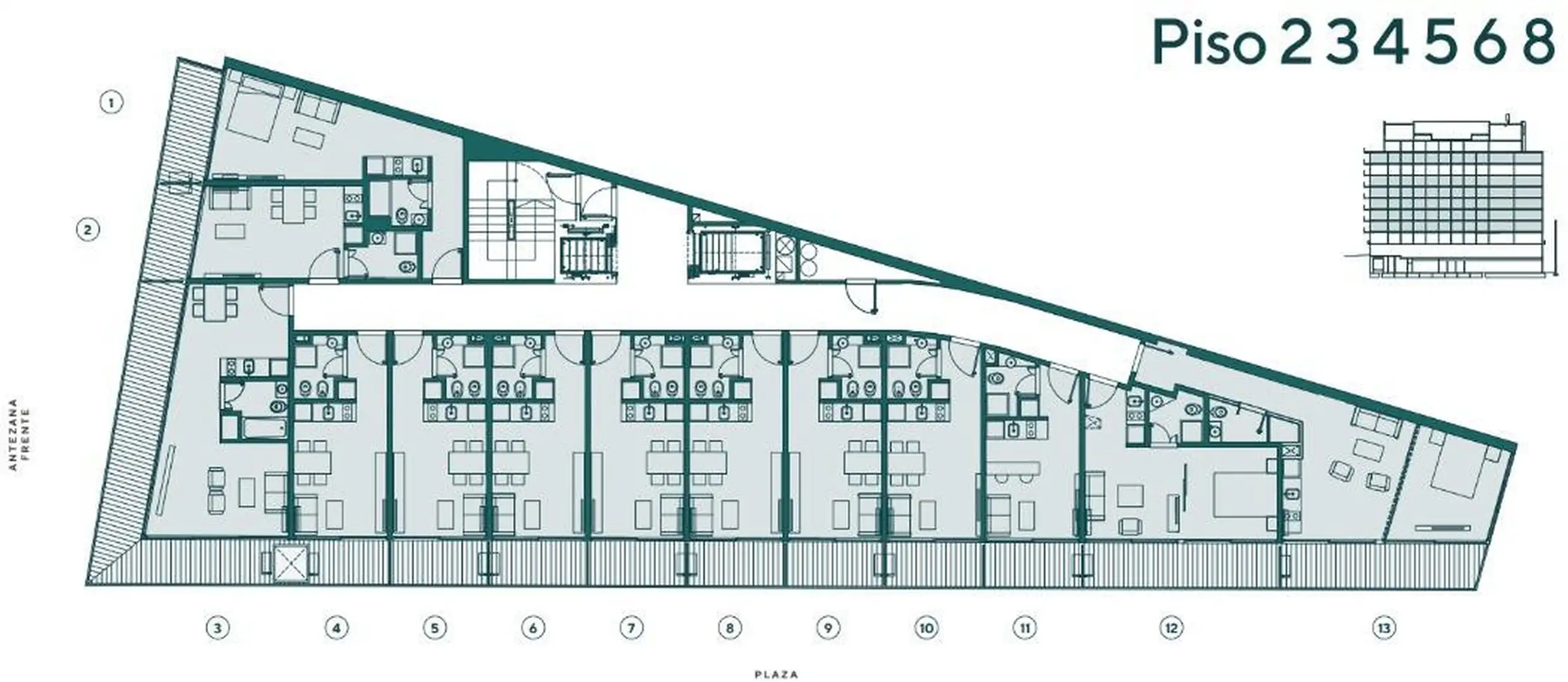 1 dormitorio · 2 camas · 1 baño · Villa Crespo · Antezana 500