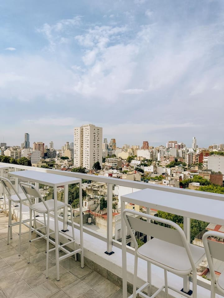 Departamento en Villa Crespo con acceso a terraza y áreas de recreación. El alojamiento cuenta con Smart TV con cable, WiFi, heladera y otros electrodomésticos, además de sábanas y toallas. El edificio incluye espacio de coworking y una pileta semidescubierta. Cercano a las líneas B y D de subte y a Av. Córdoba.