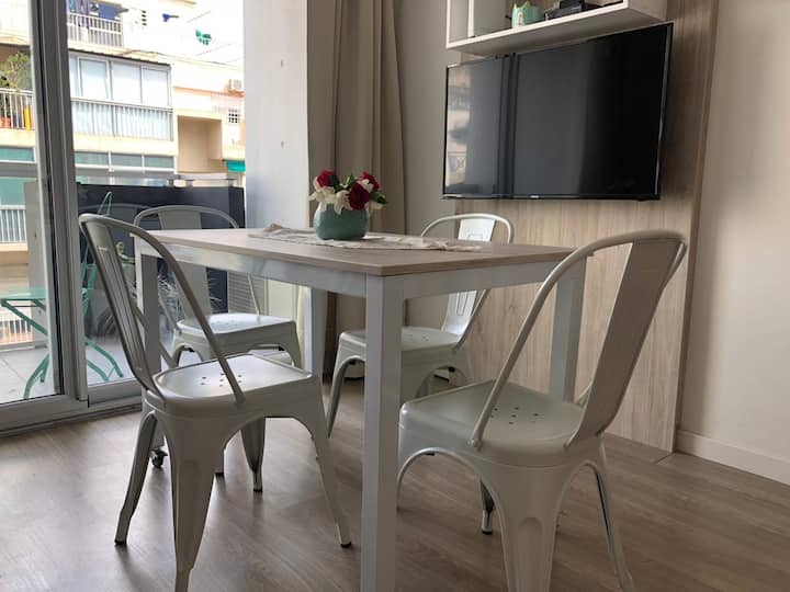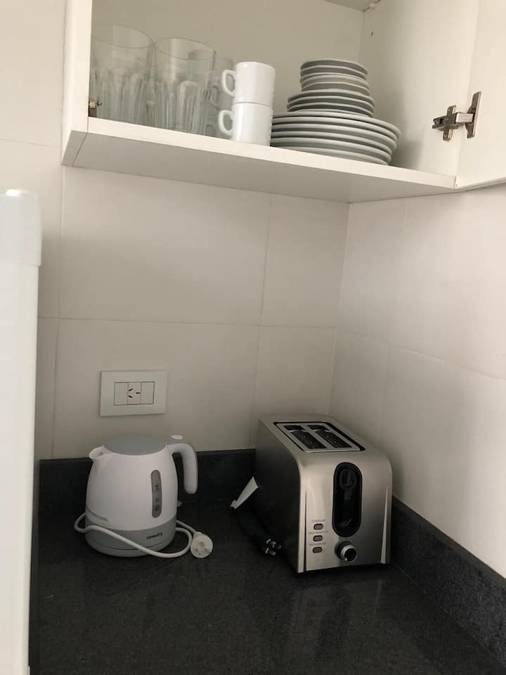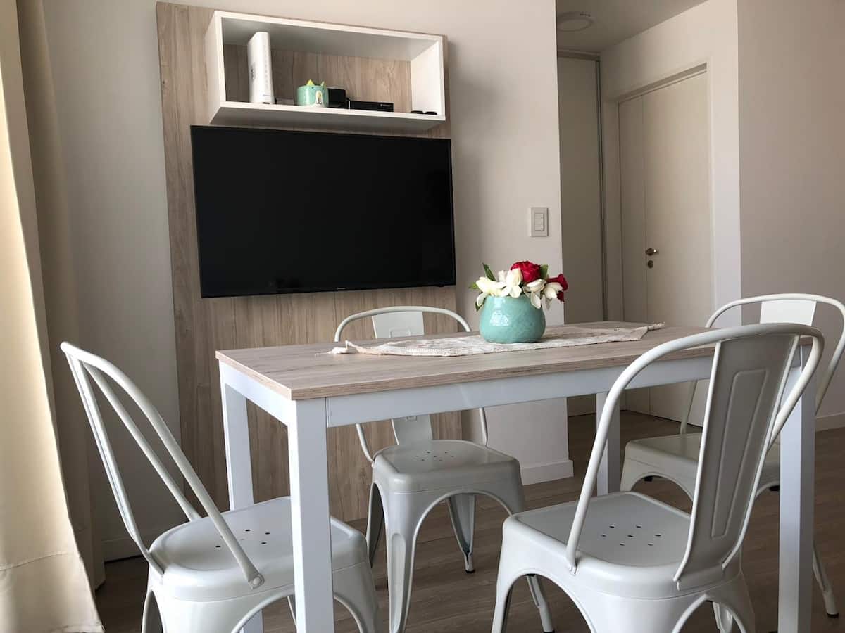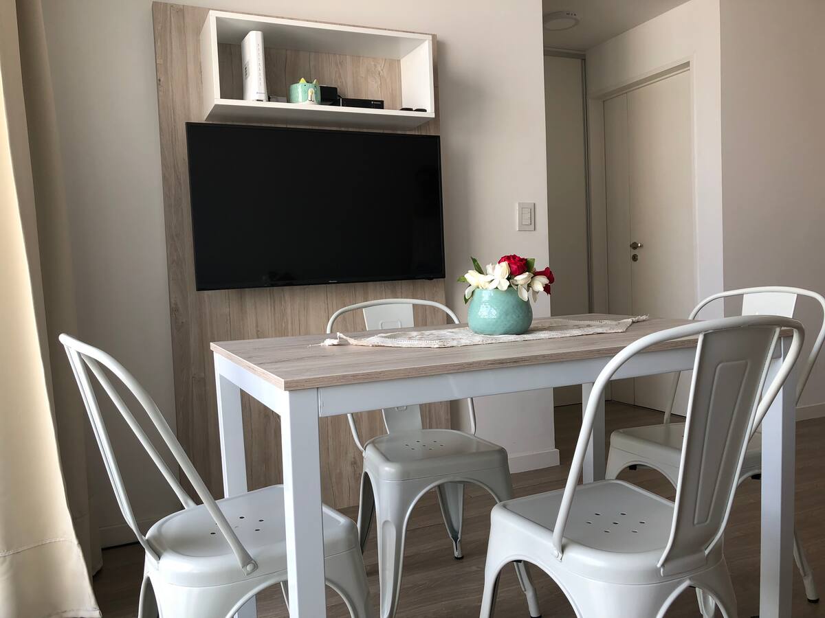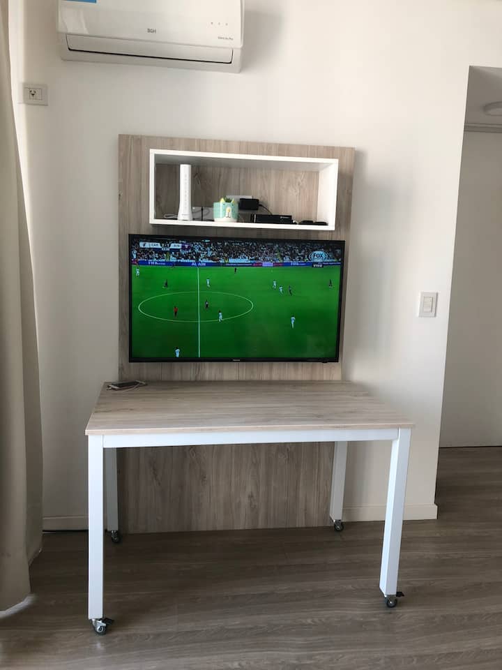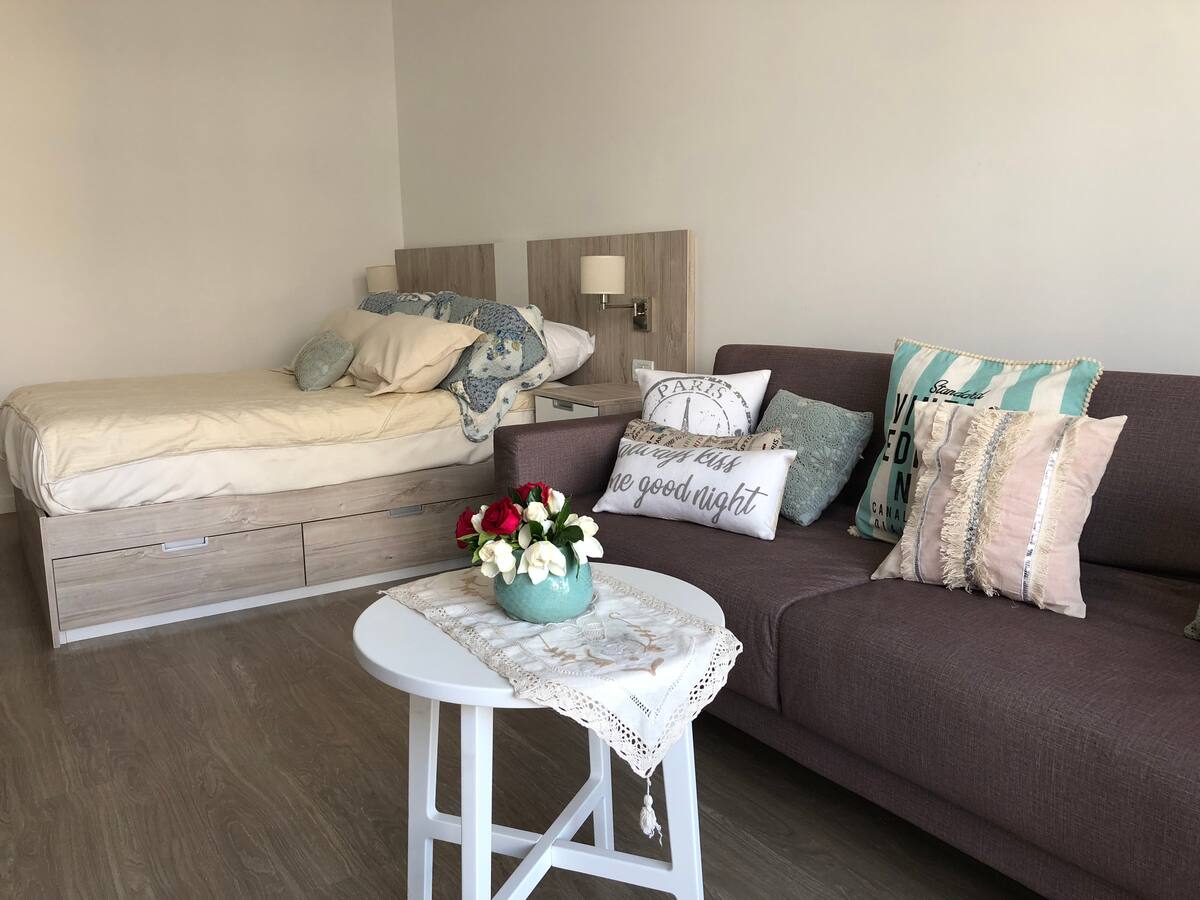 Departamento monoambiente con balcón, terraza y pileta en Villa Crespo. Totalmente equipado e incluye WiFi, servicio de TV y cocina con cocina eléctrica, tostadora. Cuenta con aire acondicionado frío/calor y cama doble con sillón cama. El edificio dispone de terraza con pileta y parrillas y un SUM; a 300 m de la estación Malabia (Subte Línea B).