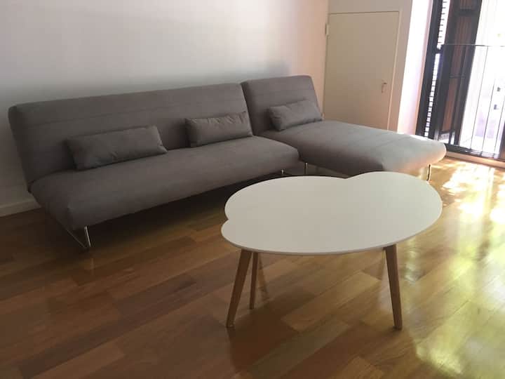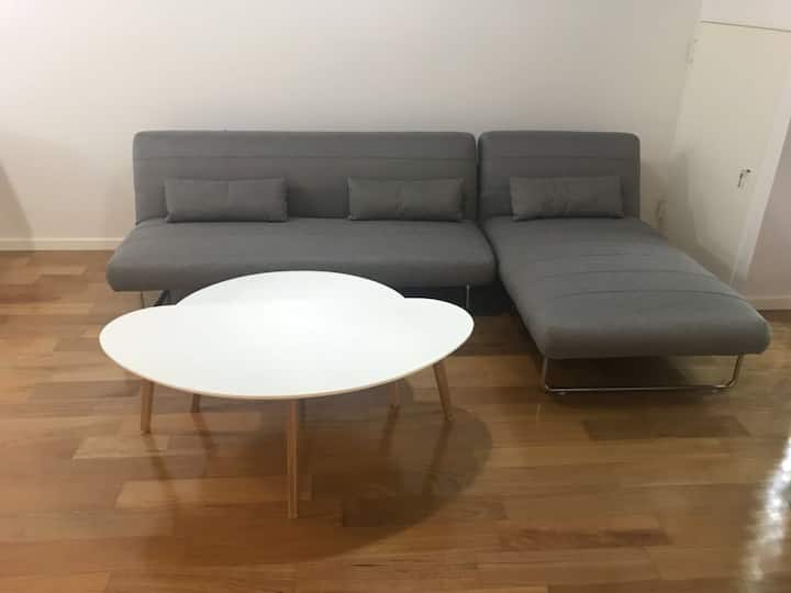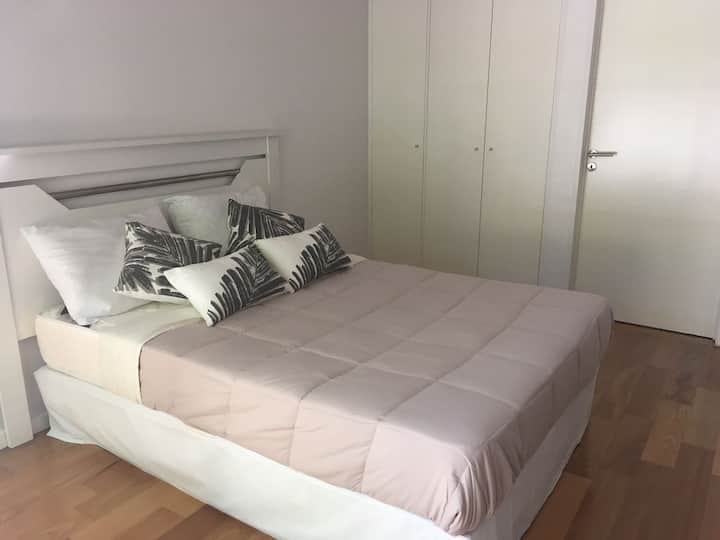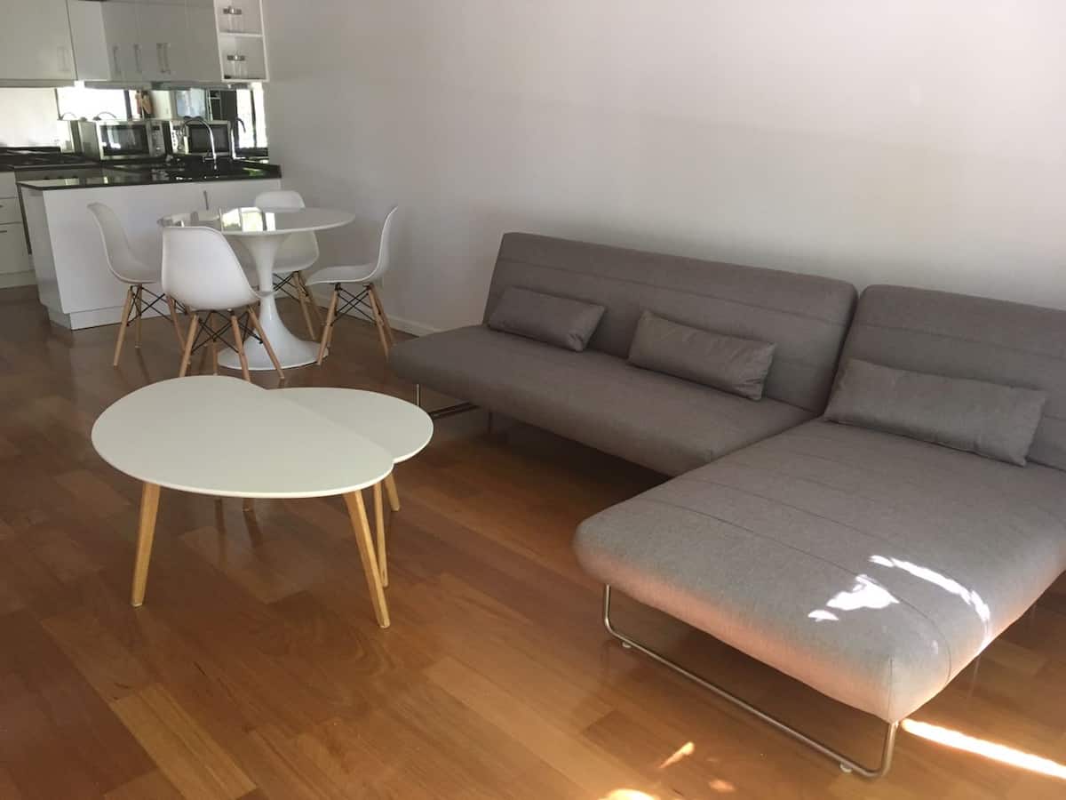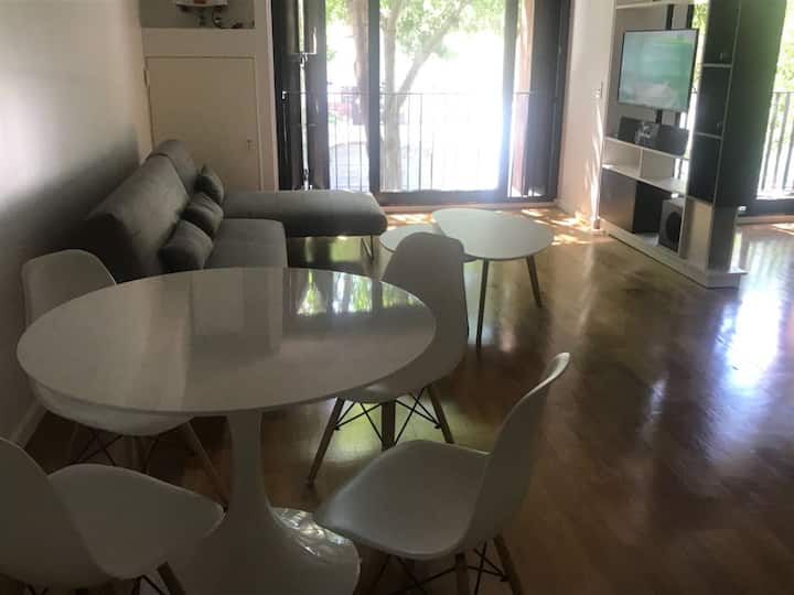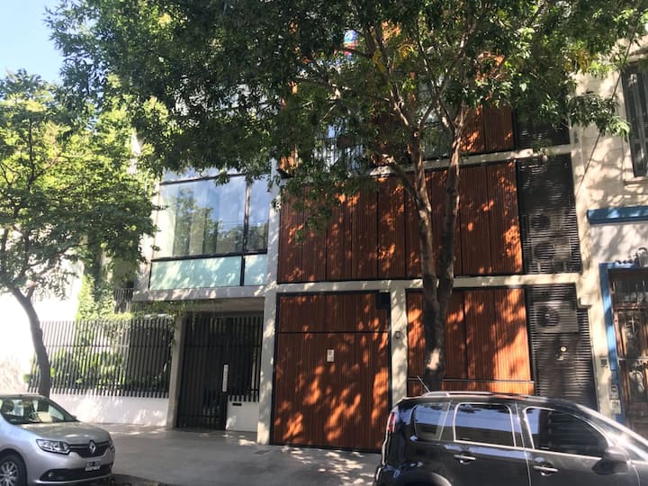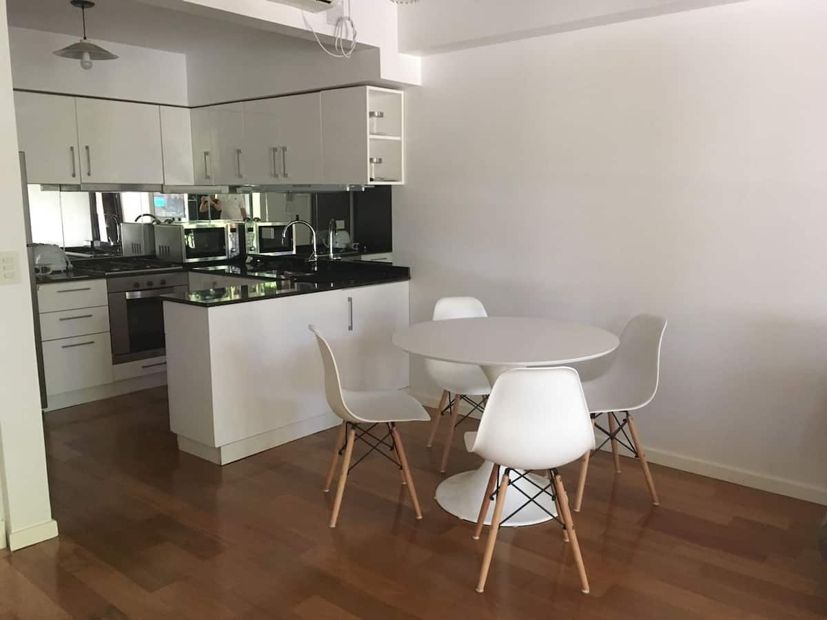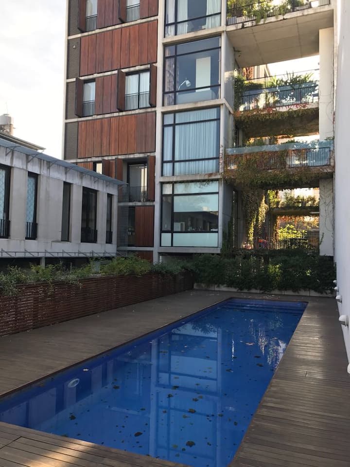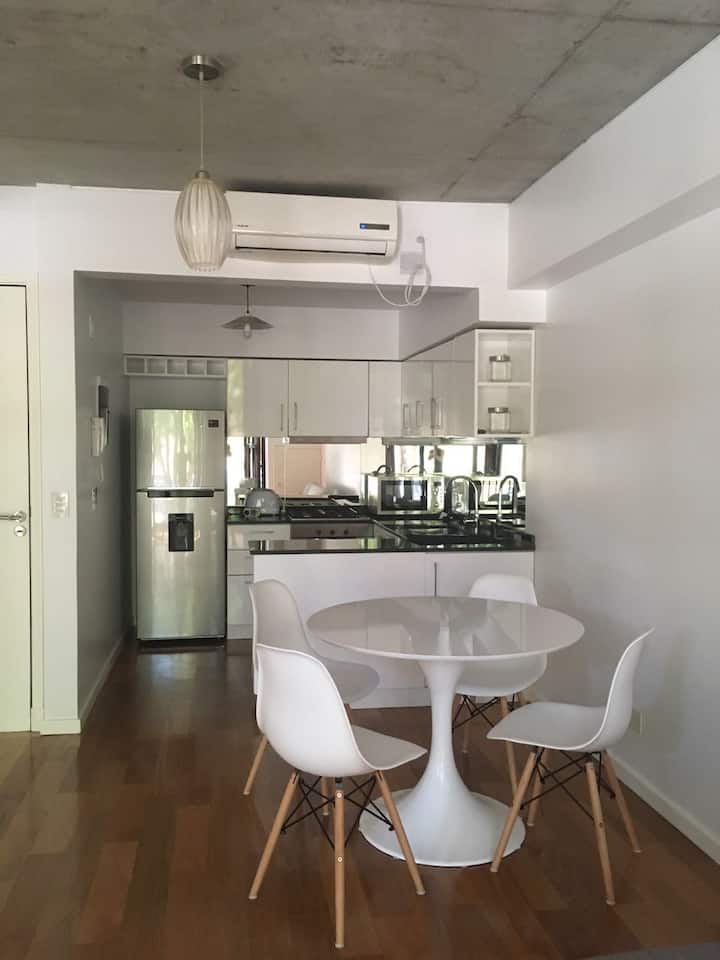 Departamento de 2 ambientes con balcón. Cuenta con 1 dormitorio con cama doble, living con sofá cama para 2 personas, cocina completa y 1 baño. Tiene 2 aires acondicionados y wifi. El edificio dispone de pileta, terraza con parrilla, SUM y laundry. Se ubica a 5 cuadras de Palermo Soho y a 5 cuadras de la línea B de Subte; cochera es opcional.
