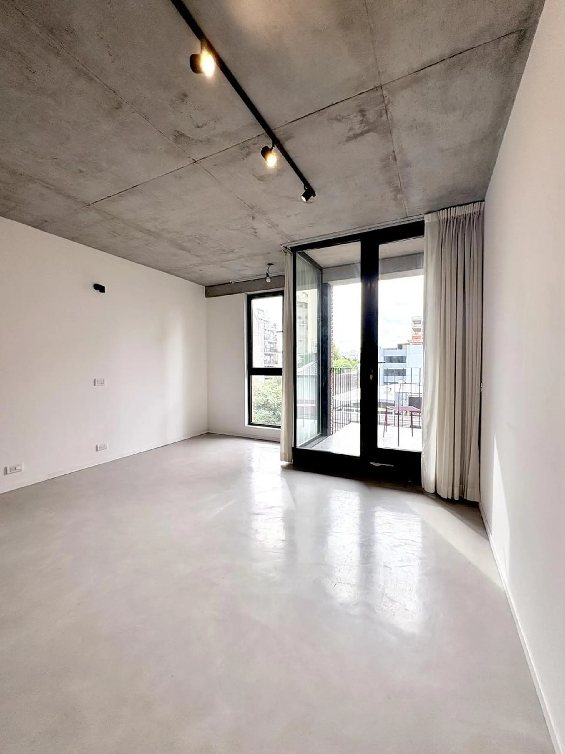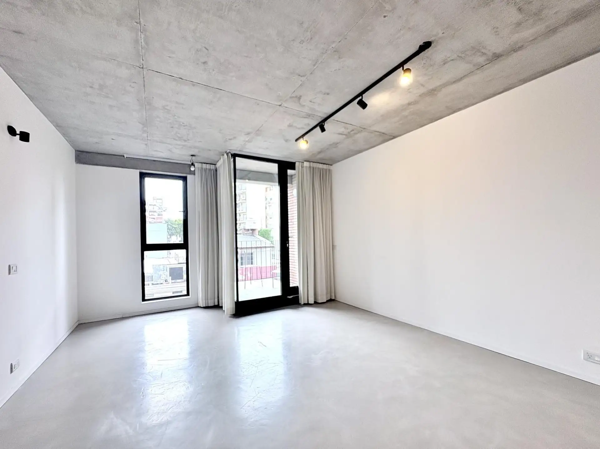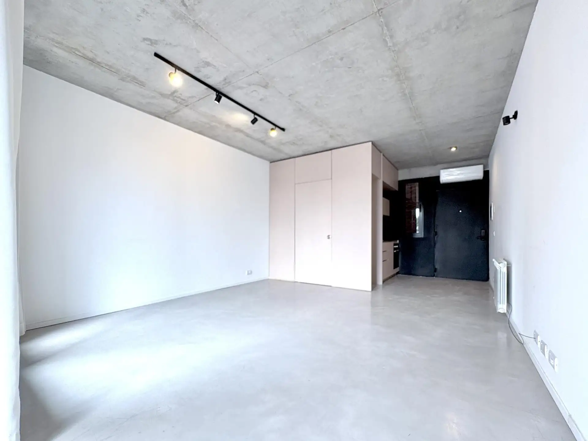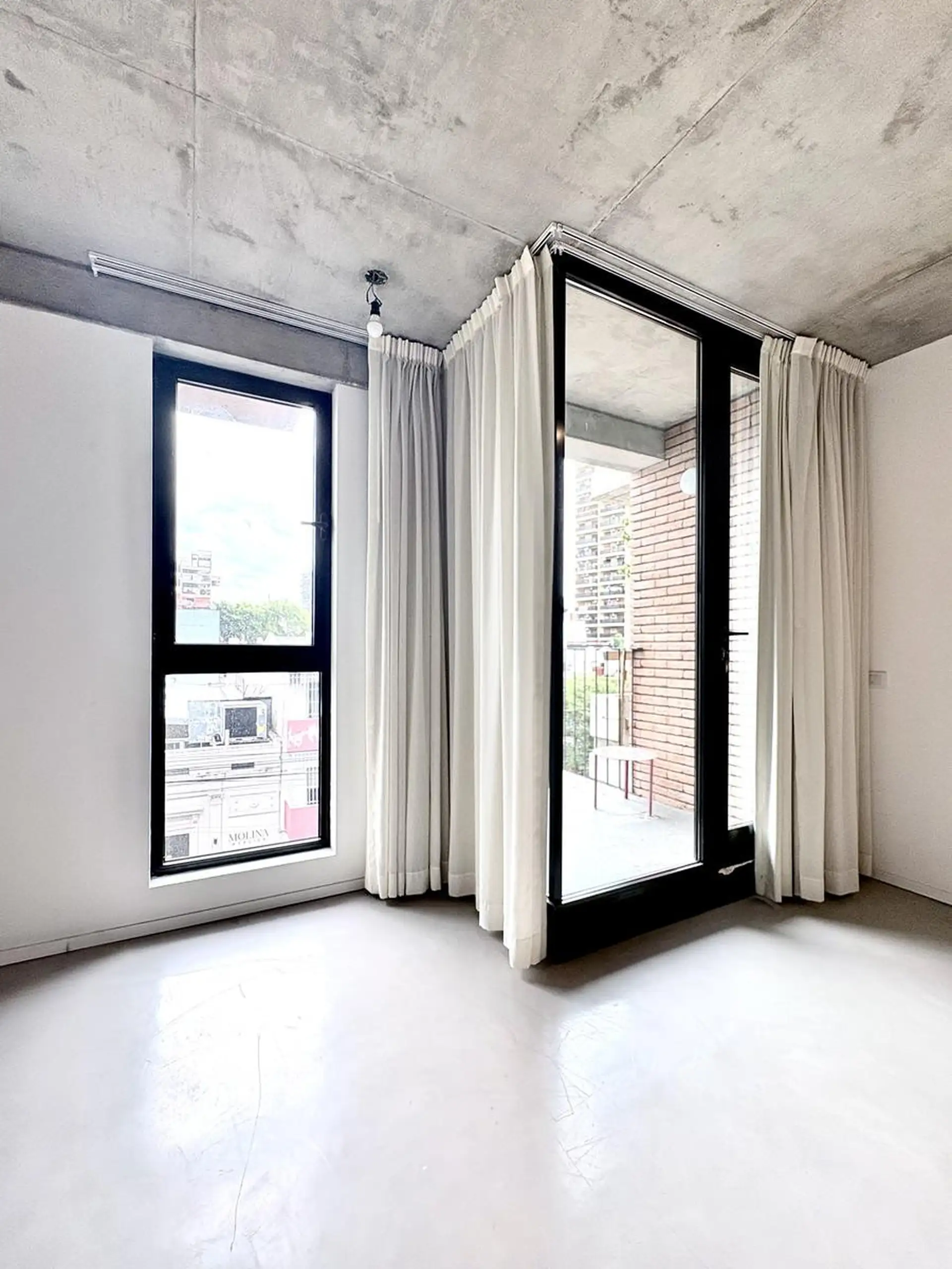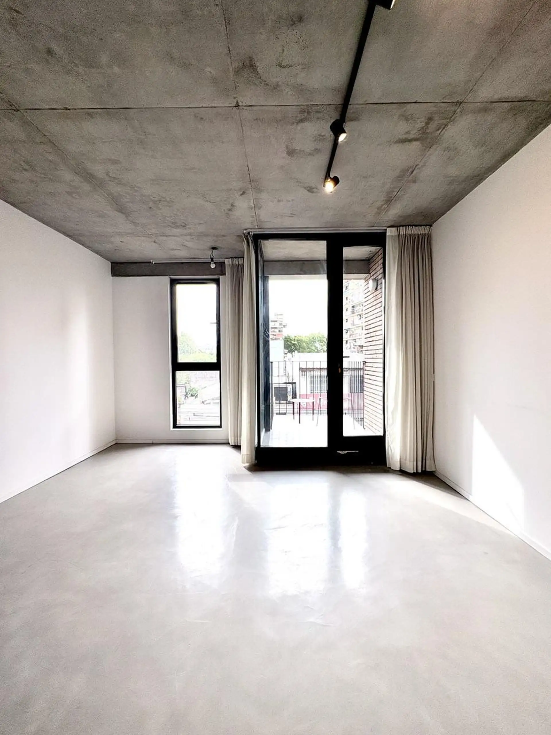 Departamento monoambiente de 1 ambiente al frente, en 3era planta, en Villa Crespo. Unidad con balcón, carpinterías de aluminio DVH, pisos de microcemento y techos de hormigón visto; baño completo con conexión para lavarropas, aire acondicionado y agua caliente central. Calefacción central por radiadores, ventilaciones cruzadas, cortinas y black out con simil gasa, y algunas luminarias. El edificio fue finalizado en diciembre de 2024 y cuenta con jardín y terraza general; el acceso es digital me