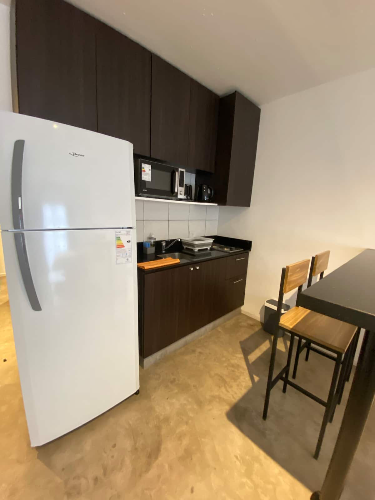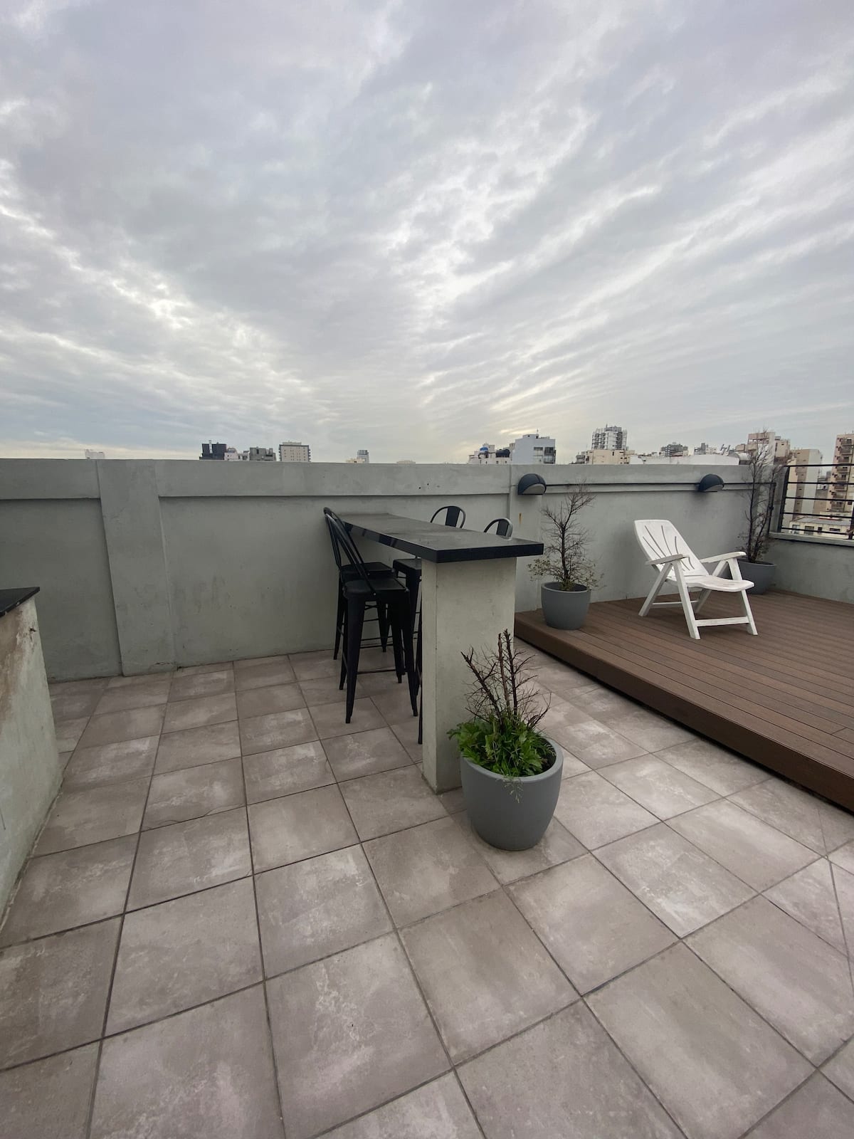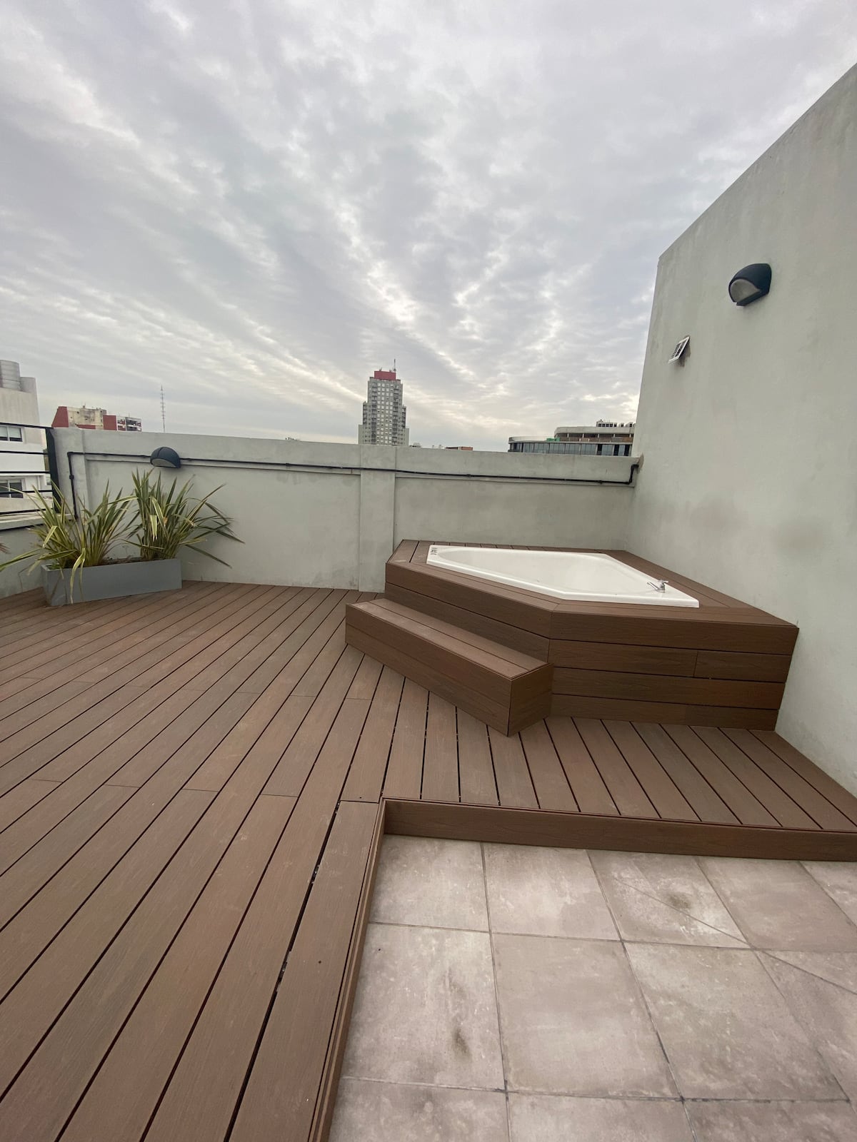 Monoambiente a estrenar en Villa Crespo, en edificio. Cuenta con termotanque eléctrico. Incluye pileta con jacuzzi, parrilla y lavadero; no hay agua caliente ilimitada.