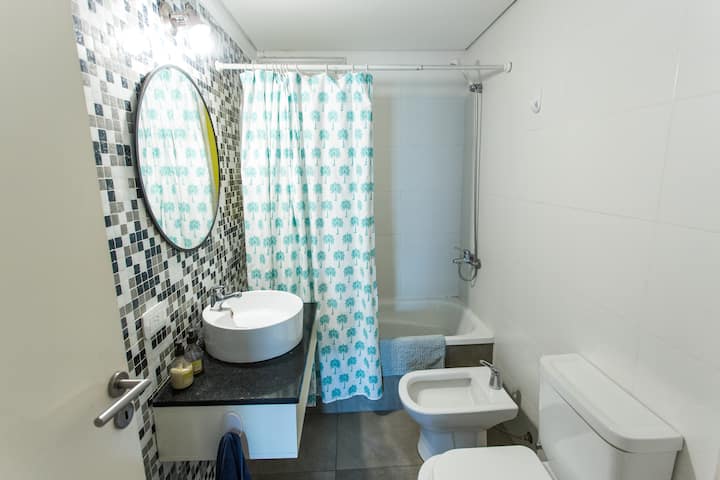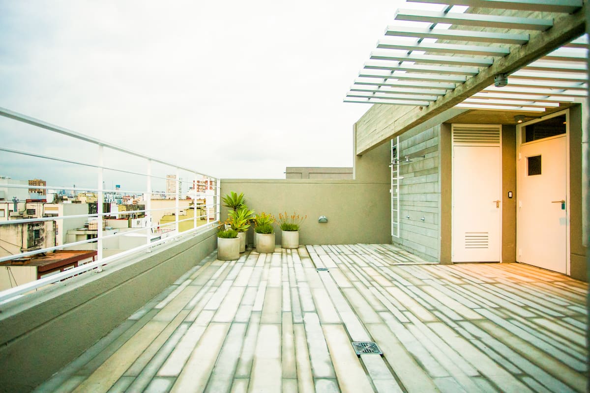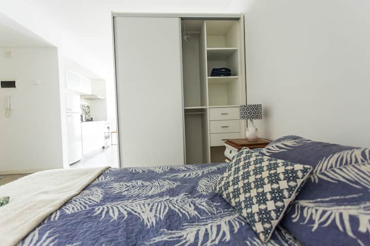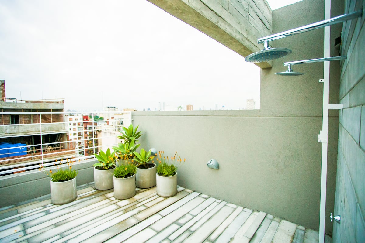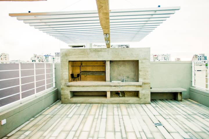 Departamento monoambiente de 43 m² en Villa Crespo, en un solo ambiente con placard, cocina integrada y baño completo con bañera. Incluye aire acondicionado frío/calor, TV compatible con Chromecast y Wi-Fi de alta velocidad. Cuenta con balcón y heladera con freezer, microondas, cocina, cafetera, tostadora y pava eléctrica, además de vajilla y ollas. El edificio tiene ascensor, laundry y terraza con parrilla.
