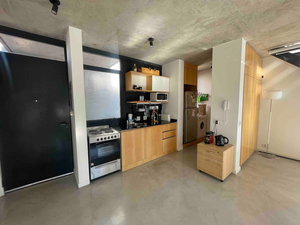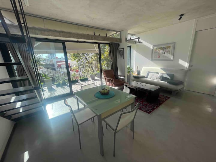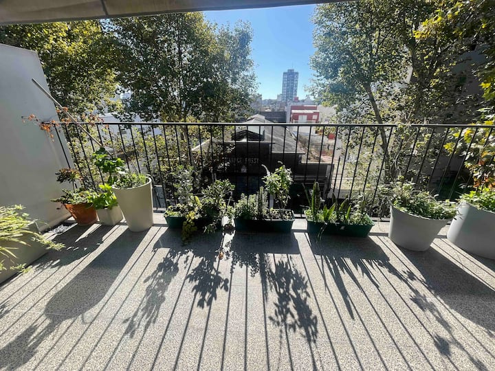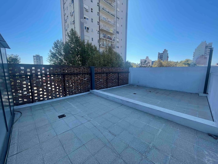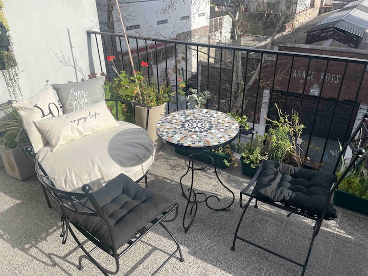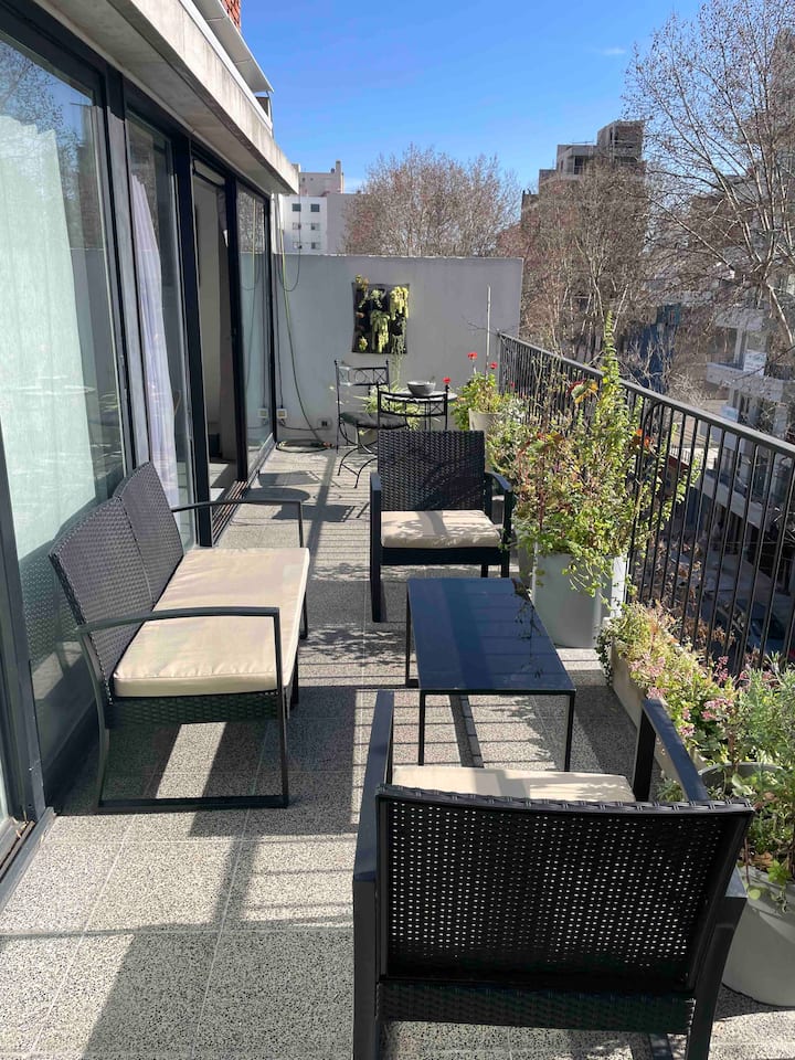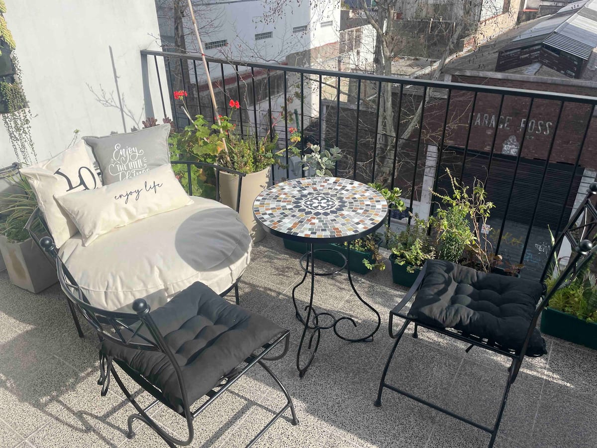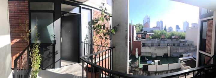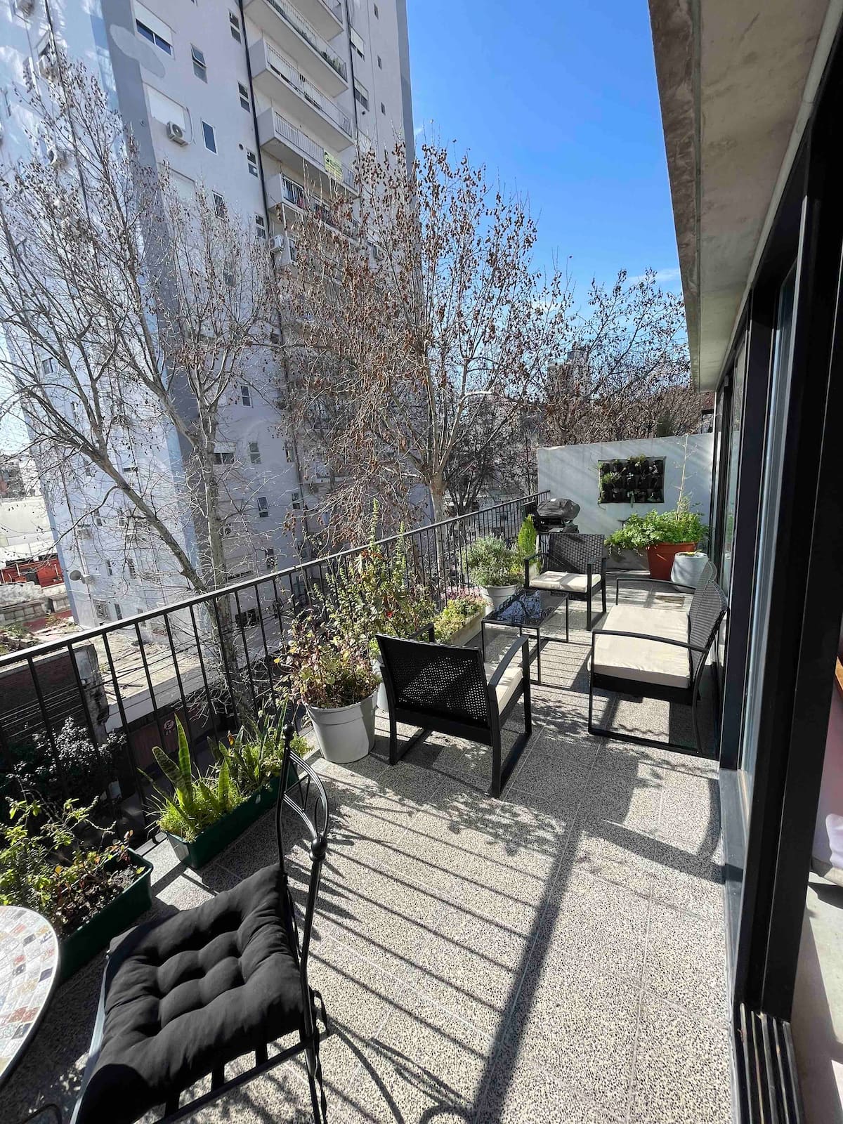Penthouse en Villa Crespo con 1 dormitorio. Incluye balcón de 20 m² y terraza privada en la azotea de 40 m². Tiene sistema de insonorización y configuración de home office con dos monitores para computadora y parlantes de estudio. Cuenta con luces Philips HUE con conexión WiFi, calefacción y aire acondicionado por inversor (en ambos ambientes), bañera con jets y parrilla a gas. La limpieza se incluye 1 vez por semana, los lunes a las 9:30 a.m.
