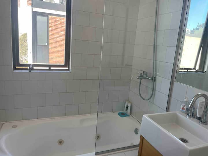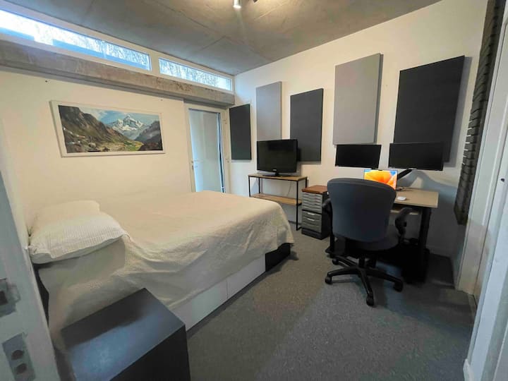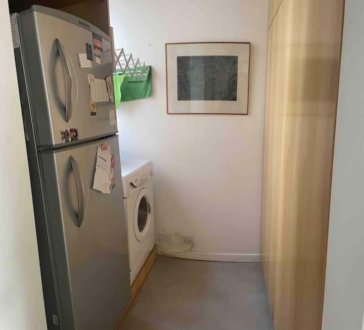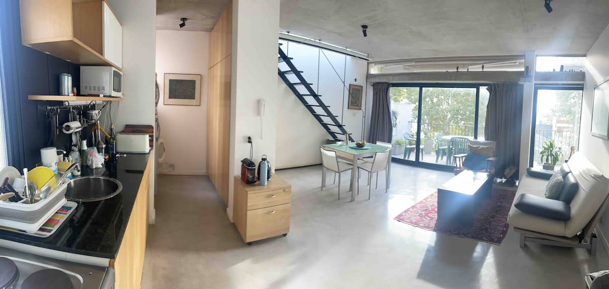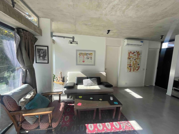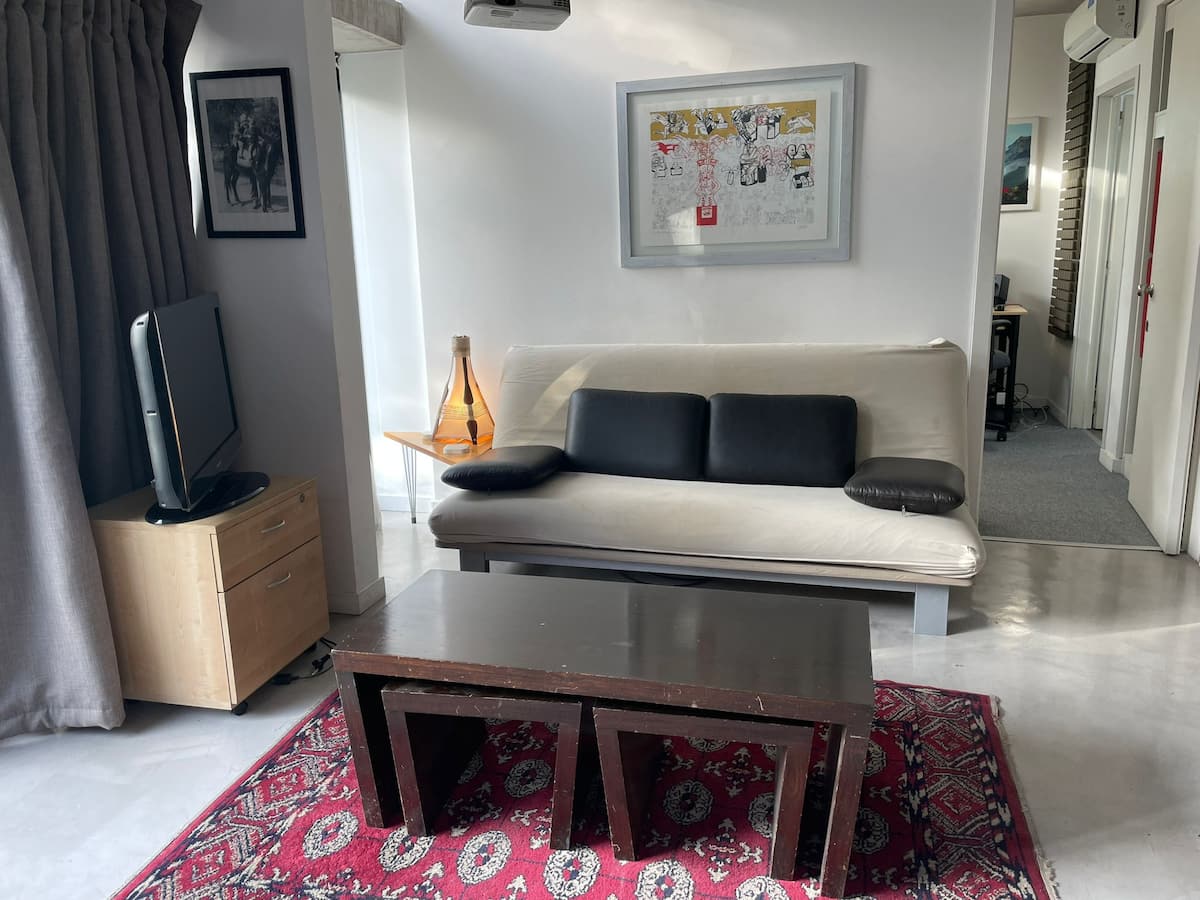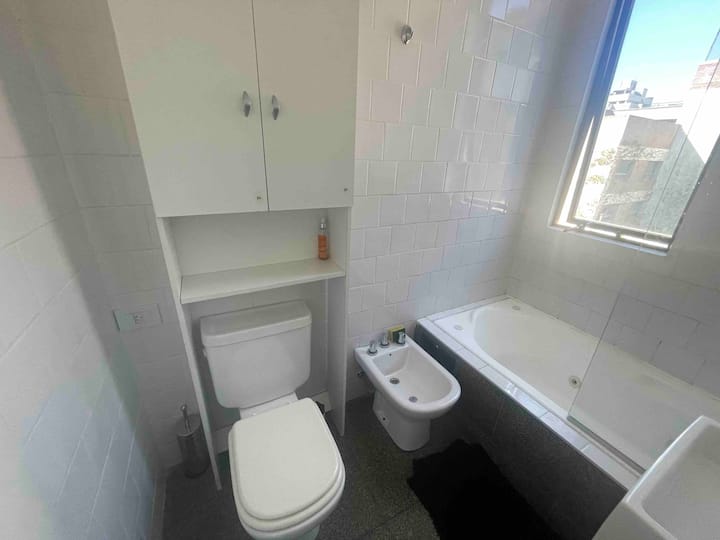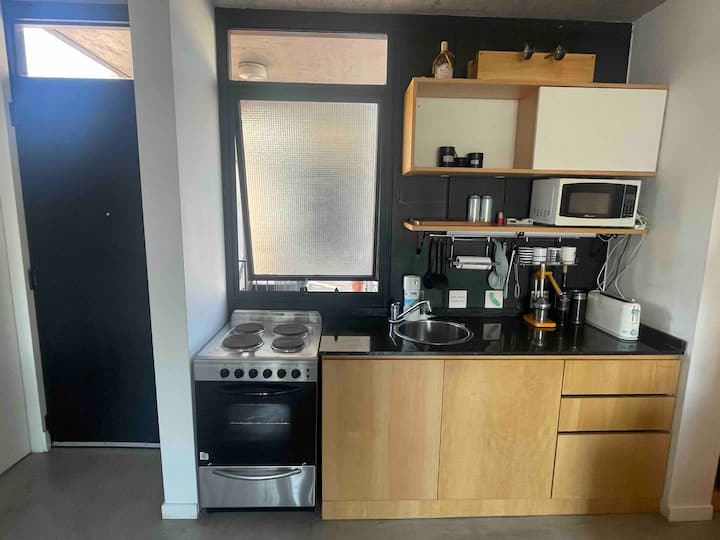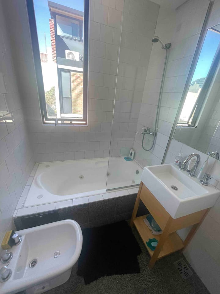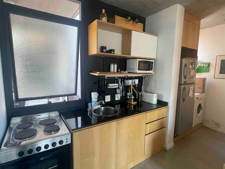 Penthouse en Villa Crespo con 1 dormitorio. Incluye balcón de 20 m² y terraza privada en la azotea de 40 m². Tiene sistema de insonorización y configuración de home office con dos monitores para computadora y parlantes de estudio. Cuenta con luces Philips HUE con conexión WiFi, calefacción y aire acondicionado por inversor (en ambos ambientes), bañera con jets y parrilla a gas. La limpieza se incluye 1 vez por semana, los lunes a las 9:30 a.m.