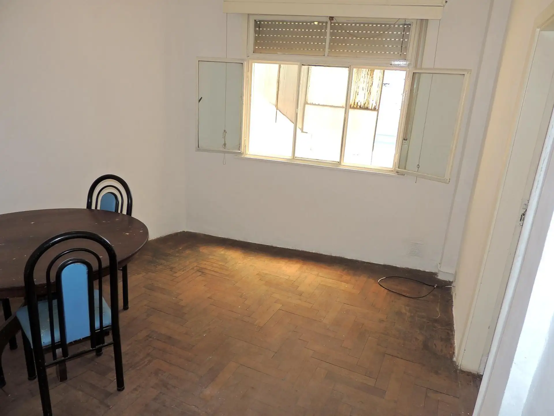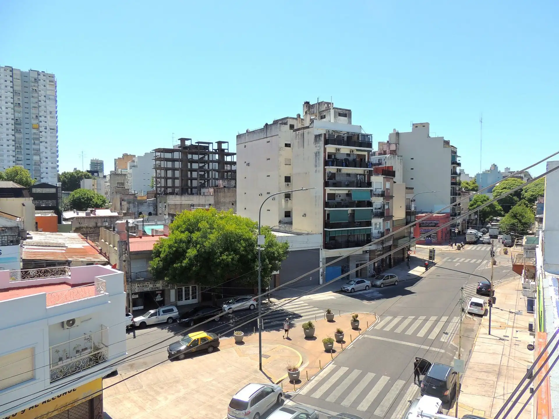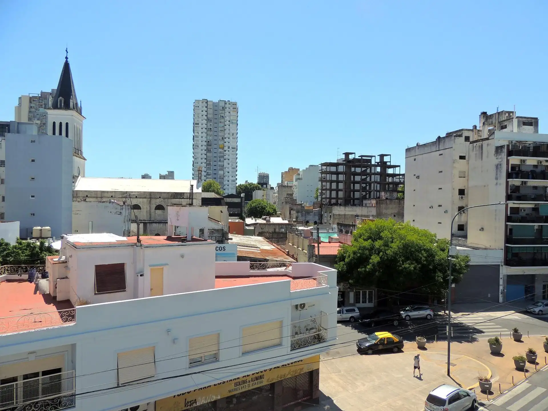 Departamento de 2 ambientes al frente en Villa Crespo, sobre Av. Warnes. Se encuentra en un tercer piso por escalera e incluye living-comedor de 4.10 x 3.80 con estufa a gas y ventana al balcón, y habitación de 4.60 x 3.90 con dos placares y aire acondicionado frío-calor, con ventana y acceso al balcón. Cocina independiente de 4.00 x 1.60 con artefacto a gas y calefón con bomba presurizadora, baño con ducha de pie (sin bidet). Tiene balcón al frente de 1.40 x 6.60 con sector techado de 2 x 2 y t