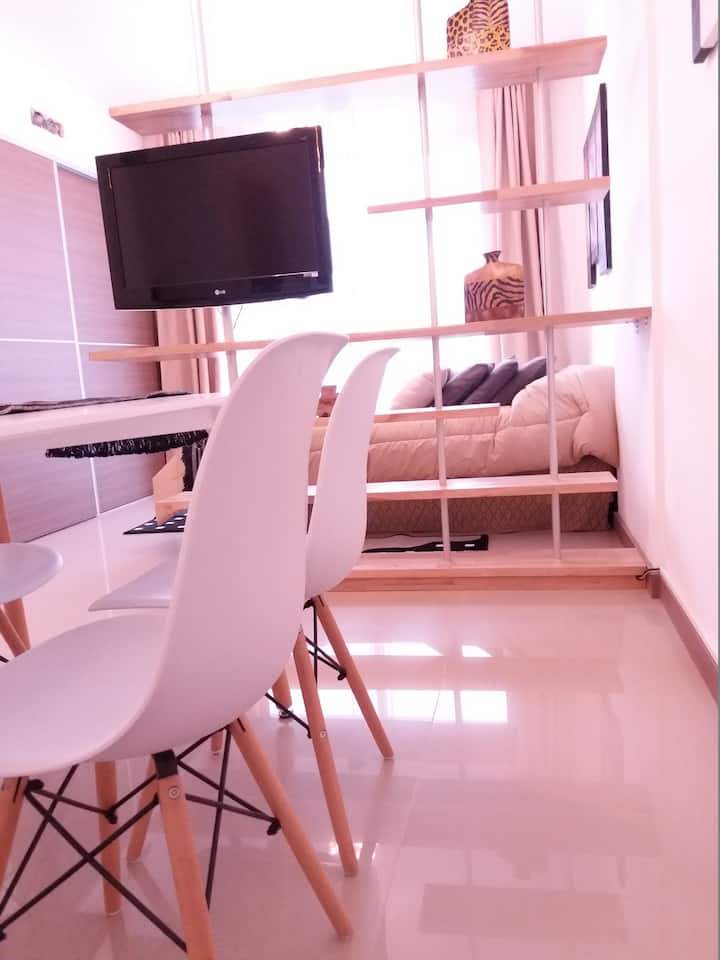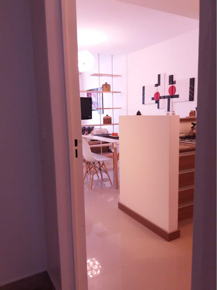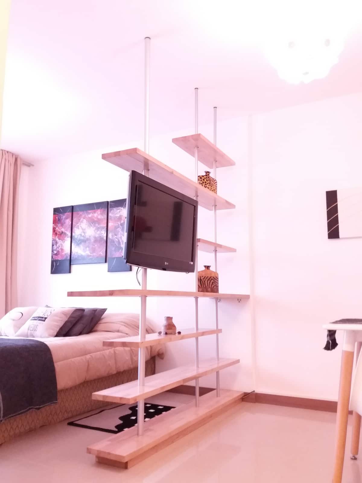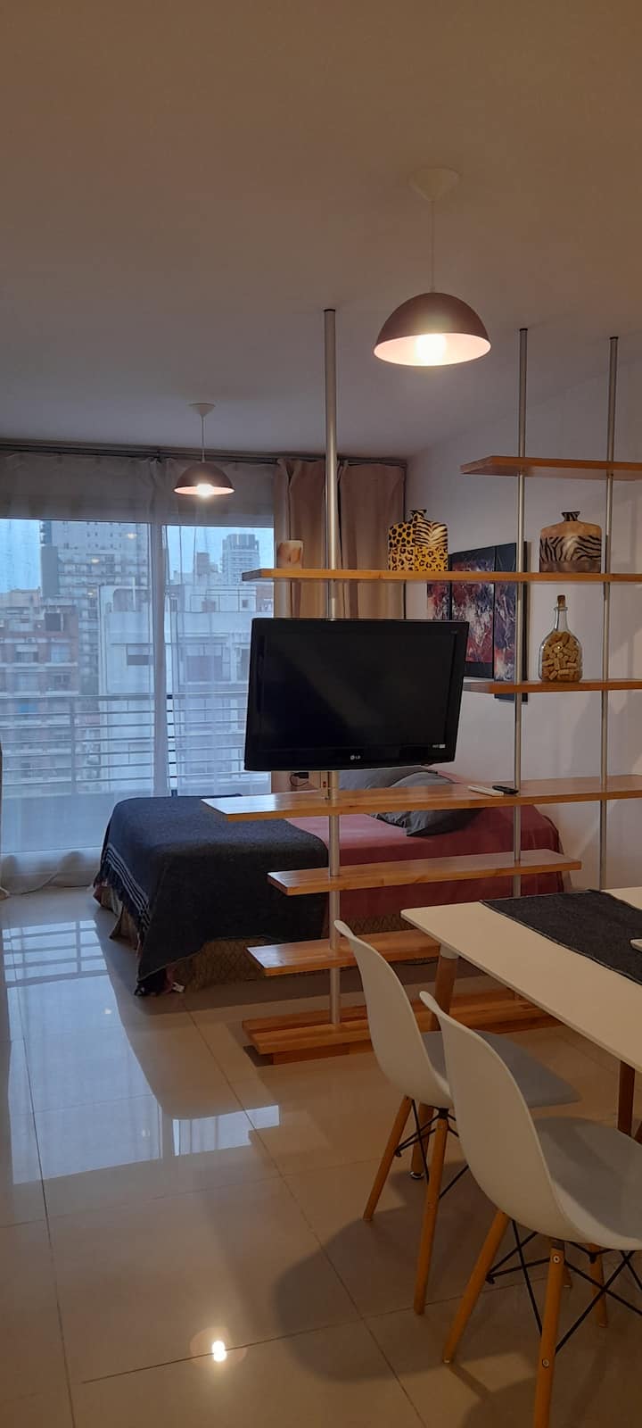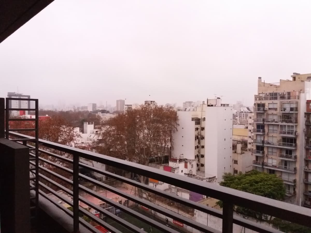 Departamento monoambiente de 2019 en Villa Crespo, en el 8° piso, al frente, con vista panorámica. Cuenta con balcón de uso privado con sector de lavadero y un área de descanso con ventana al balcón. Dispone de climatización frío/calor y equipamiento con cocina y comedor, además de escritorio. El edificio tiene ascensor e incluye terraza y parrilla de uso común.