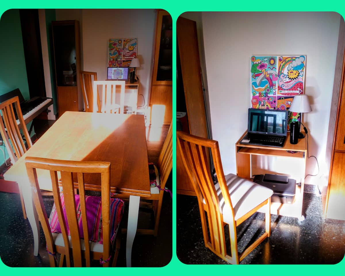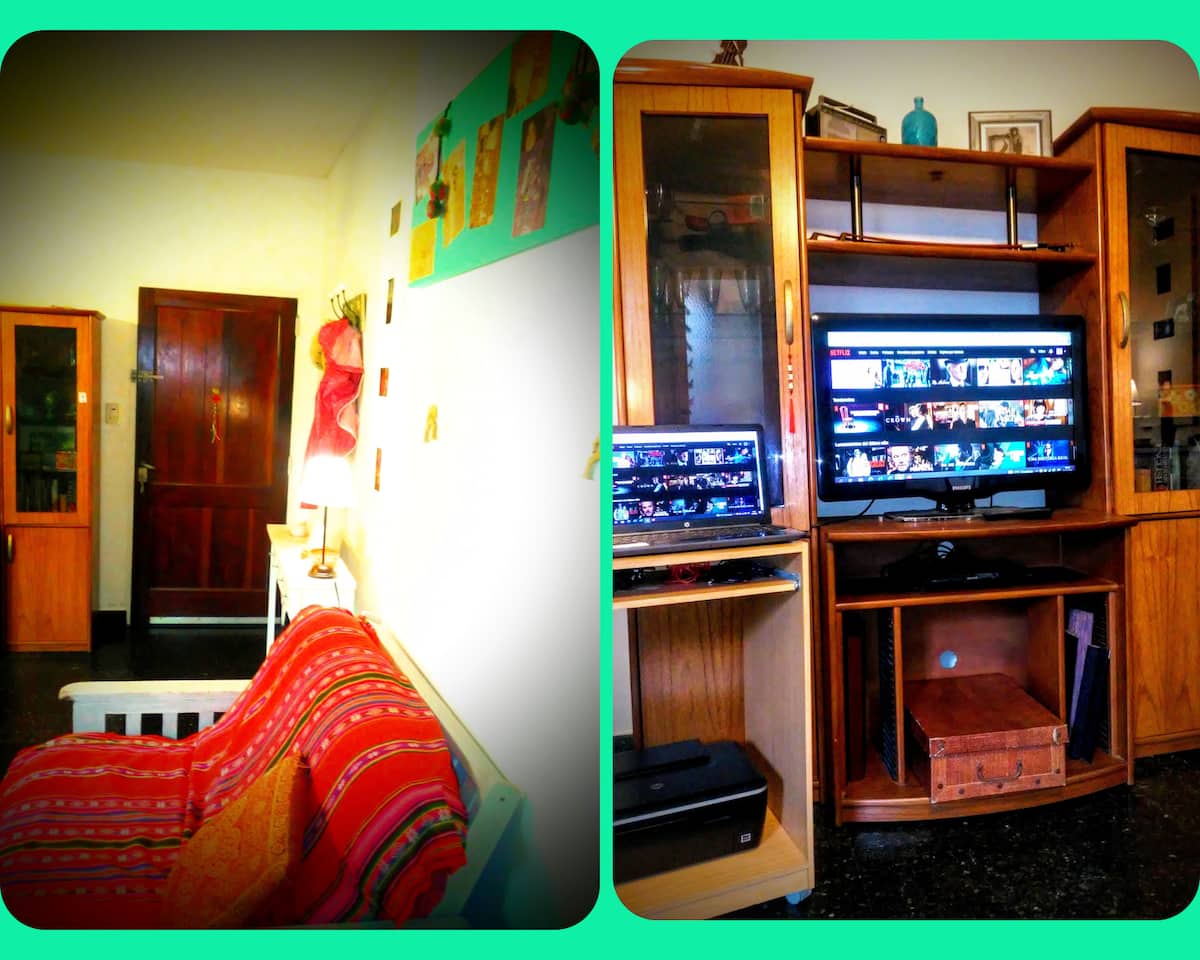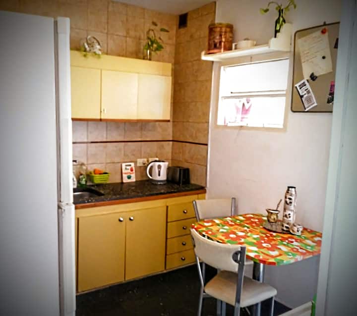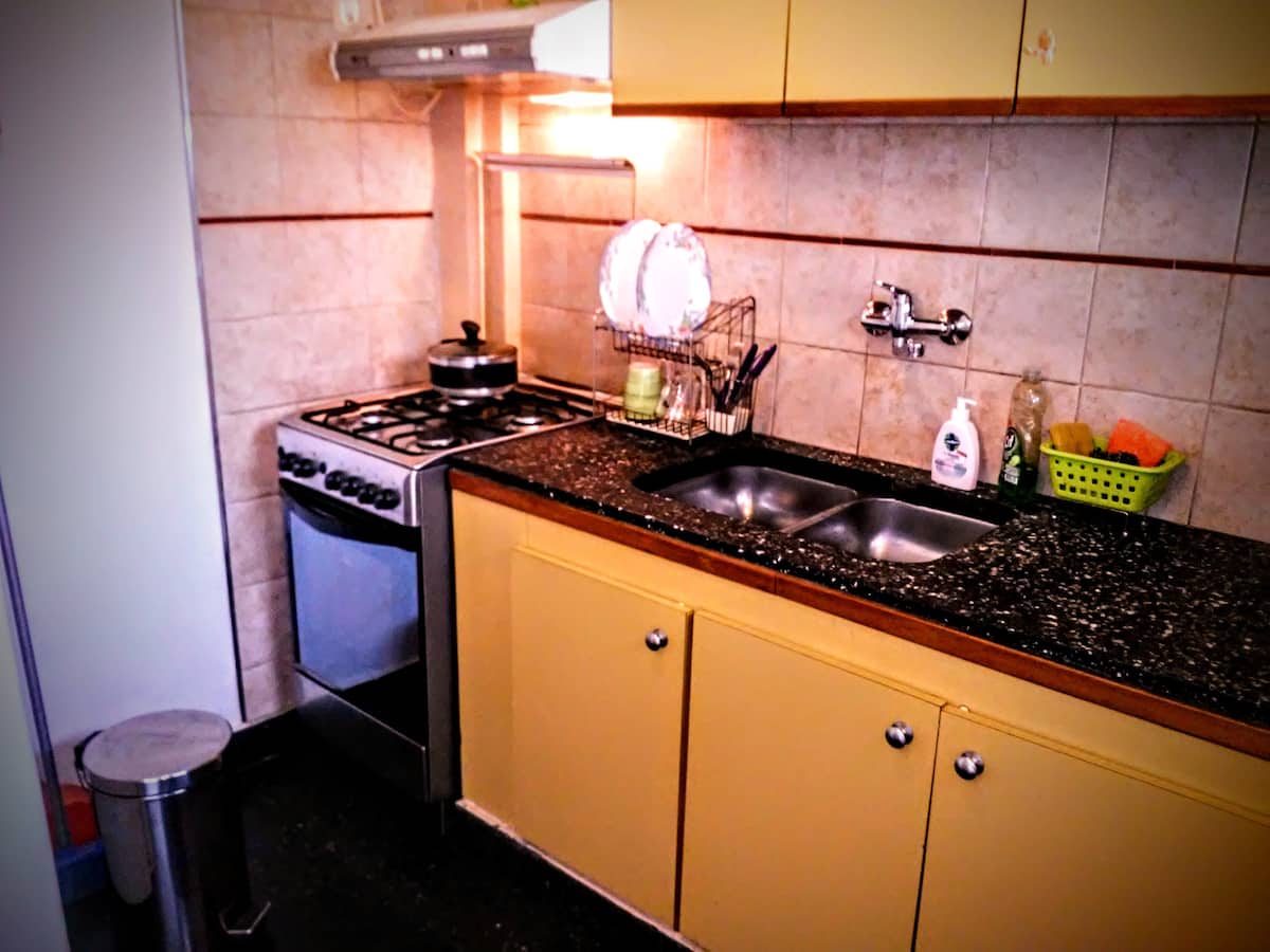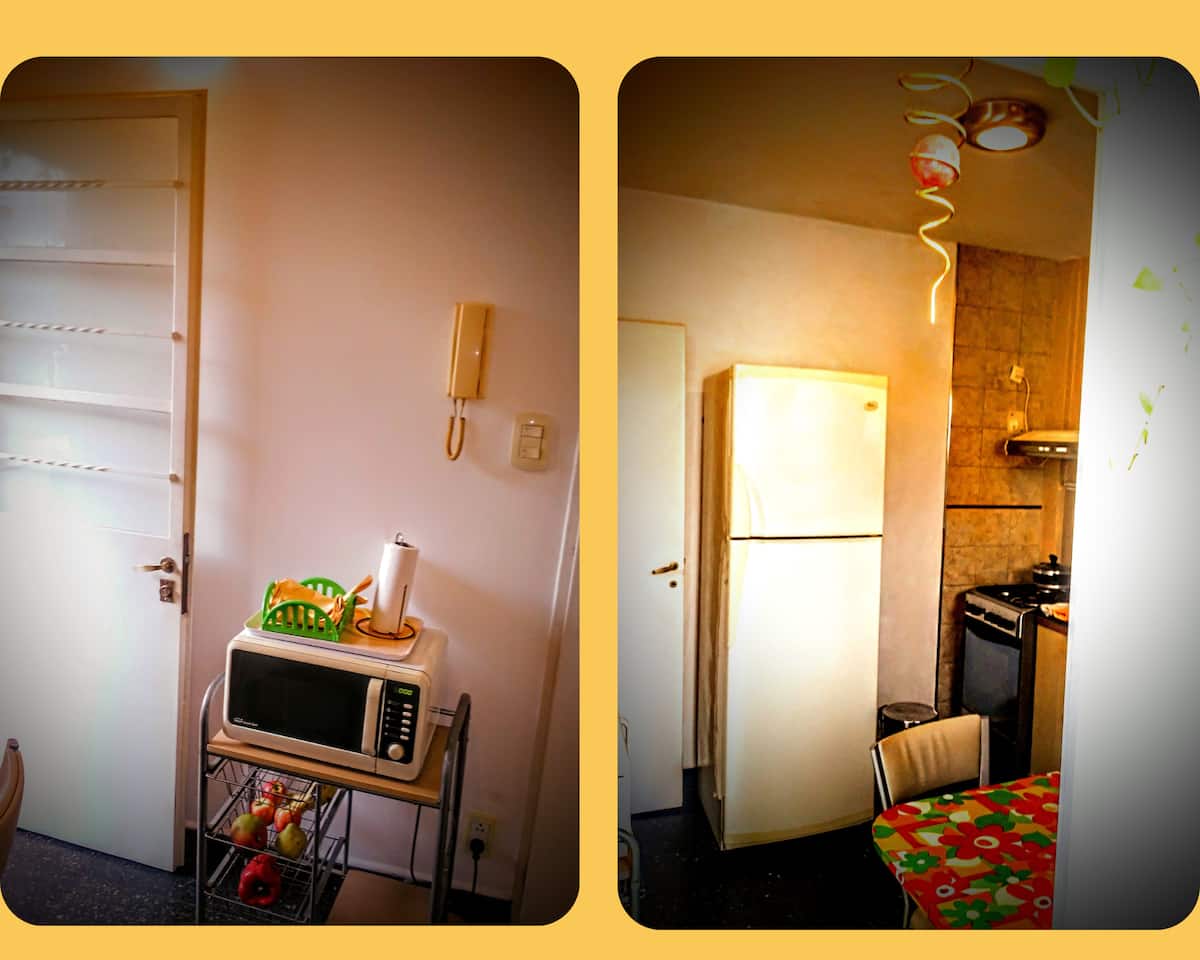 PH de 2 ambientes de 50 m² con cocina y baño separados. Incluye dormitorio con cama doble, y cama tipo futón en el living. Cuenta con aire acondicionado y ventilador, cocina completa con heladera con freezer, horno y cocina convencional, microondas, pava eléctrica y tostadora, además de equipamiento de vajilla y utensilios. El baño tiene ducha amplia y espacio de guardado. El alquiler es por contrato para estadías extendidas.