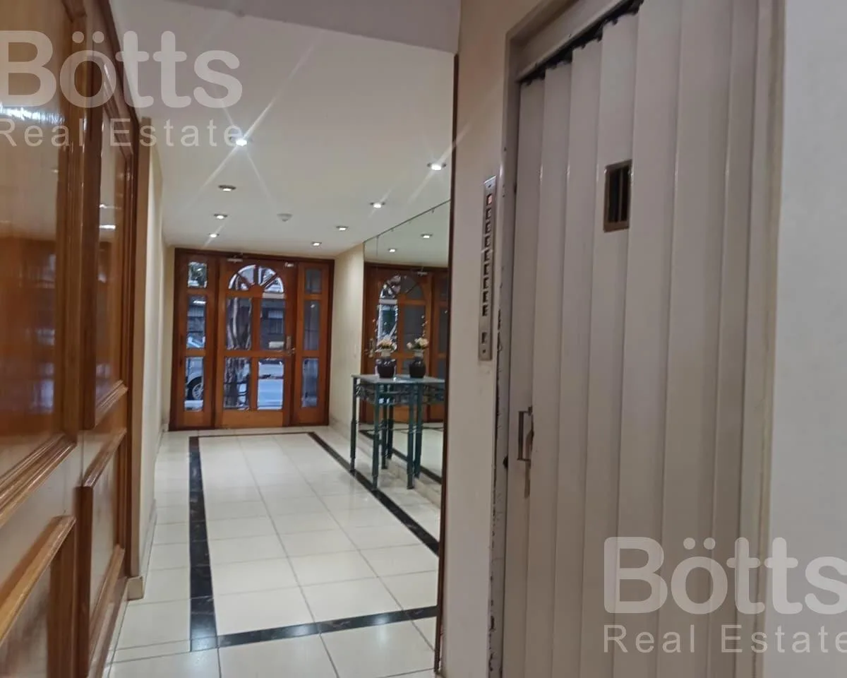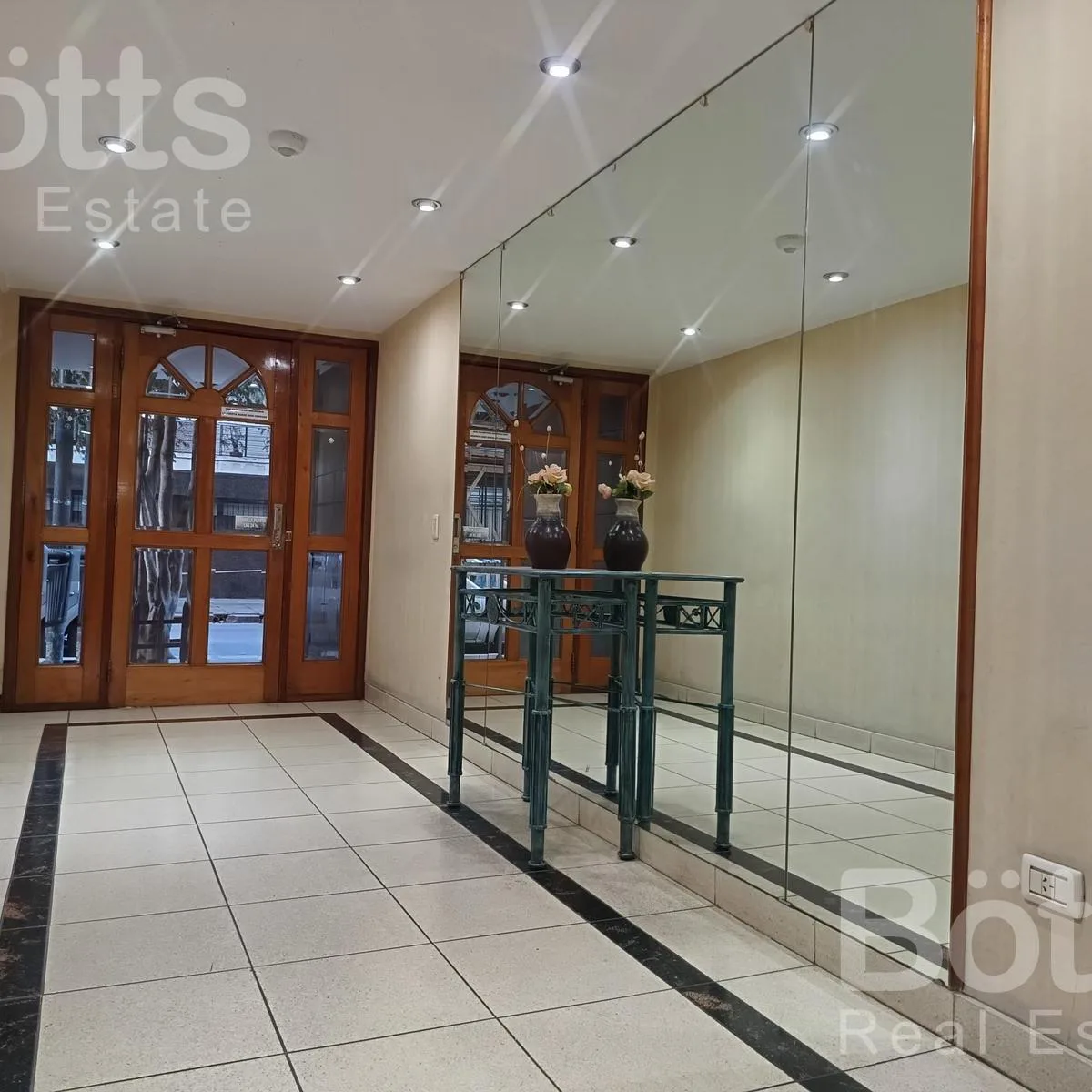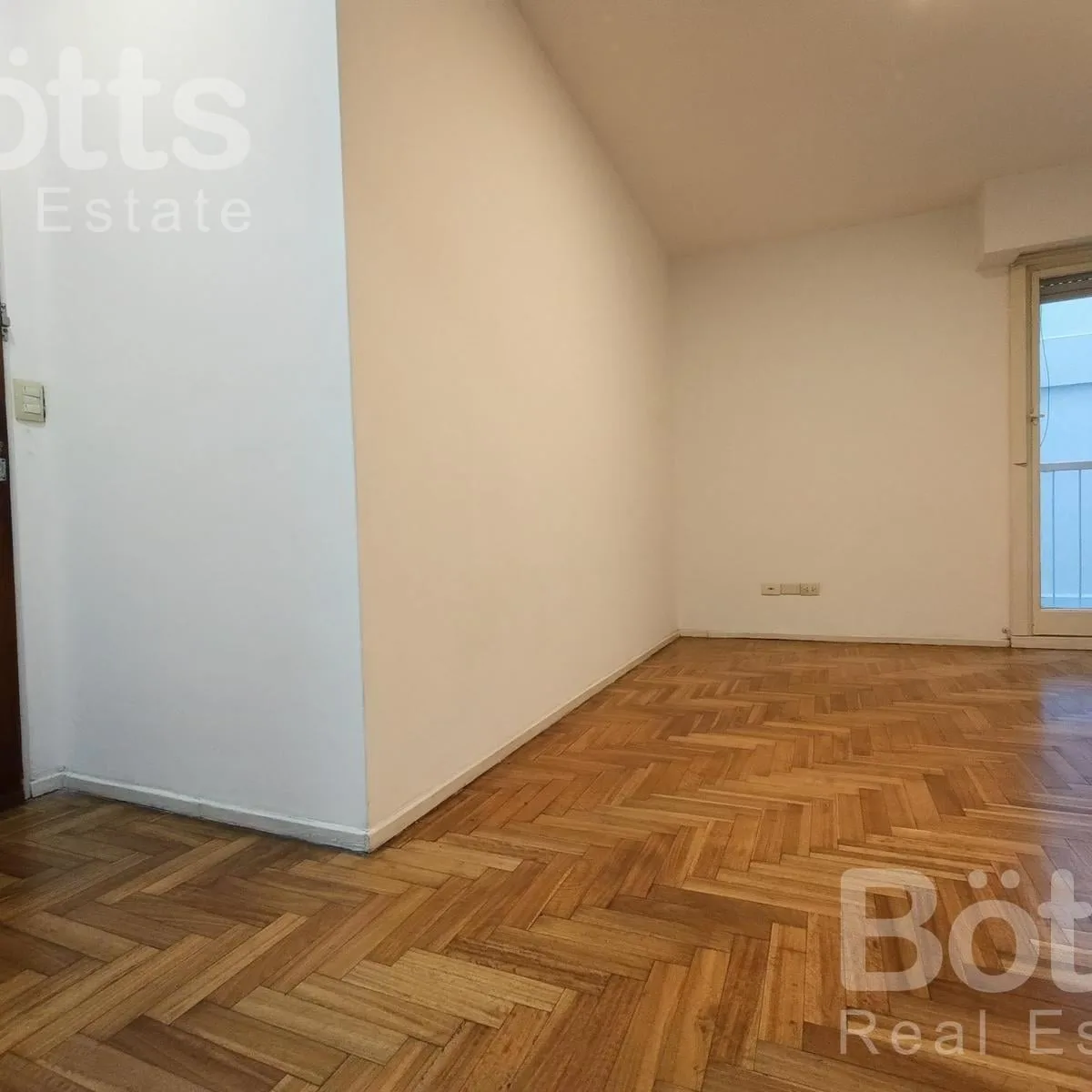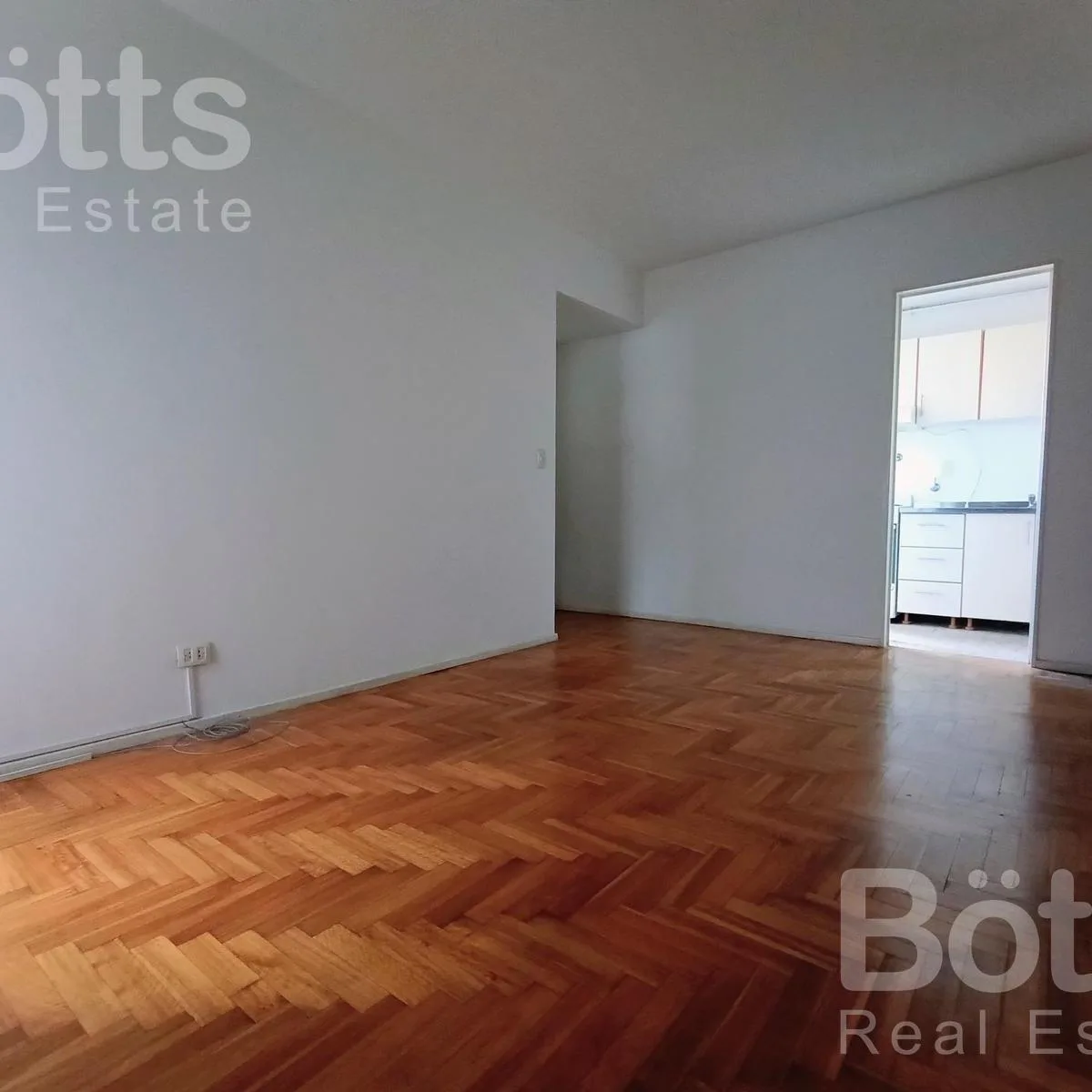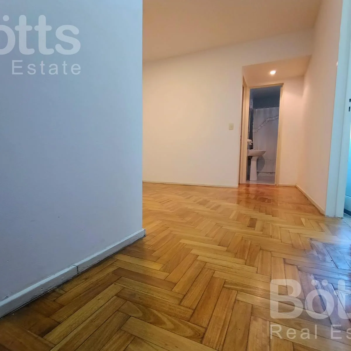 Departamento de 2 ambientes en alquiler en un 5° piso, en edificio con 3 unidades por piso. La unidad tiene pisos de parquet, living, cocina independiente equipada con muebles completos, cocina a gas con horno, lavadero separado semicubierto con conexión para lavarropas y calefón con tiro balanceado. El dormitorio cuenta con placard empotrado de piso a techo y el baño es completo con bañera.