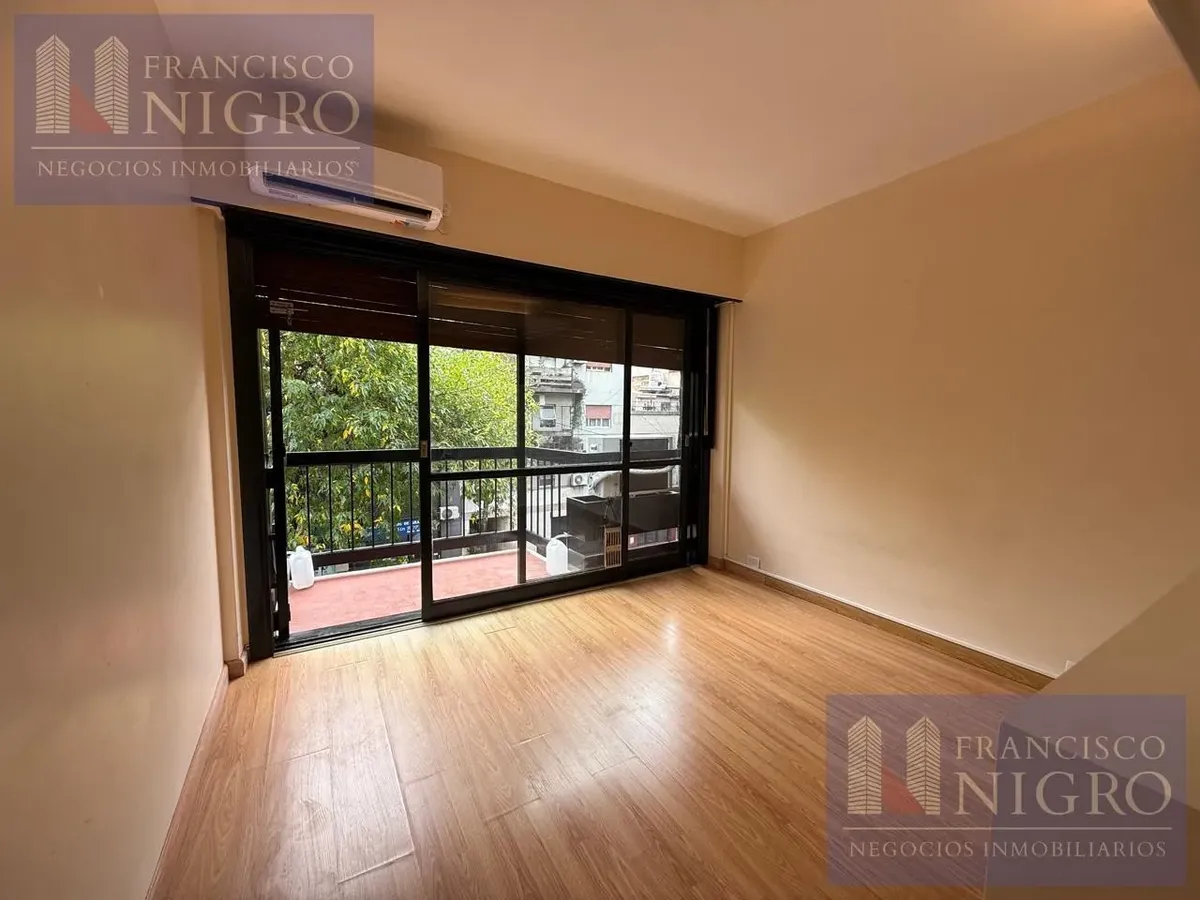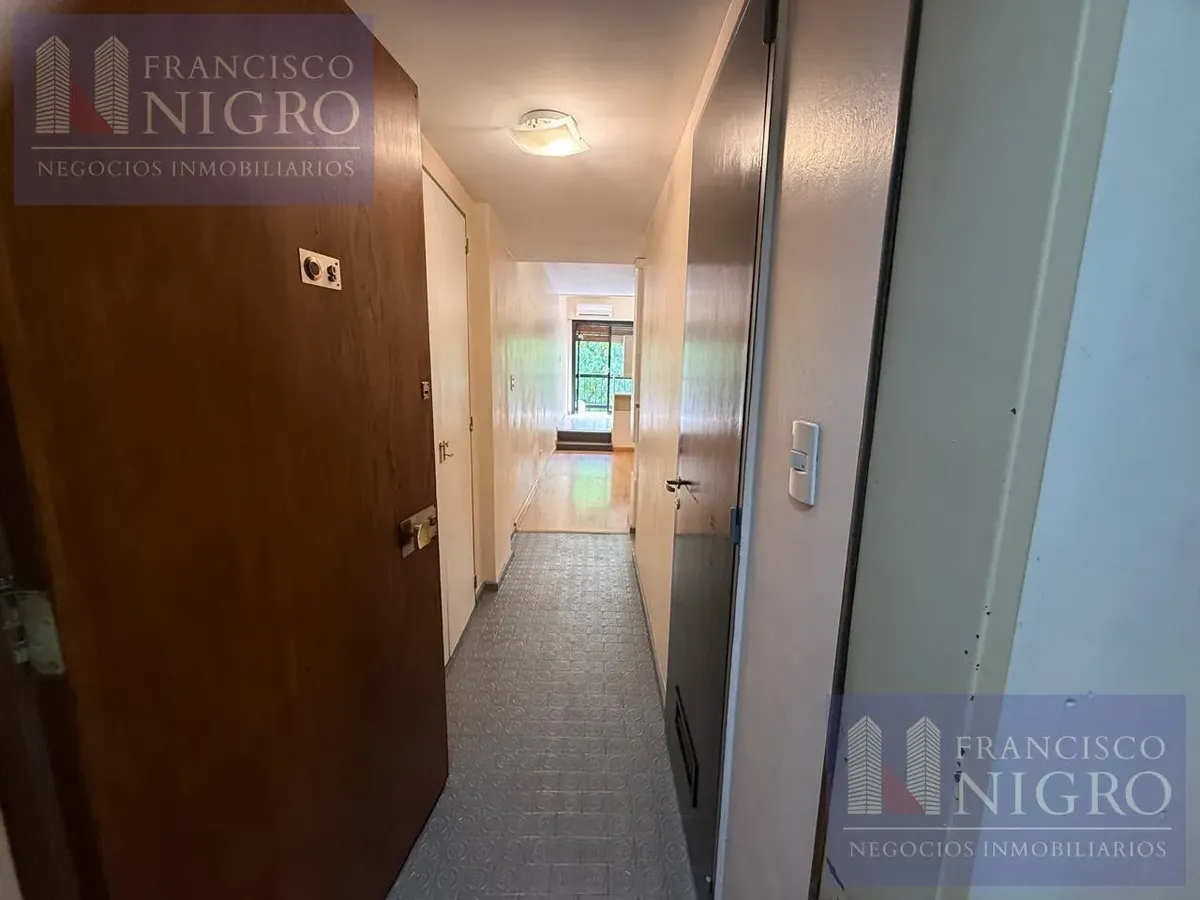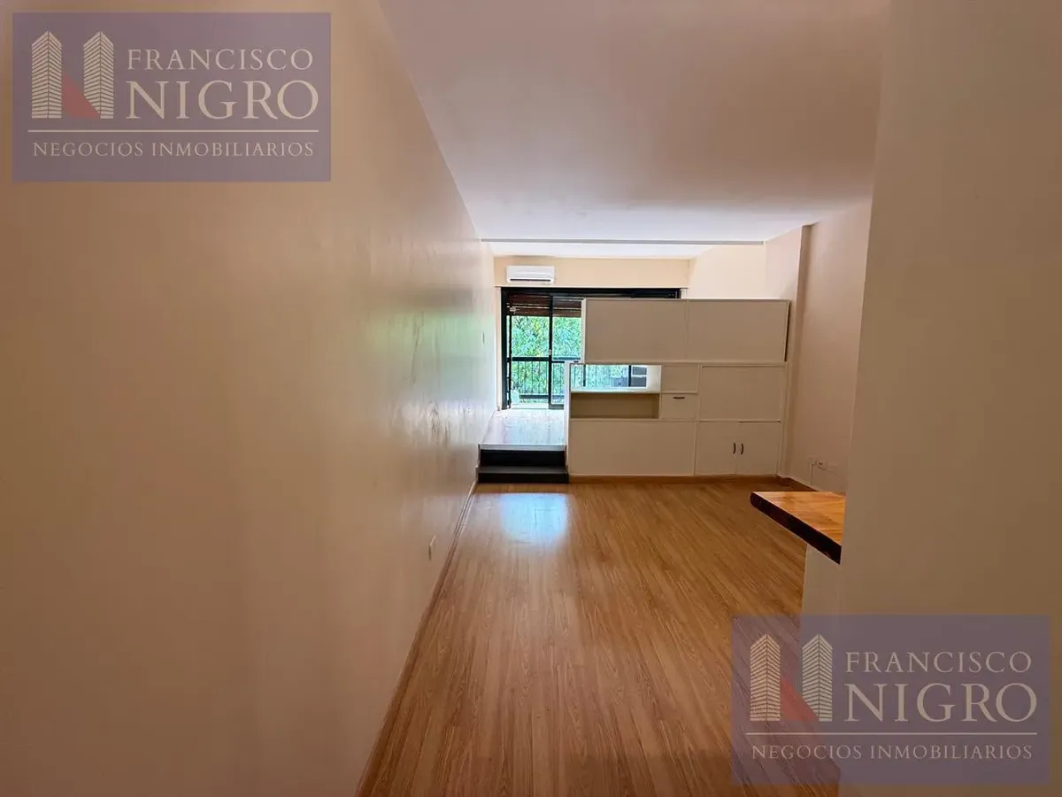 Departamento de 2 ambientes con dormitorio de 2,77m x 3,28m con piso flotante y salida a balcón de 1,34m x 1,89m. Cuenta con hall de entrada de 1,00m x 3,61m y sector living de 3,30m x 3,70m, baño completo de 2,00m x 1,76m y cocina de 2,42m x 1,27m con agua caliente por termotanque eléctrico y barra desayunadora. Expensas: $115.000. Requiere contrato a 2 años con actualización trimestral por IPC, mes de adelanto más depósito en billete dólar estadounidense, ingresos comprobables y garantía con s