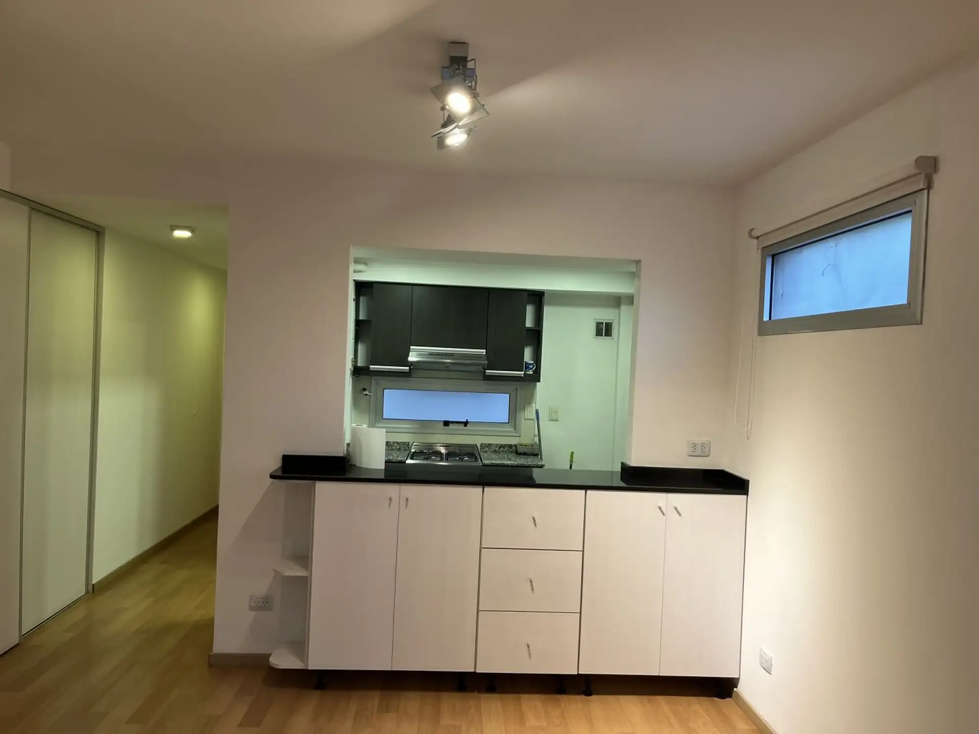 Departamento de 2 ambientes con balcón al contrafrente en Villa del Parque, Buenos Aires. Cuenta con living-comedor con cocina integrada, dormitorio con placar y aire acondicionado, y 1 baño completo. El edificio dispone de SUM. Se solicita garantía con recibo de sueldo y seguro de caución o respaldo con garantía propietaria de CABA familiar directo. Condiciones: 1 mes de adelanto, 1 mes de depósito y ajuste trimestral por IPC. Sin mascotas. Se alquila a persona sola o pareja.