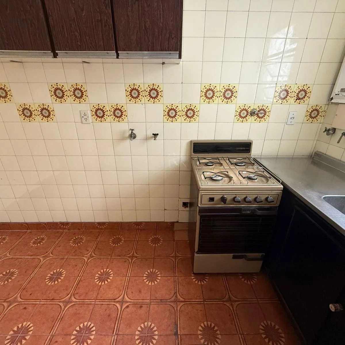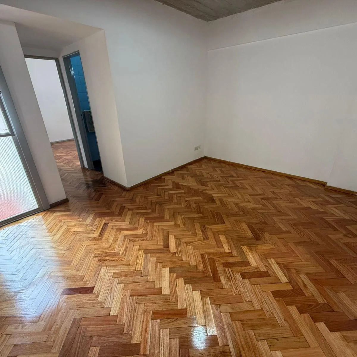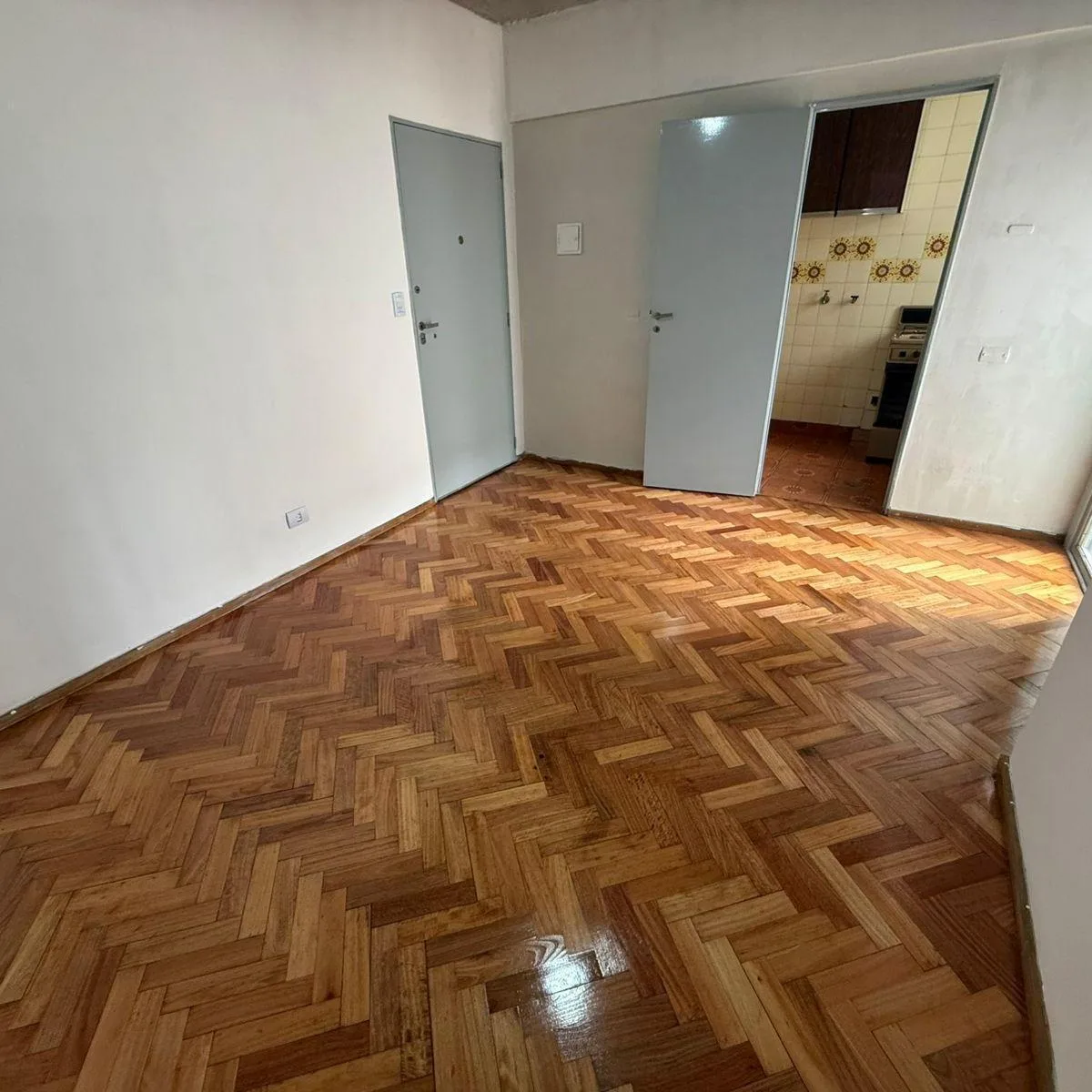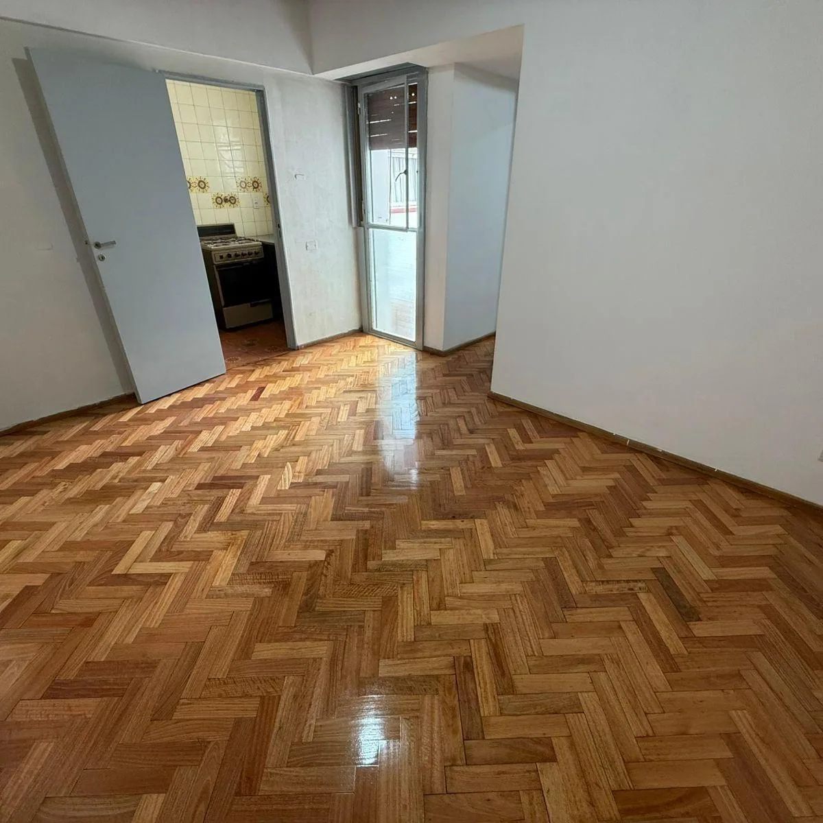 Departamento de 2 ambientes en Villa del Parque, con 1 dormitorio de 3 x 3 y living comedor de 6 x 3. Ambos ambientes tienen piso de parquet, paredes pintadas y ventilan al pozo de aire y luz del edificio. Cocina de 3,80 x 1,70 con bajo mesada y alacenas, baño completo con bañera y lavadero sectorizado en la cocina.