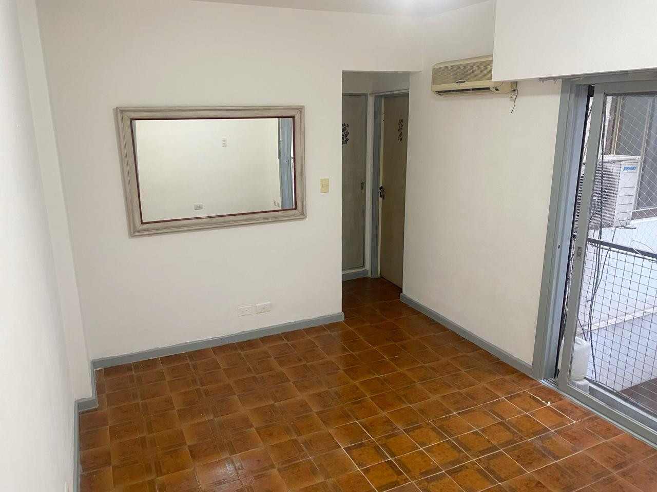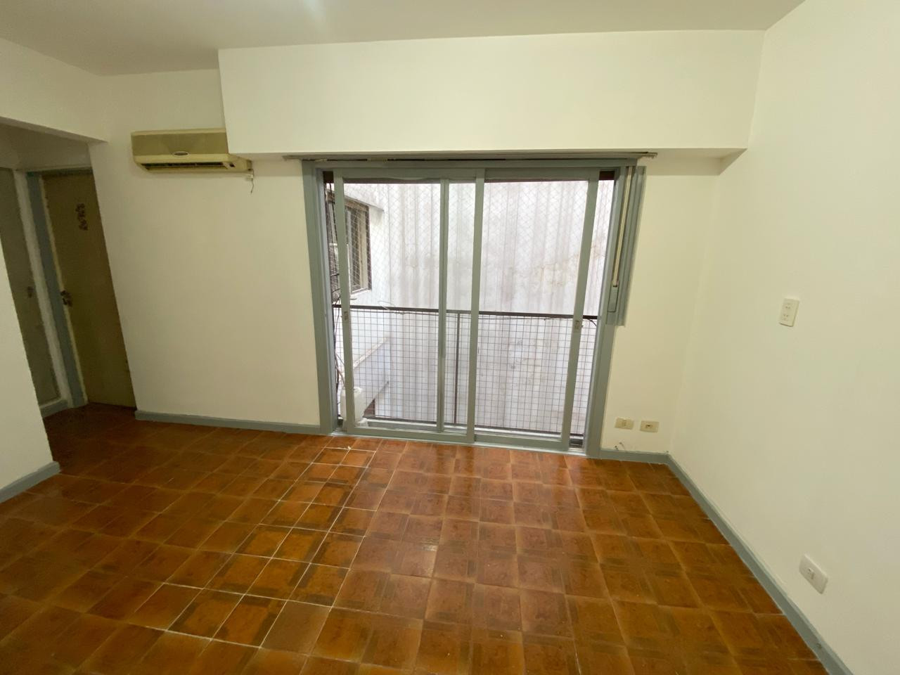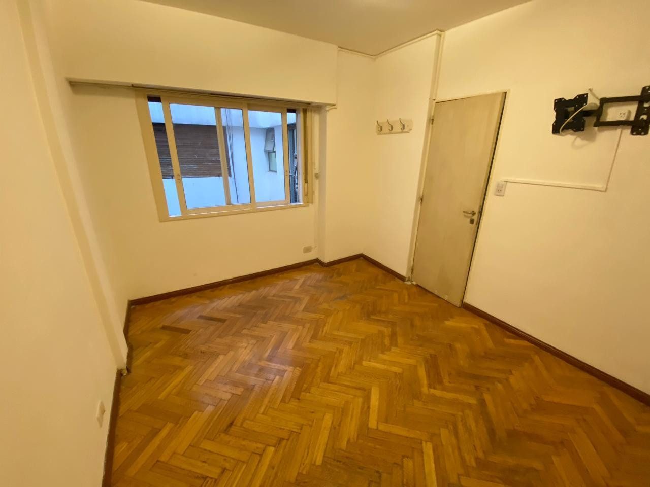 Departamento de 2 ambientes interno. Living/comedor con mueble empotrado, aire acondicionado (frío) y ventanal al pulmón del edificio. Cocina a gas con espacio para comedor diario, doble bacha de acero, muebles bajo mesada y alacenas, y calefón nuevo de 14 litros, con ventana al pulmón del edificio. Habitación con mueble empotrado de piso a techo, ventana al pulmón del edificio y piso de parquet; baño completo con bañera. Contrato de 2 años, ajuste cuatrimestral por IPC, mes de ingreso, 1 mes de