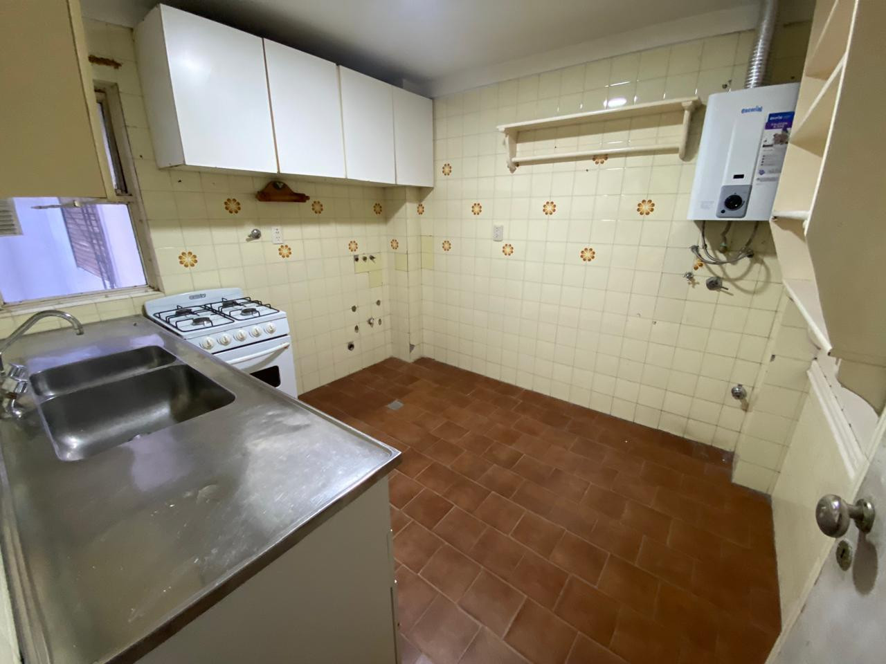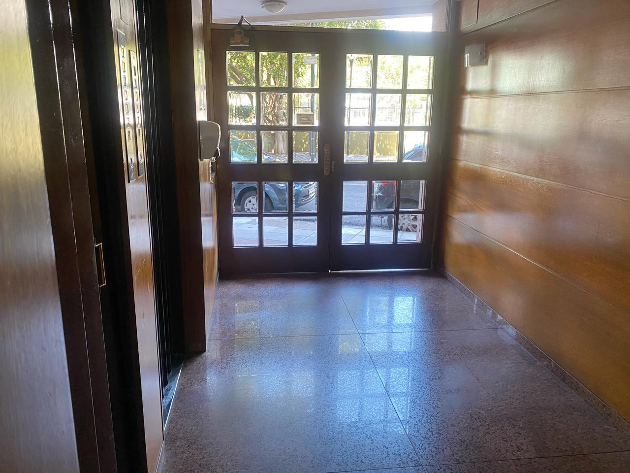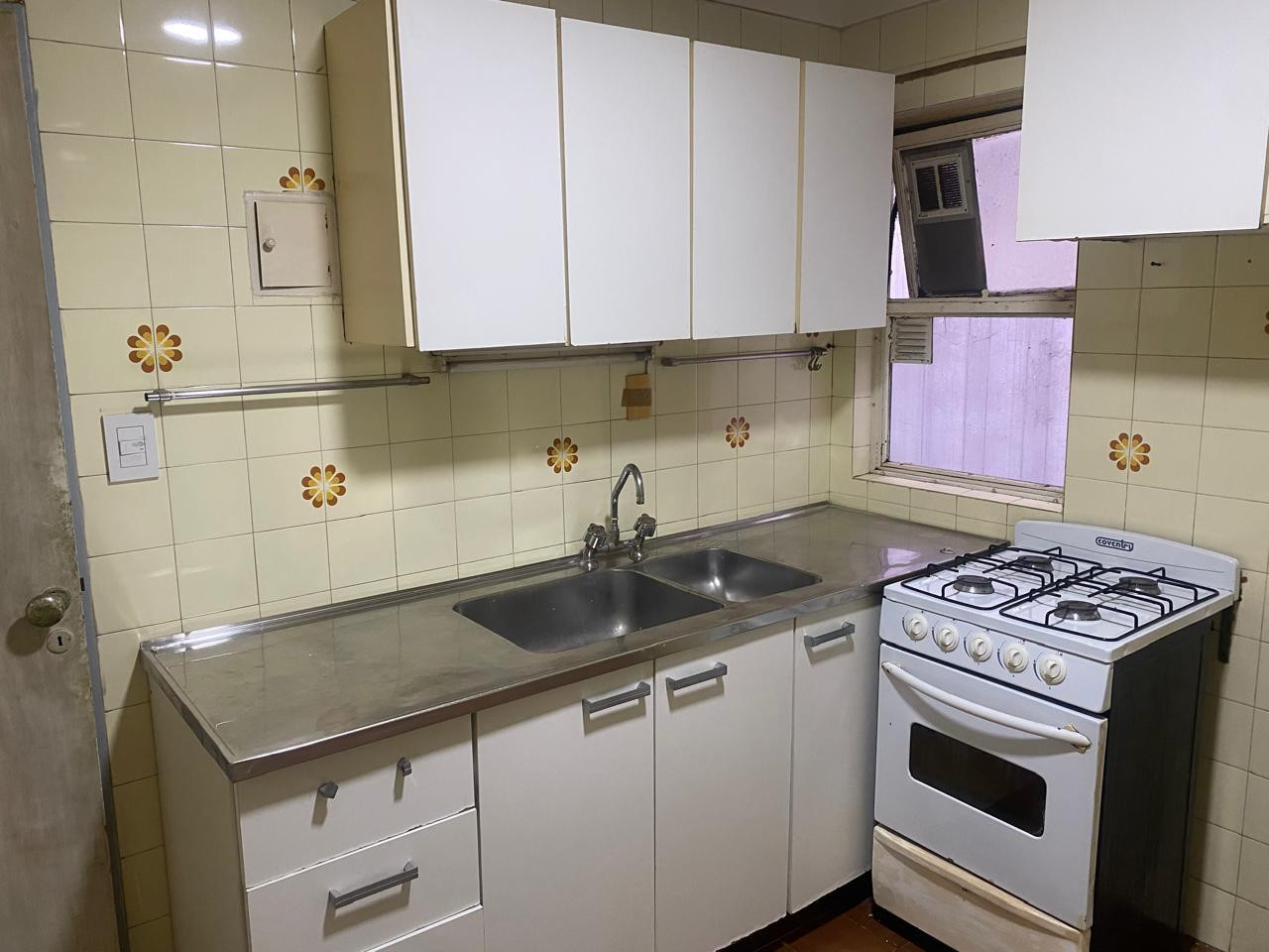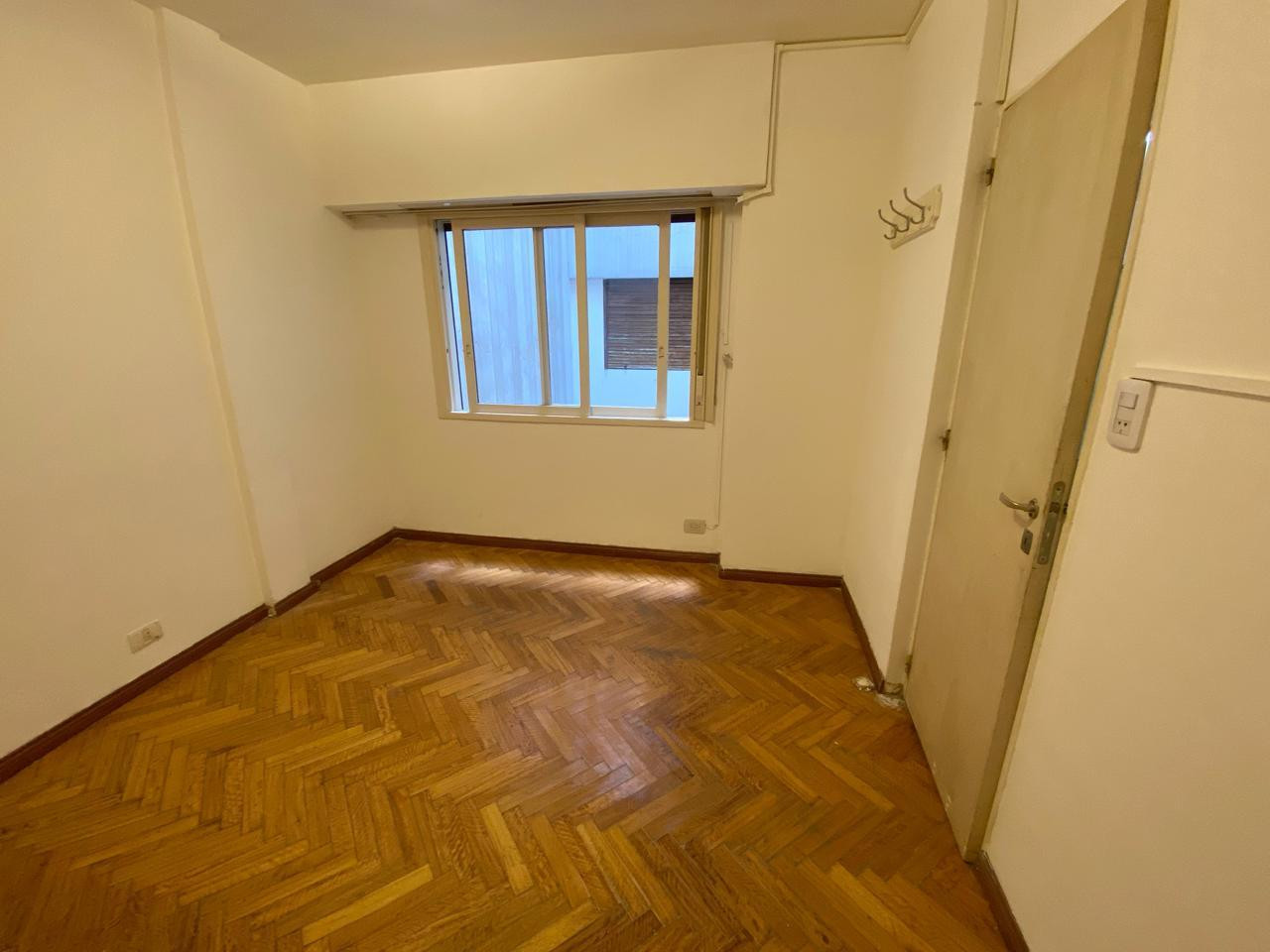 Departamento de 2 ambientes interno. Living/comedor con mueble empotrado, aire acondicionado (frío) y ventanal al pulmón del edificio. Cocina a gas con espacio para comedor diario, doble bacha de acero, muebles bajo mesada y alacenas, y calefón nuevo de 14 litros, con ventana al pulmón del edificio. Habitación con mueble empotrado de piso a techo, ventana al pulmón del edificio y piso de parquet; baño completo con bañera. Contrato de 2 años, ajuste cuatrimestral por IPC, mes de ingreso, 1 mes de