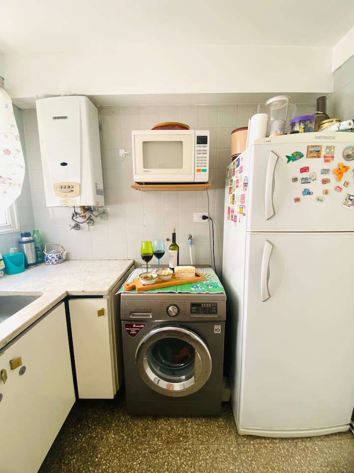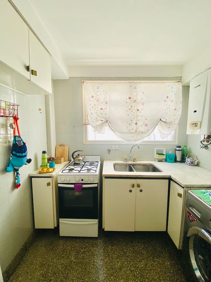 Departamento en Villa del Parque. El aviso lo describe como cálido y en un entorno tranquilo. Incluye cocina, lavarropas y Smart TV con conexión a internet. Se indica cercanía a la Facultad de Agronomía y accesos hacia el centro.